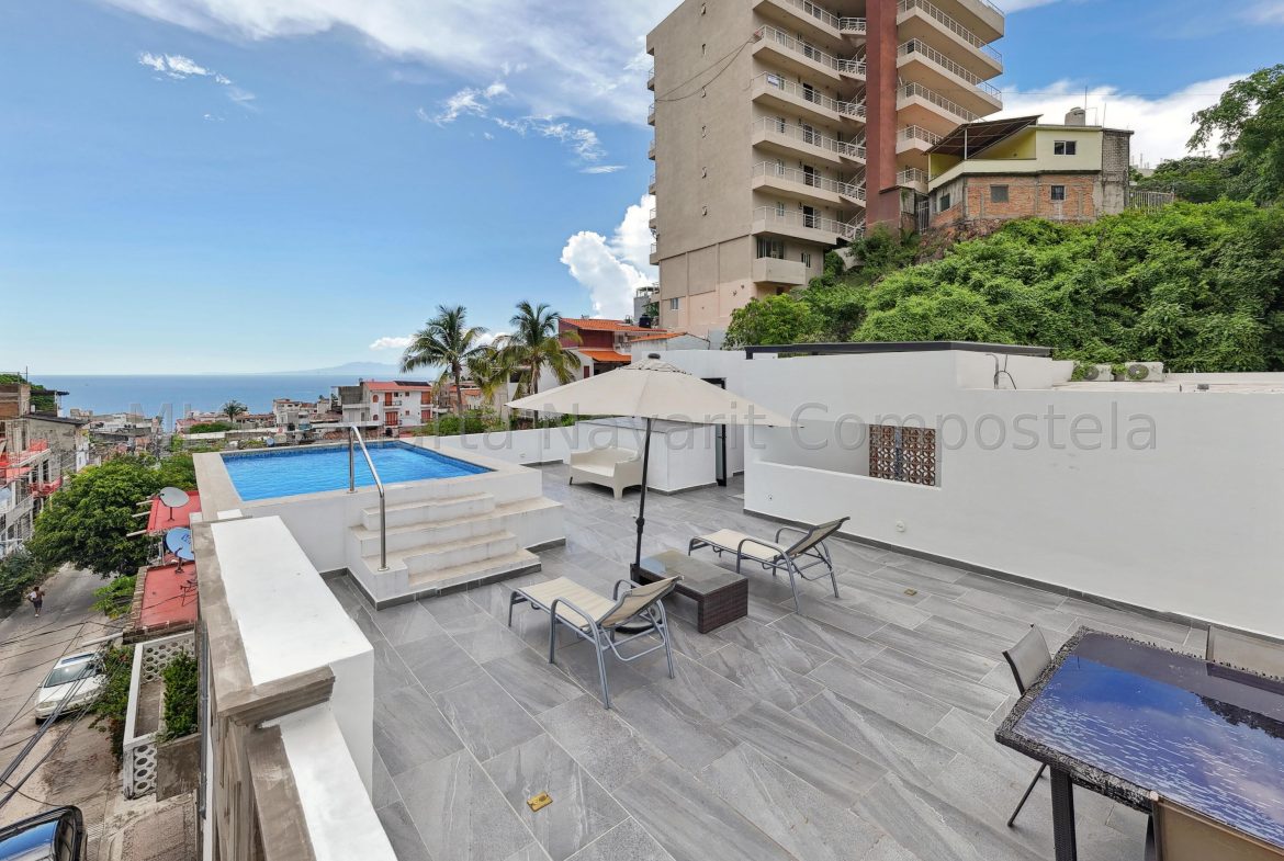 Casa Allende: A Hidden Gem in Historical Area of Puerto Vallarta, a blend of historical charm and modern luxury, operating as a highly successful Bed & Breakfast. It features 13 units, 7 of them beinf fully operating uniquely designed suites, each with a kitchenette, nestled in the heart of Puerto Vallarta’s historical downtown, and 6 of them are in obra gris ready for new owner to give its touch Just a 5-minute walk to the beach and Malecon, this boutique property has earned stellar reviews. The highlight is its rooftop terrace with a pool, offering breathtaking ocean, city, and jungle views. Casa Allende promises a unique and unforgettable guest experience.