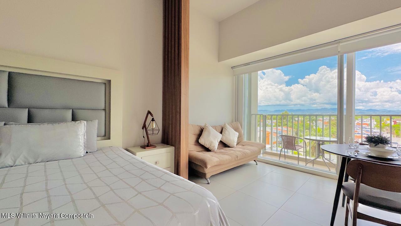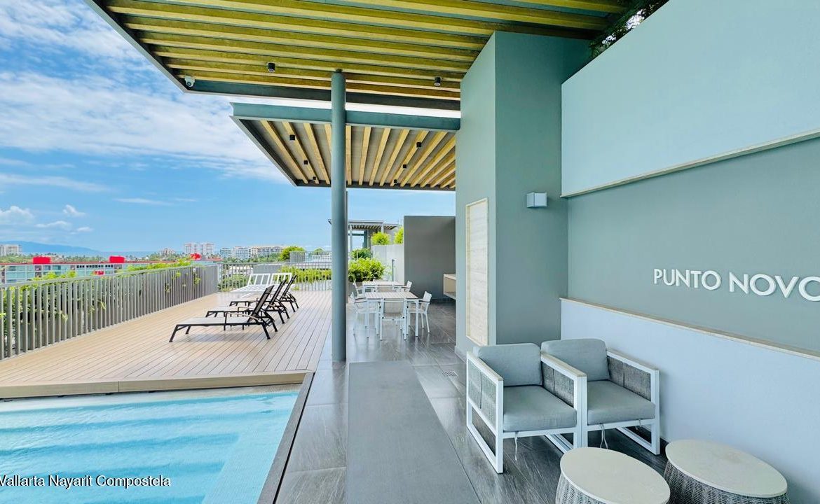 SPANISH BELOW – Welcome to your new, fully furnished studio! This tastefully decorated unit is airy and bright. It is perfectly located on the trendy restaurant row in the beautiful Punto Novo complex, just minutes away from the beach. As a turn-key property, it comes equipped with everything you need. The studio is an excellent investment for rental income or a personal vacation getaway. Enjoy the convenience of underground parking and access to all of the amazing amenities, including the beautiful rooftop pool, which is surrounded by gorgeous views of the mountains.