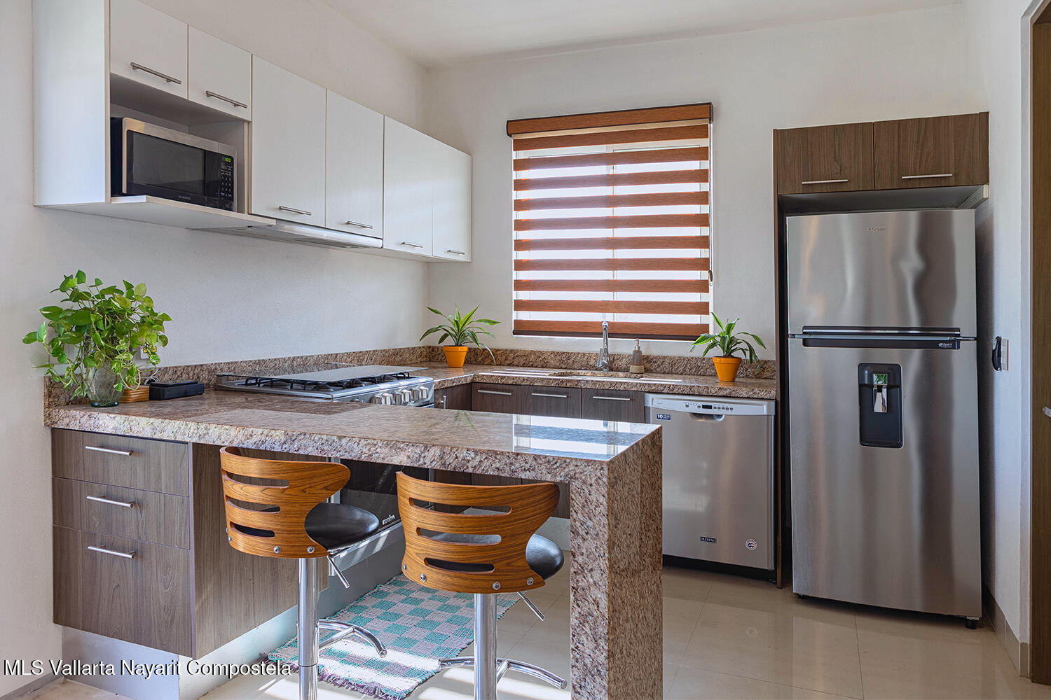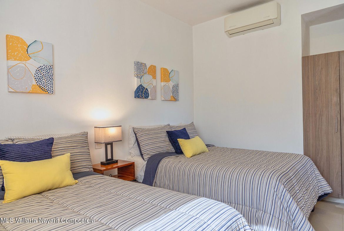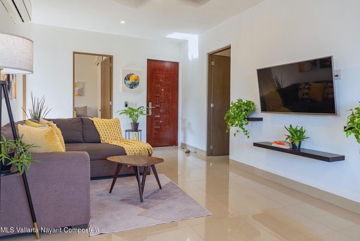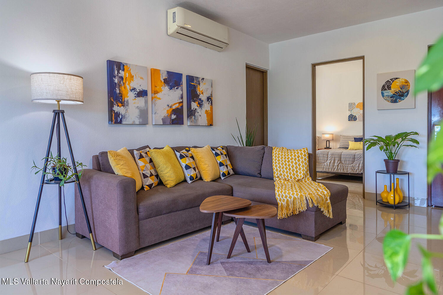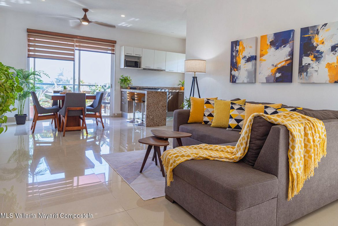 Motivated Seller!Fully furnished 2-bedroom, 2-bath condo in the gated community Azulejos. Bright, air-conditioned living area with open kitchen, granite countertops, and stainless steel appliances. The primary bedroom features a cathedral ceiling, ensuite bath, and ample closet space. Second bedroom ideal for guests or a home office. Community amenities include gym, jacuzzi, swimming pool, BBQ area, and lounge. Pet-friendly and minutes to Vidanta, golf, beaches, the airport (12 min) and the Romantic Zone (40 min).