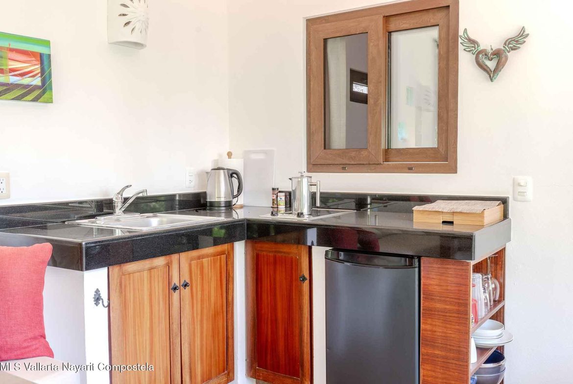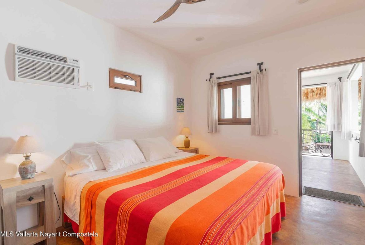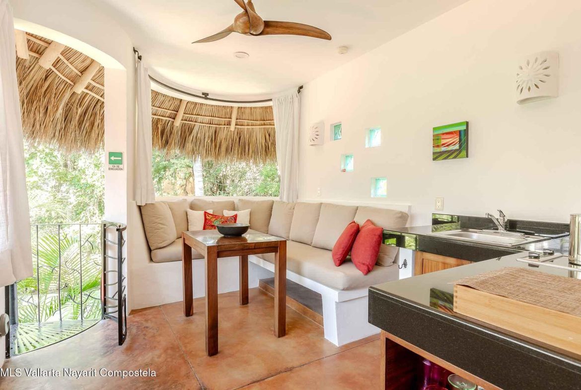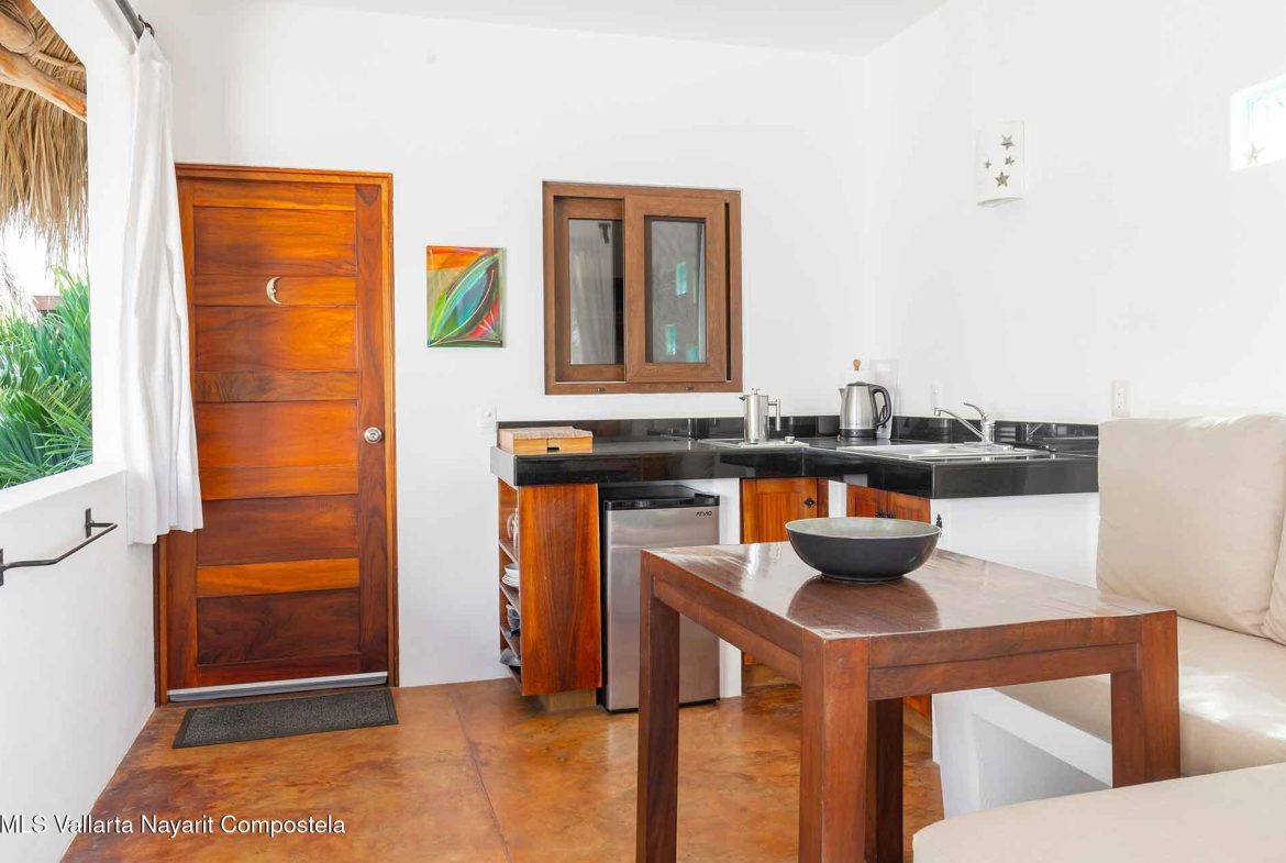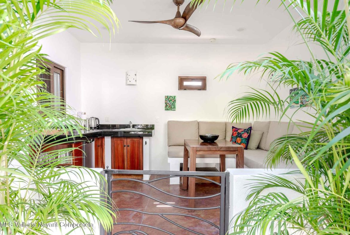 Casa Belenos Suites (named after the Celtic Sun God) is a hidden gem, located in the heart of San Pancho, Riviera Nayarit. The five suites were designed with an owner user in mind, hosting an owner suite along and four additional private suites that can be rented separately or together. The detached two story owner’s suite is equipped with an en suite king bedroom, full kitchen, living room and rooftop terrace. The other four suites are on two levels, surrounding a central courtyard with lush tropical vegetation and refreshing dipping pool. The Oceana and Selva suites are on the ground level with the Corazon and Luna suites above them. These four king bedroom en suites each have an open-air living area with kitchenette.