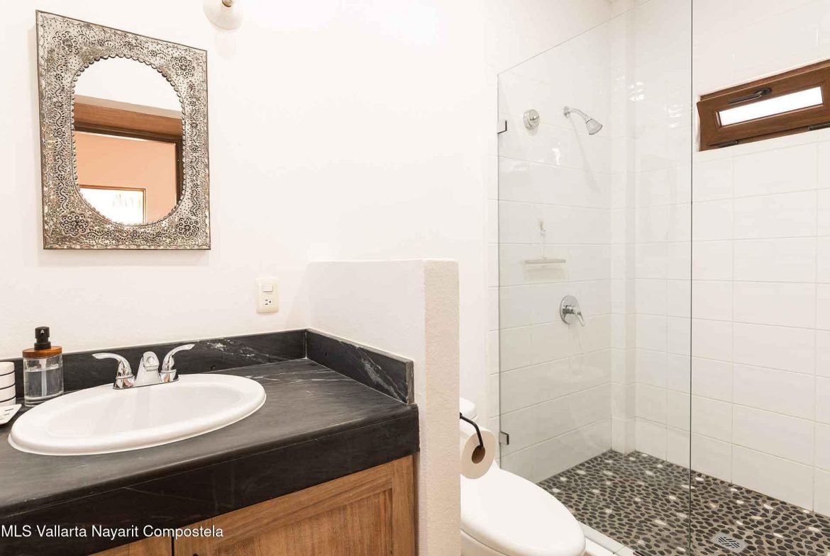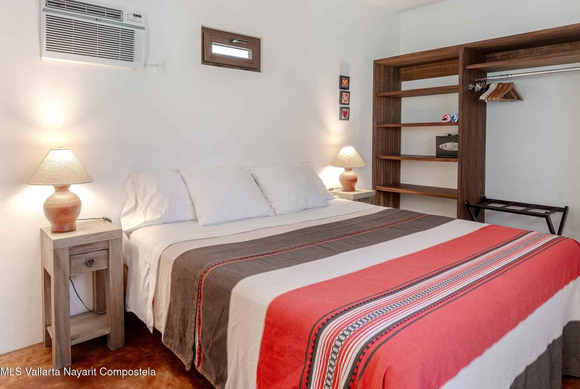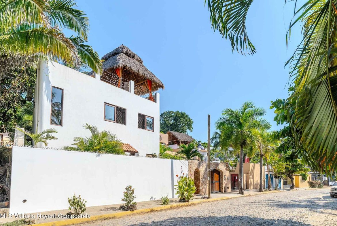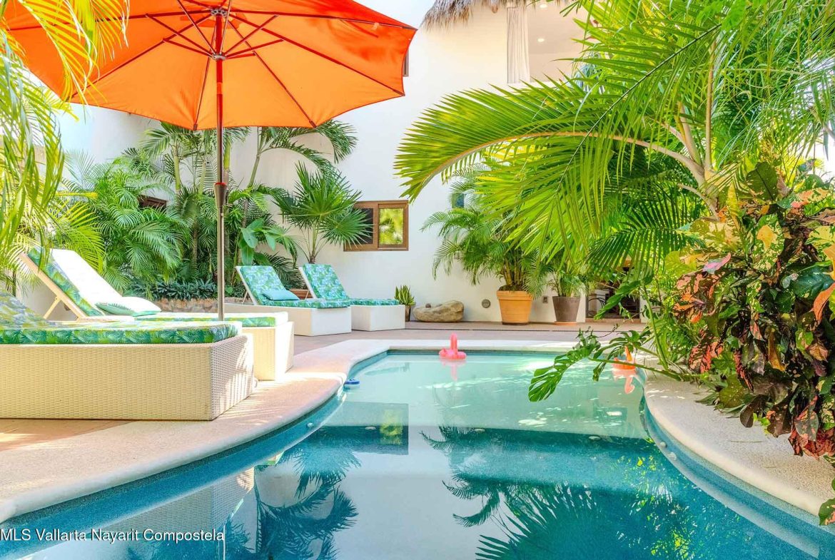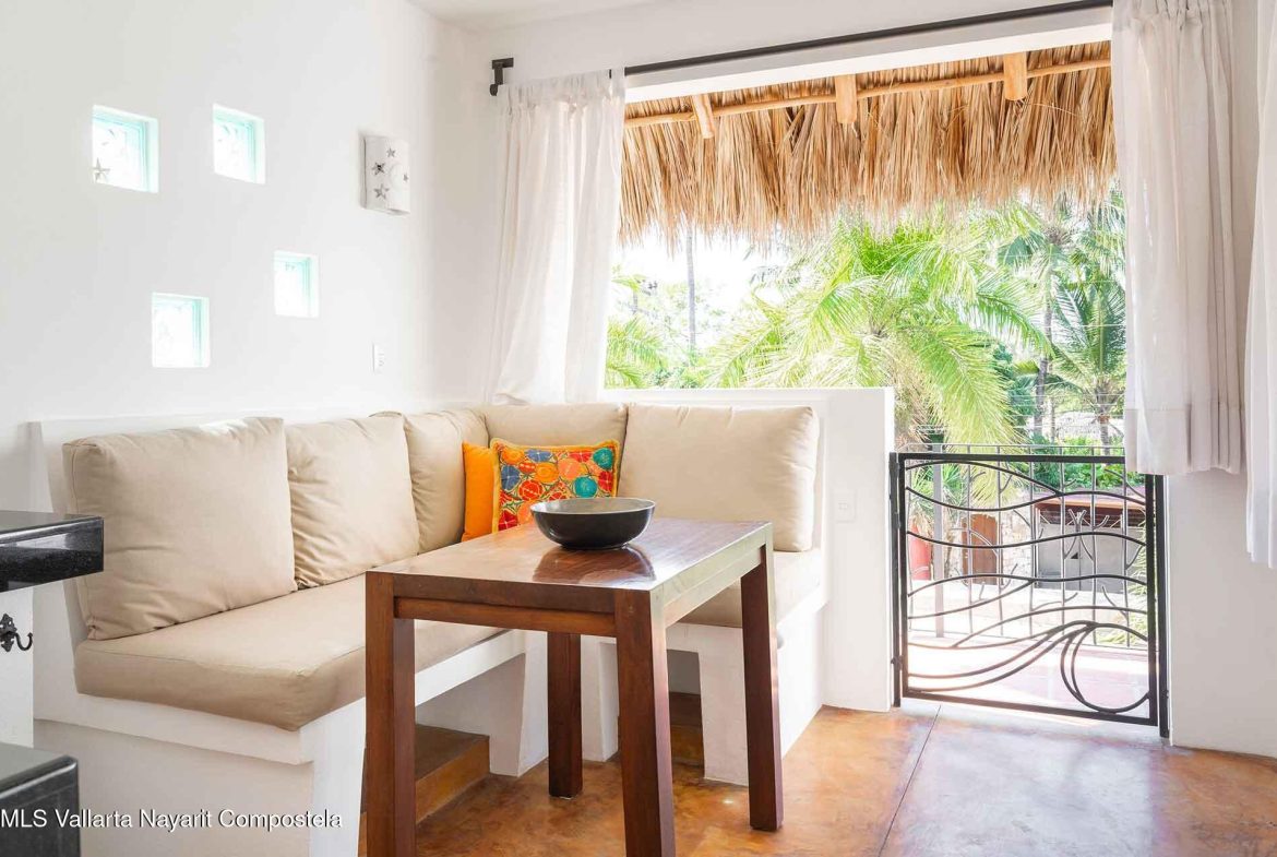 Casa Belenos Suites (named after the Celtic Sun God) is a hidden gem, located in the heart of San Pancho, Riviera Nayarit. The five suites were designed with an owner user in mind, hosting an owner suite along and four additional private suites that can be rented separately or together. The detached two story owner’s suite is equipped with an en suite king bedroom, full kitchen, living room and rooftop terrace. The other four suites are on two levels, surrounding a central courtyard with lush tropical vegetation and refreshing dipping pool. The Oceana and Selva suites are on the ground level with the Corazon and Luna suites above them. These four king bedroom en suites each have an open-air living area with kitchenette.