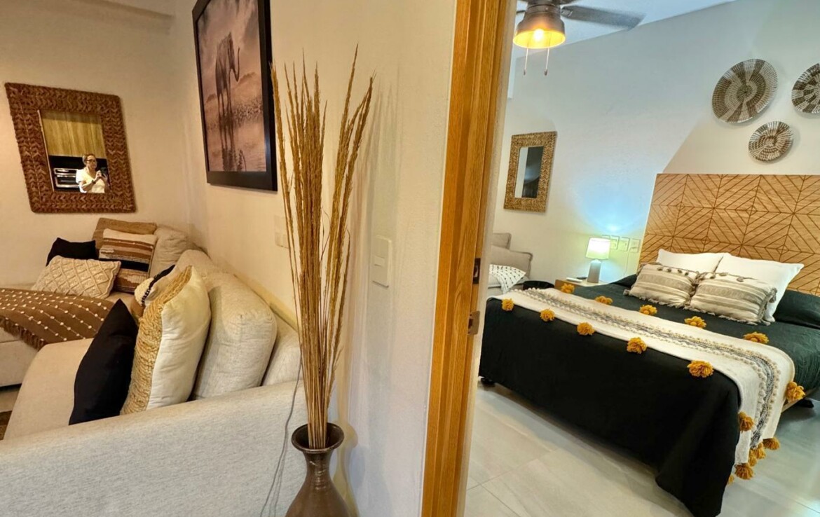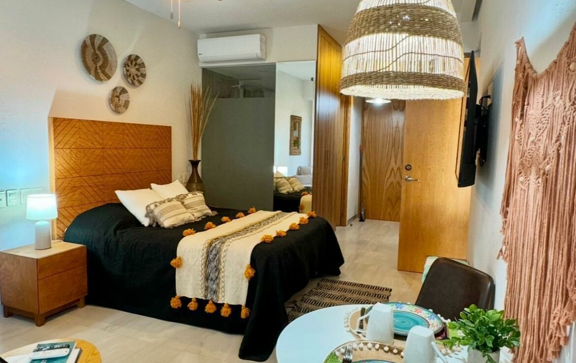 This exclusive lock-off condo, located in the heart of Bucerias vibrant Zona Dorada, is the perfect opportunity for those seeking a beach lifestyle or a smart investment with excellent rental potential. Just one block from the beach, surrounded by restaurants, shops, and the unique energy of Bucerias, this unit offers the best of coastal living.The property consists of two independent units that can be rented separately or enjoyed together:Main unit: 1 bedroom, 2 full bathrooms, a fully equipped kitchen, and a spacious living area.Studio: a cozy space with kitchenette, ideal for guests or as a separate rental.Both units are connected through an intercom door, allowing you to use them as one large residence if desired.
