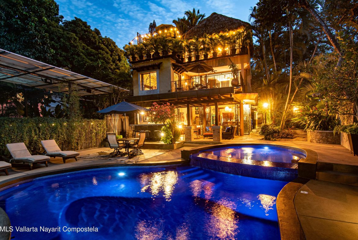The name says it all; Welcome to Casa Bonita, a ”Pretty” Mexican home.Unique opportunity to own a revenue generating property. This residence is well suited for a large family who treasures privacy, or an investor looking to run a five-star rental business. Casa Bonita is a meticulously maintained home. Surrounded by lush landscaping, it is a place to restore, relax and enjoy an exquisite living experience.The first floor of the Casa is an open concept kitchen/living area with a bedroom and full bathroom that leads out to your own amazing private patio/bar and pool. The second floor has 1.5 bathrooms and two bedrooms. Both bedrooms on the second floor have doors that lead to a beautiful deck with a partial ocean view.
