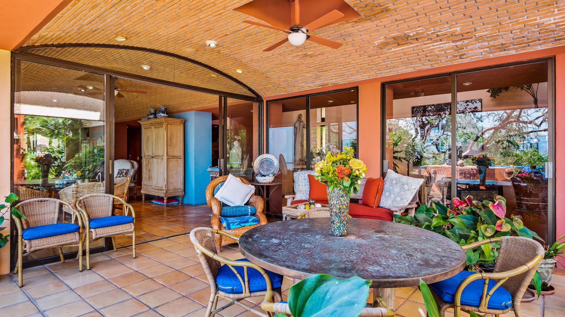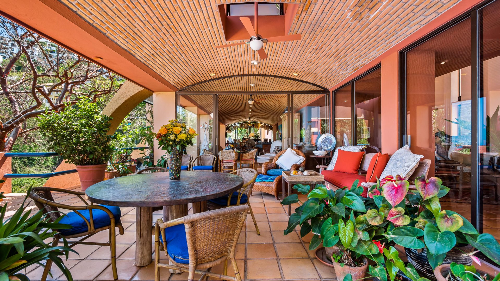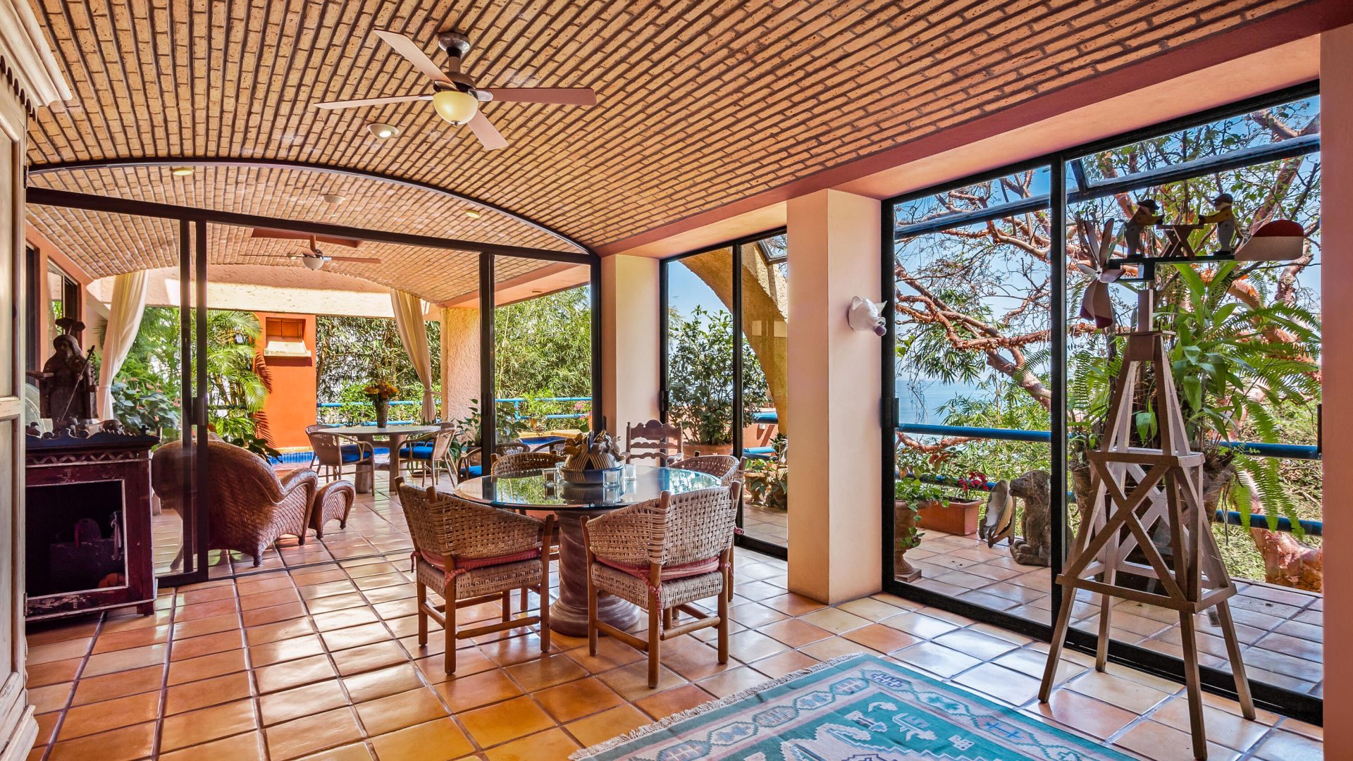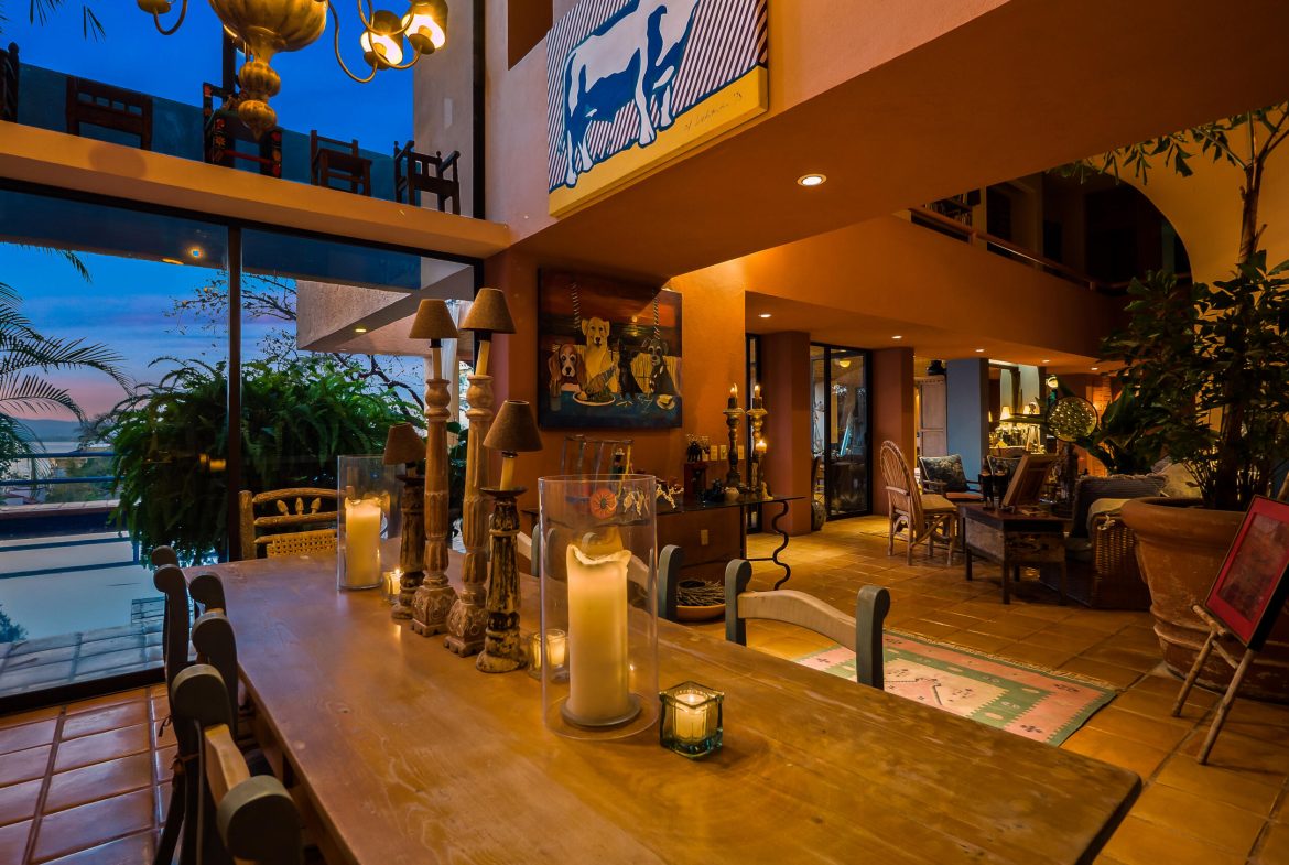 Perched on the hillside of Conchas Chinas, Casa Buena Vida is a stunning 6-bedroom, 5.5-bathroom villa offering breathtaking ocean and jungle views. Spanning 900 square meters of construction on an expansive 2,101 square meter lot, this property presents a unique opportunity with its remarkable land, offering endless possibilities for expansion, development, or creating a private sanctuary.Designed across multiple levels, the home seamlessly blends traditional Mexican architecture with modern comforts. Expansive terraces provide sweeping views of Banderas Bay, while high ceilings, Saltillo-tile floors, and elegant walkways enhance its charm. The infinity-edge pool overlooks the ocean, creating the perfect space for relaxation and entertaining.
