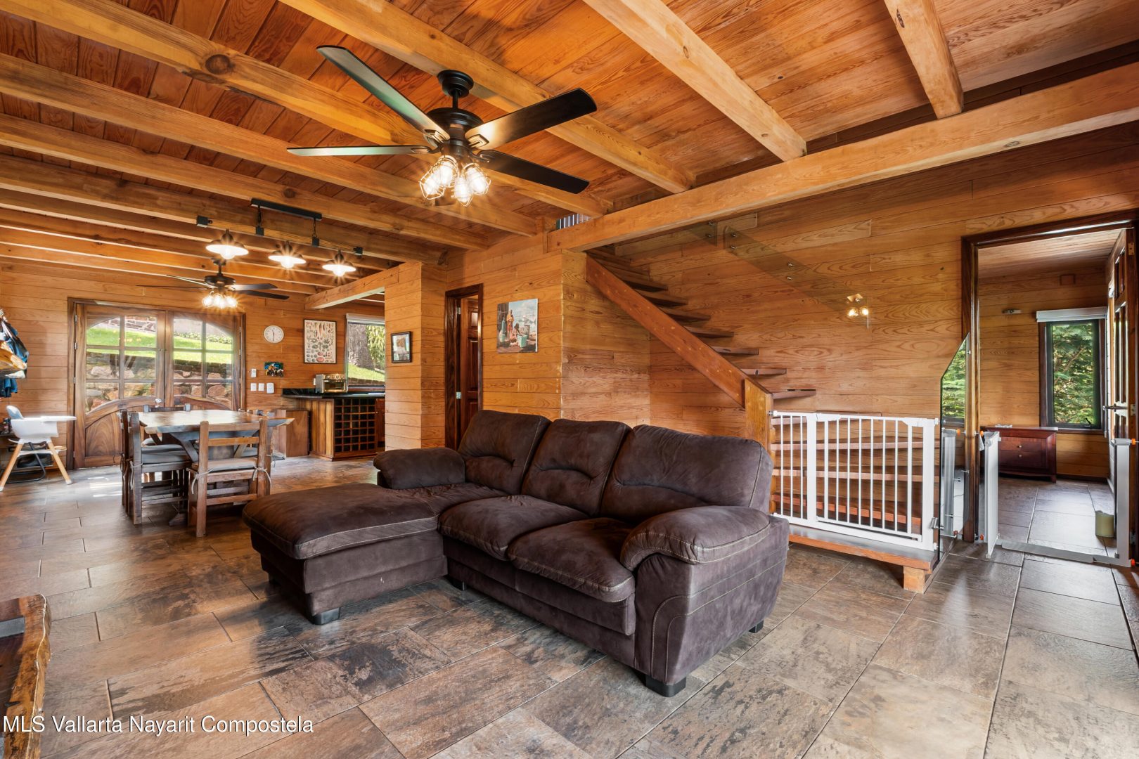 Ubicada en la exclusiva comunidad privada de Tierra Alta en El Tuito, Jalisco, este encantador refugio de montana ofrece la comodidad de un hogar completo en un entorno natural sereno. La residencia principal es una casa totalmente independiente con cocina completa, calidos y acogedores espacios de estar y una acogedora chimenea, perfecta para las frescas tardes de montana. Rodeada de un amplio terreno con senderos, la propiedad ofrece condiciones ideales para arboles frutales, jardines y disfrute del aire libre, todo enmarcado por impresionantes vistas a la montana.