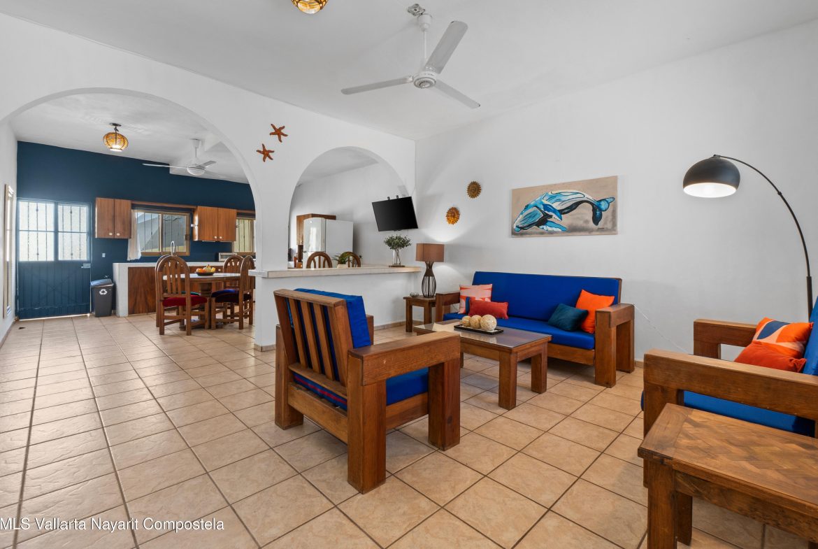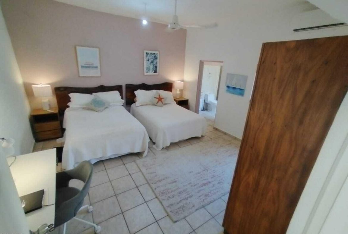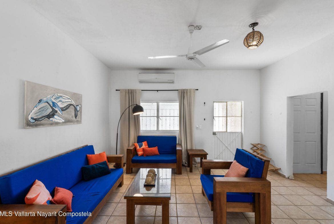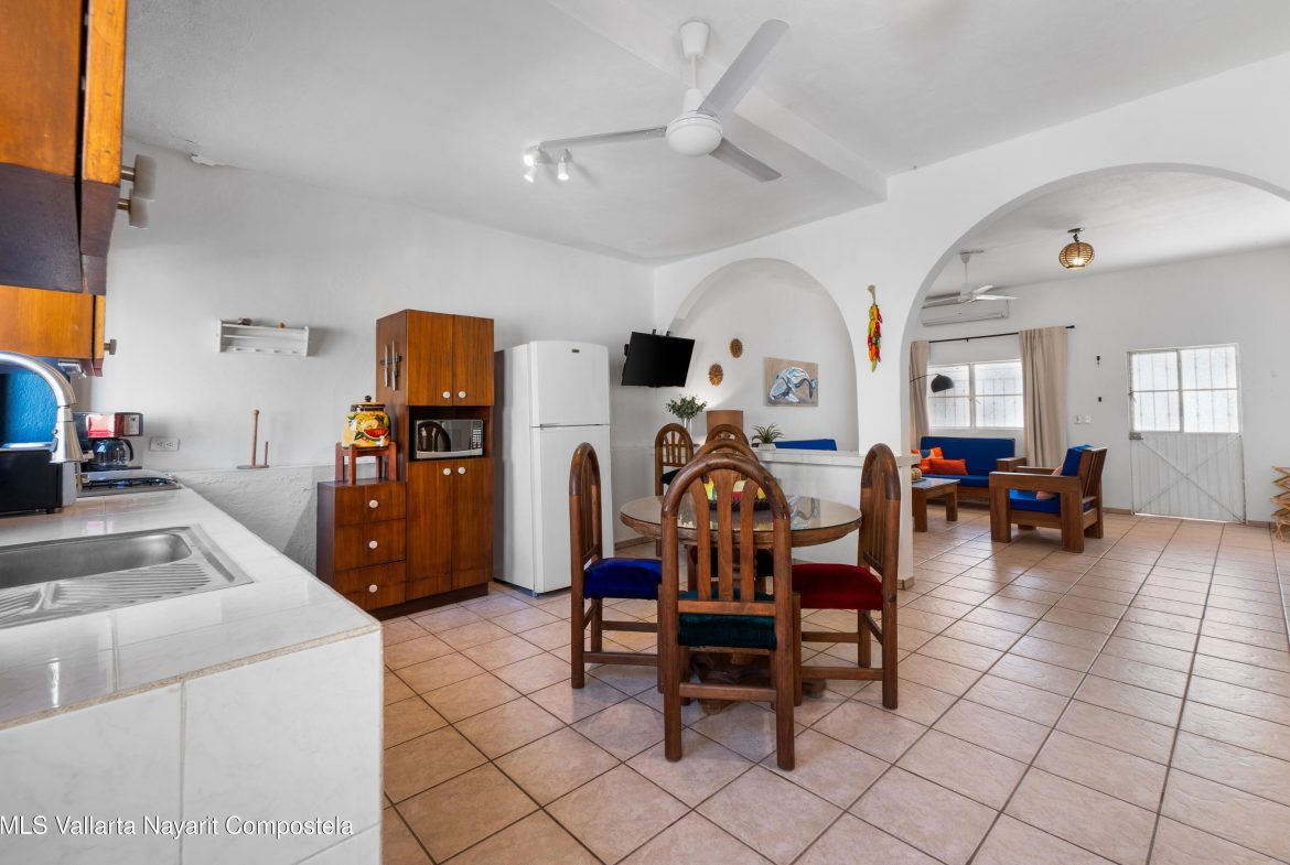 Casa estilo mexicano, ubicada en el corazon de la Cruz de Huanacaxtle a una cuadra de la entrada a la Marina y al famoso mercado de artesanias de los sabados, la casa cuenta con patio frontal, amplia cochera techada, sala, cocina-comedor, cuarto de lavado, patio trasero con alberca privada y amplia recamara con bano en la planta baja; en la planta alta recamara con bano y vestidor y una terraza con vista a la alberca, ventiladores de techo y aire acondicionado.