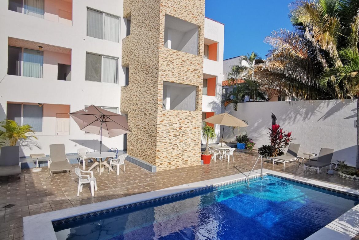 Oportunidad para Inversionistas, Edificio de 4 Niveles en la Zona Dorada de Bucerias.Este edificio es una oportunidad unica para inversionistas interesados en el sector inmobiliario y turistico. Con una ubicacion privilegiada en la exclusiva Zona Dorada de Bucerias, ofreciendo un retorno de inversion solido gracias a su cercania con servicios importantes como restaurantes, tiendas de ropa y artesanias, ademas de centros comerciales, hospitales, bancos y a la hermosa playa de Bucerias.El edificio cuenta con 6 Departamentos de dos recamaras con balcon y cuarto de servicio, divididos en dos departamentos por nivel; asi como un Pent-house de 2 recamaras, gimnasio y una amplia terraza con jacuzzi y vista panoramica del oceano y la bahia.