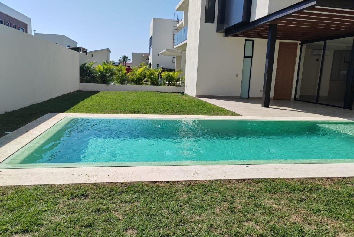 Casa Nueva, en planta baja, recamara con bano de visitas, cocina, sala, comedor, terraza con bano completo y en planta alta 3 recamaras cada una con su bano, cuarto de lavado. Alberca, cochera techada para 2 autos, con bodega y cochera para 2 autos mas sin techo.New house, ground floor, bedroom with guest bathroom, kitchen, living room, dining room, terrace with full bathroom, and upstairs, three bedrooms, each with its own bathroom, and laundry room. Swimming pool, covered garage for two cars, with storage, and an uncovered garage for two cars.