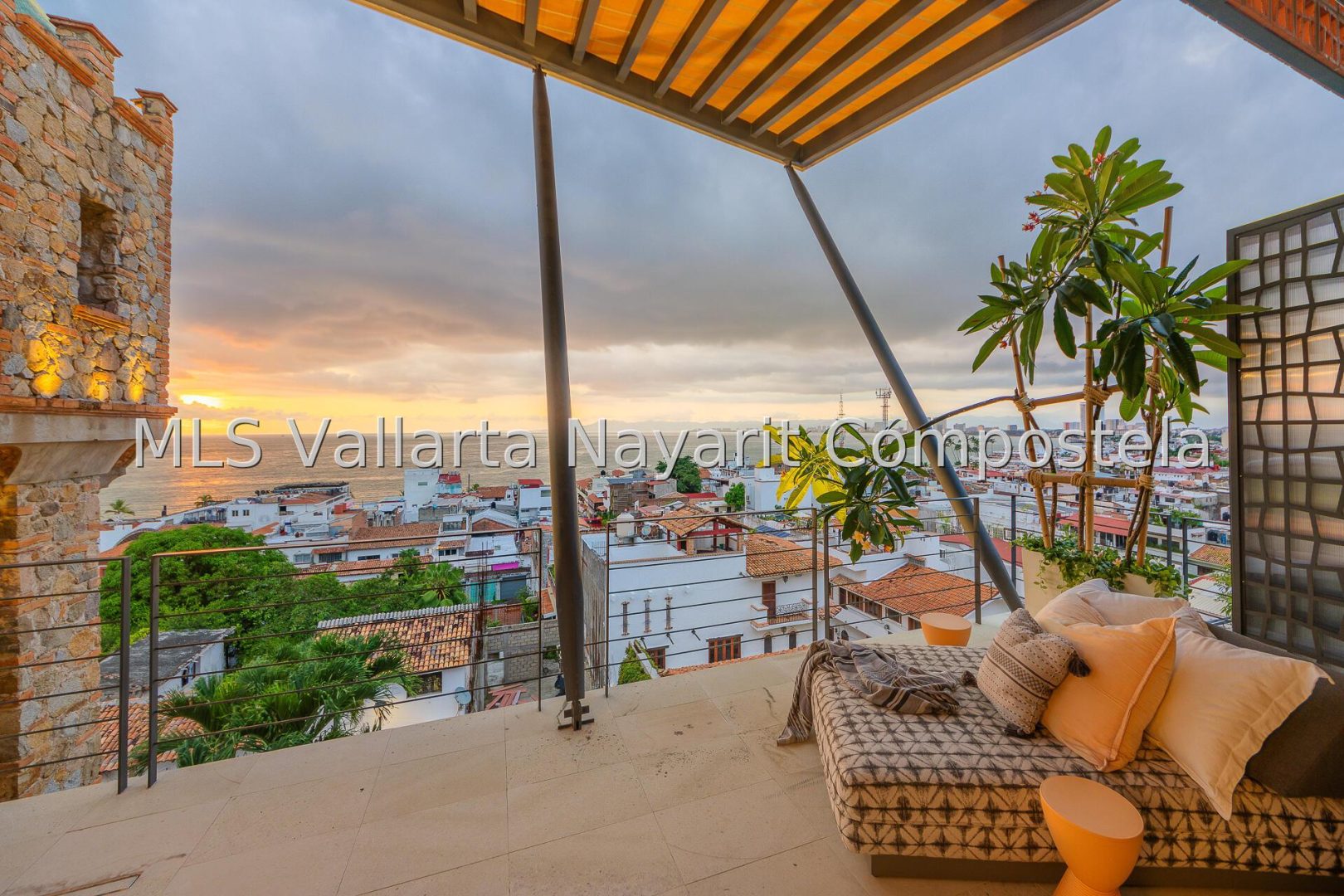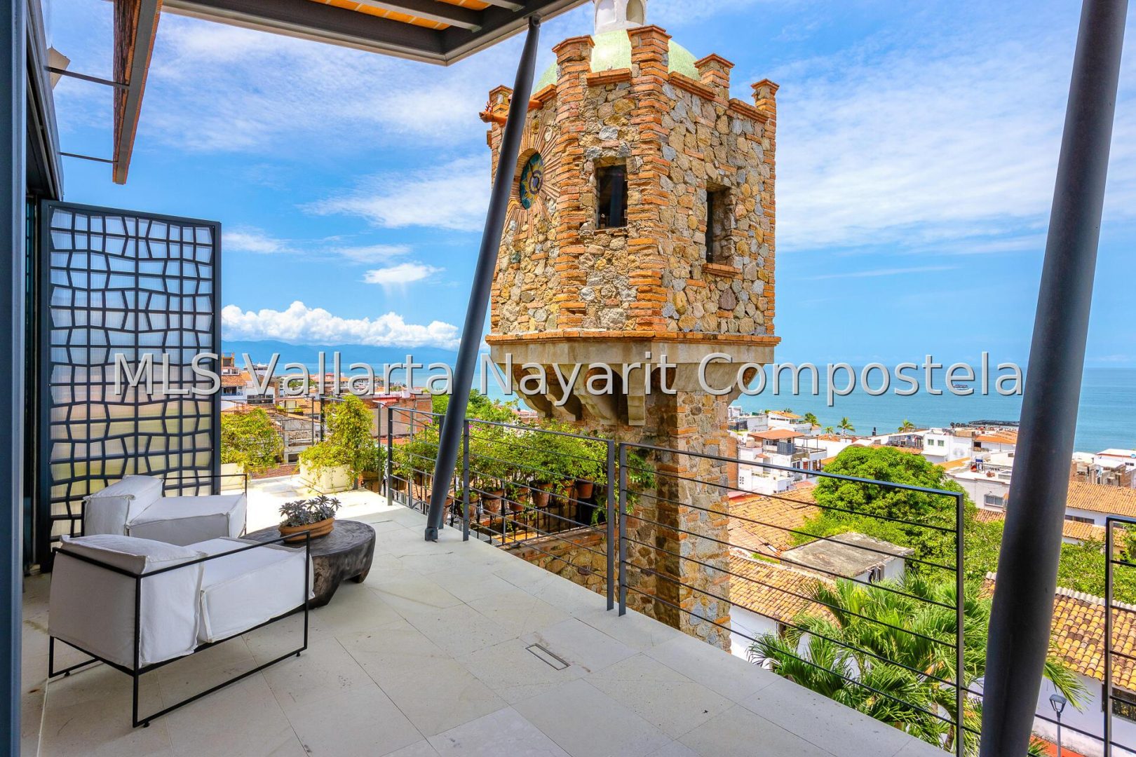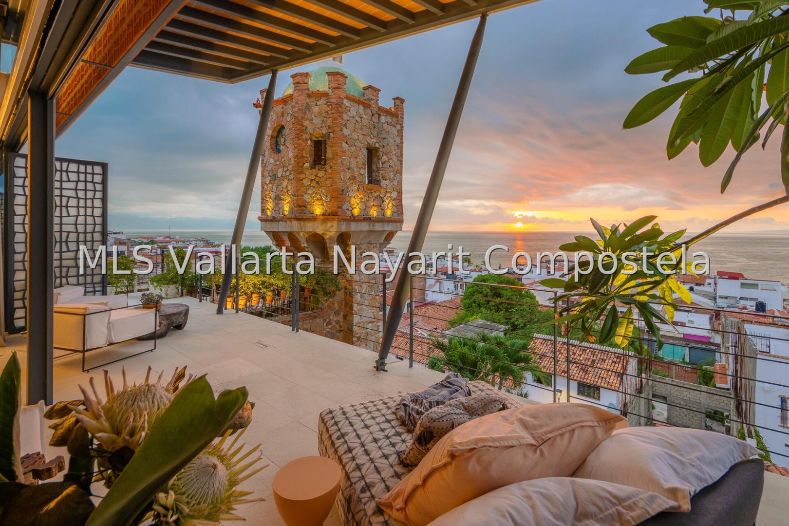Welcome to Casa de la Torre, an extraordinary sanctuary that seamlessly blends modern sophistication with classic architecture and charm, nestled in the vibrant heart of Centro, Puerto Vallarta. This iconic home, originally built in 1970 by architect Antonio Santovena, has undergone a meticulous update and restoration, featuring a newly added top level penthouse suite by Juan Carlos Flores of arqflores, as well as gracious living and dining areas, 4 additional guest bedroom suites, 5 1/2 baths, a fully curated chef’s kitchen, private pool with jacuzzi and sweeping ocean and city views throughout.
