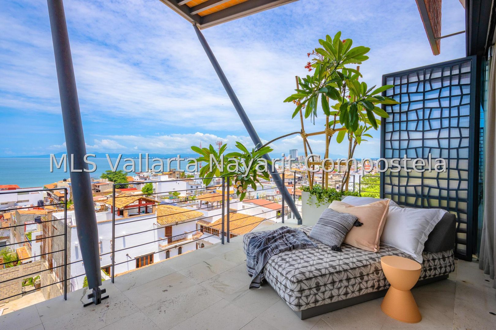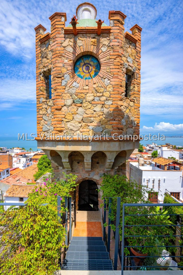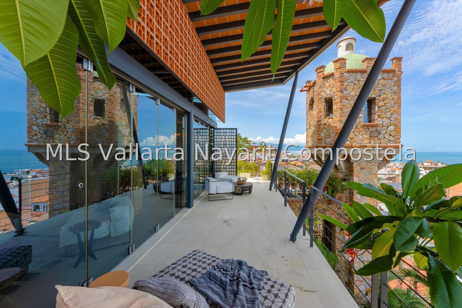 Welcome to Casa de la Torre, an extraordinary sanctuary that seamlessly blends modern sophistication with classic architecture and charm, nestled in the vibrant heart of Centro, Puerto Vallarta. This iconic home, originally built in 1970 by architect Antonio Santovena, has undergone a meticulous update and restoration, featuring a newly added top level penthouse suite by Juan Carlos Flores of arqflores, as well as gracious living and dining areas, 4 additional guest bedroom suites, 5 1/2 baths, a fully curated chef’s kitchen, private pool with jacuzzi and sweeping ocean and city views throughout.