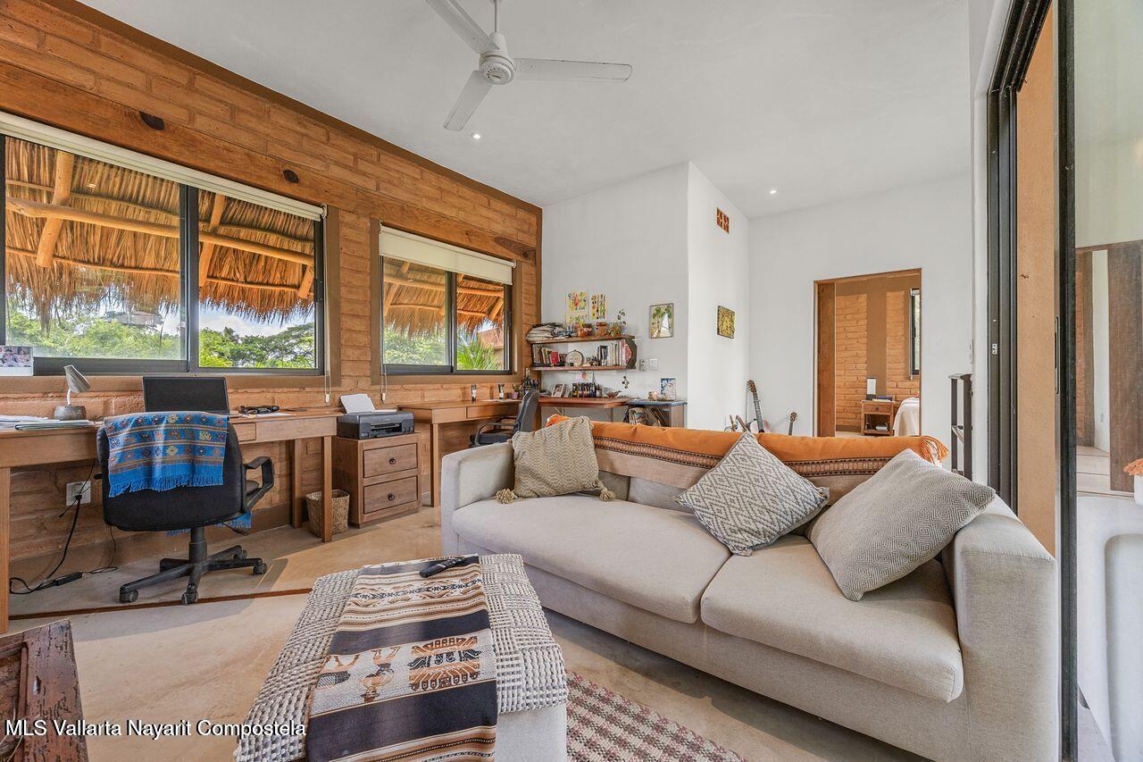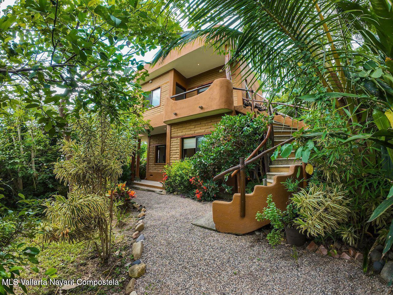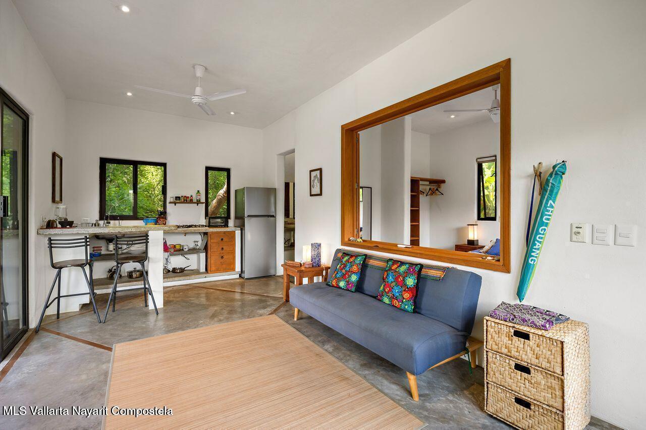 Casa de los Pajaros is a peaceful multi-unit retreat nestled next to the Tierra Tropical Polo Club in San Pancho. Situated on an 870 m lot, the property features approximately 400 m of construction spread across three buildings. Two buildings house four fully furnished one-bedroom apartments, each with a full kitchen, living area, private bedroom, and bathroom–perfect for guests or rental income. The main two-story residence includes an open-concept kitchen and living space, a half bath, and a laundry/storage room. Upstairs, the master suite offers a walk-in closet, an office nook, and a balcony leading to a rooftop terrace with stunning jungle and polo field views.