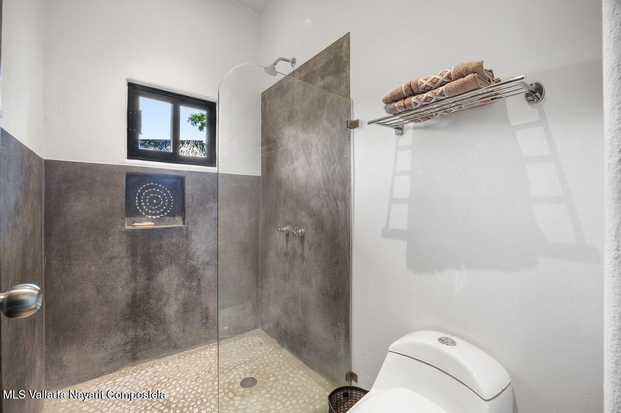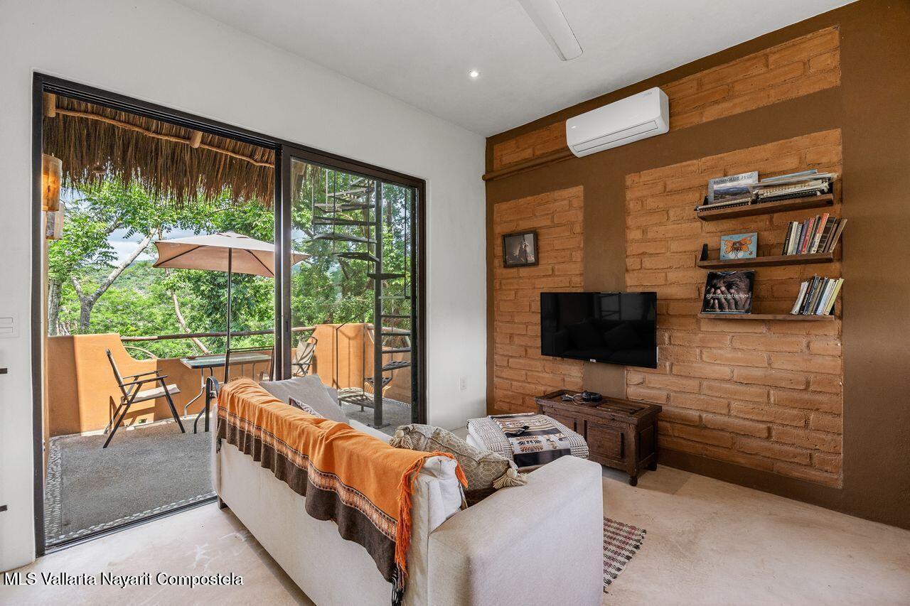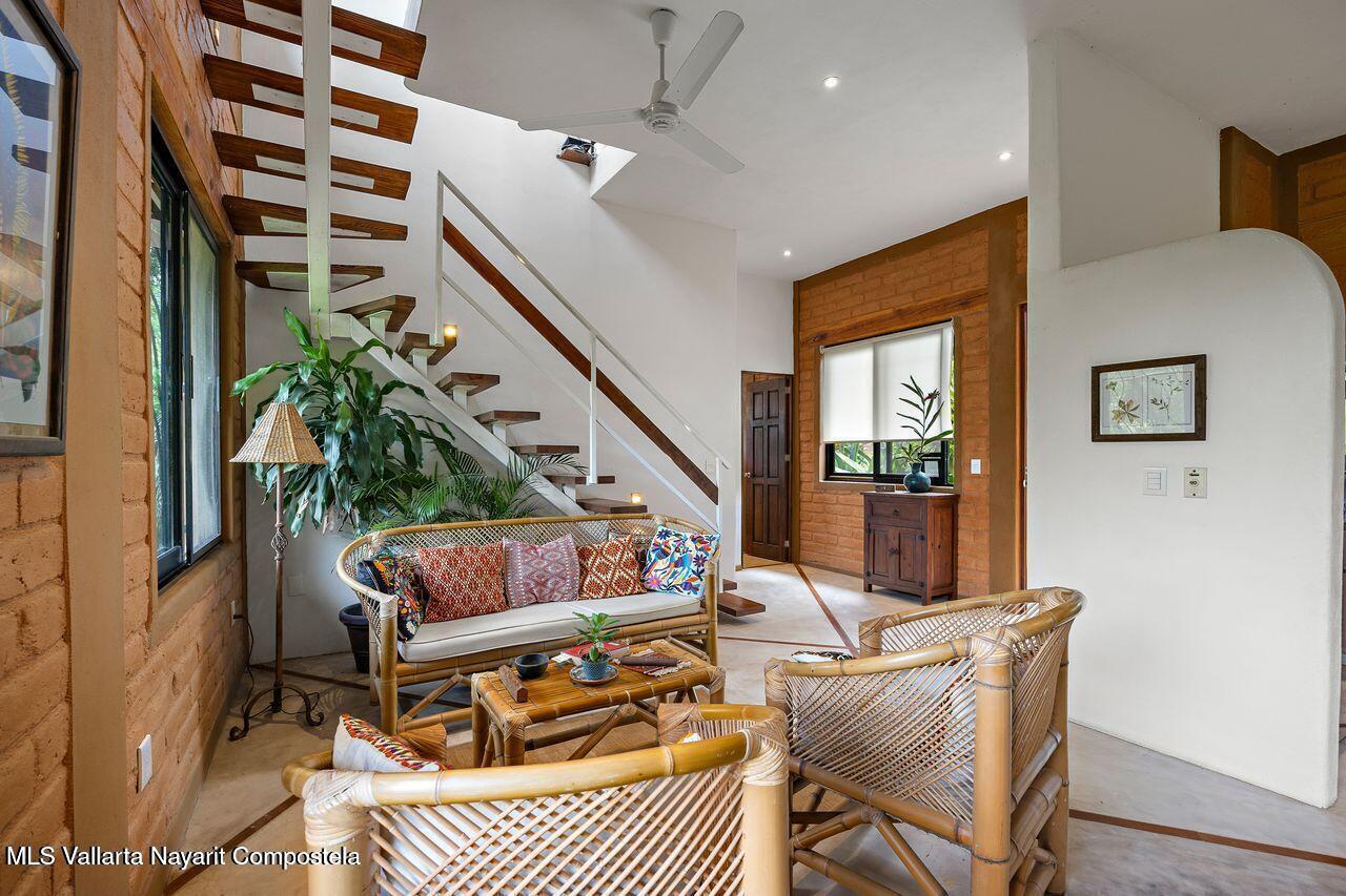 Casa de los Pajaros is a peaceful multi-unit retreat nestled next to the Tierra Tropical Polo Club in San Pancho. Situated on an 870 m lot, the property features approximately 400 m of construction spread across three buildings. Two buildings house four fully furnished one-bedroom apartments, each with a full kitchen, living area, private bedroom, and bathroom–perfect for guests or rental income. The main two-story residence includes an open-concept kitchen and living space, a half bath, and a laundry/storage room. Upstairs, the master suite offers a walk-in closet, an office nook, and a balcony leading to a rooftop terrace with stunning jungle and polo field views.