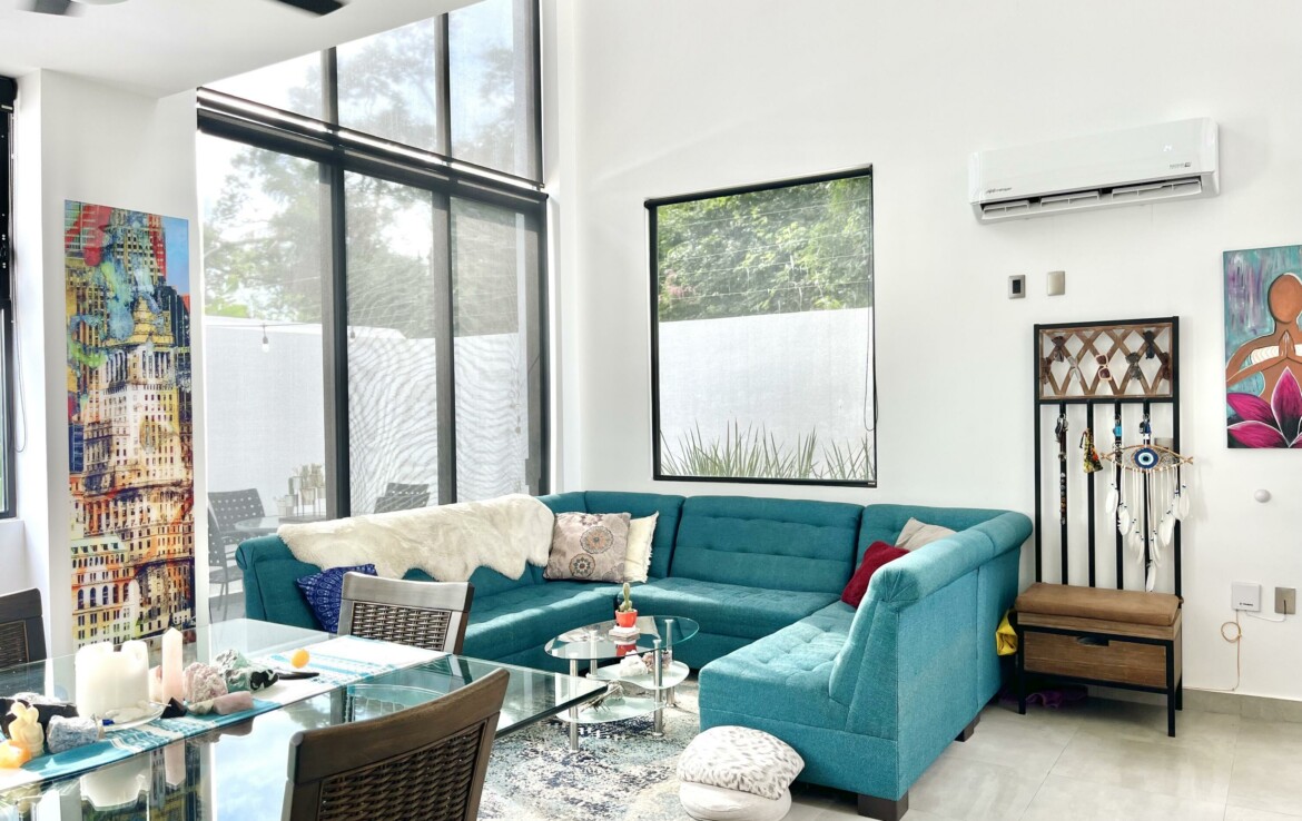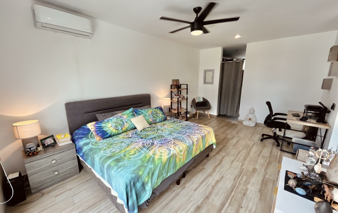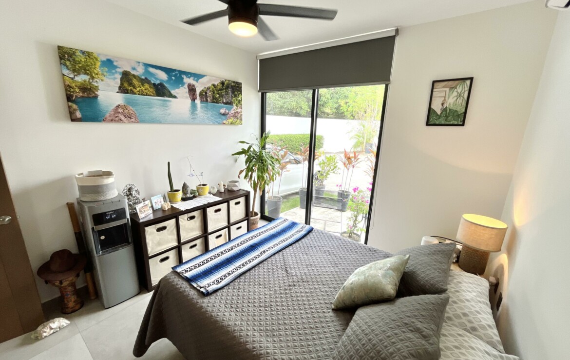 *English Below* Bienvenidos a Casa del Alma! un oasis de paz ubicado en la maravillosa comunidad El Quelele. Una residencia de 2 recamaras con un diseno unico en el desarrollo. Un dormitorio en planta baja con terraza frontal en concreto. Una cocina ampliada y agradable patio trasero con vitropiso. Este modelo destaca por su majestuoso techo doble altura en sala. El dormitorio principal es de gran tamano ya que combina el espacio habitual de 2 dormitorios en 1 solo! con amplio vestidor y bano privado. El cuarto de lavado se ubica convenientemente en segundo nivel. La casa cuenta con estacionamiento para dos autos y se ubica al final de calle (mayor privacidad). El complejo cuenta con una agradable piscina comunitaria, casa club de 3 niveles, cancha de tenis y parque para perros