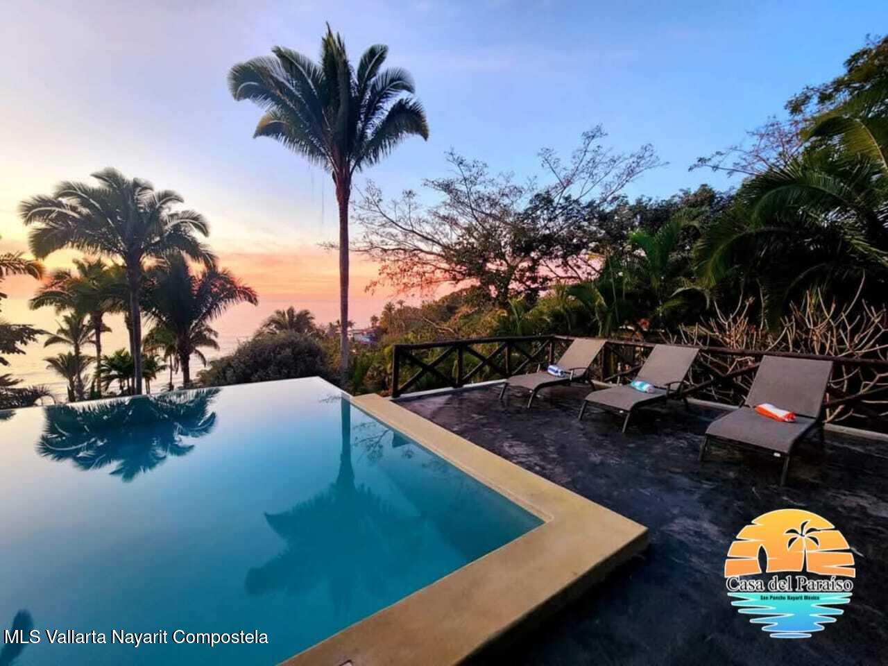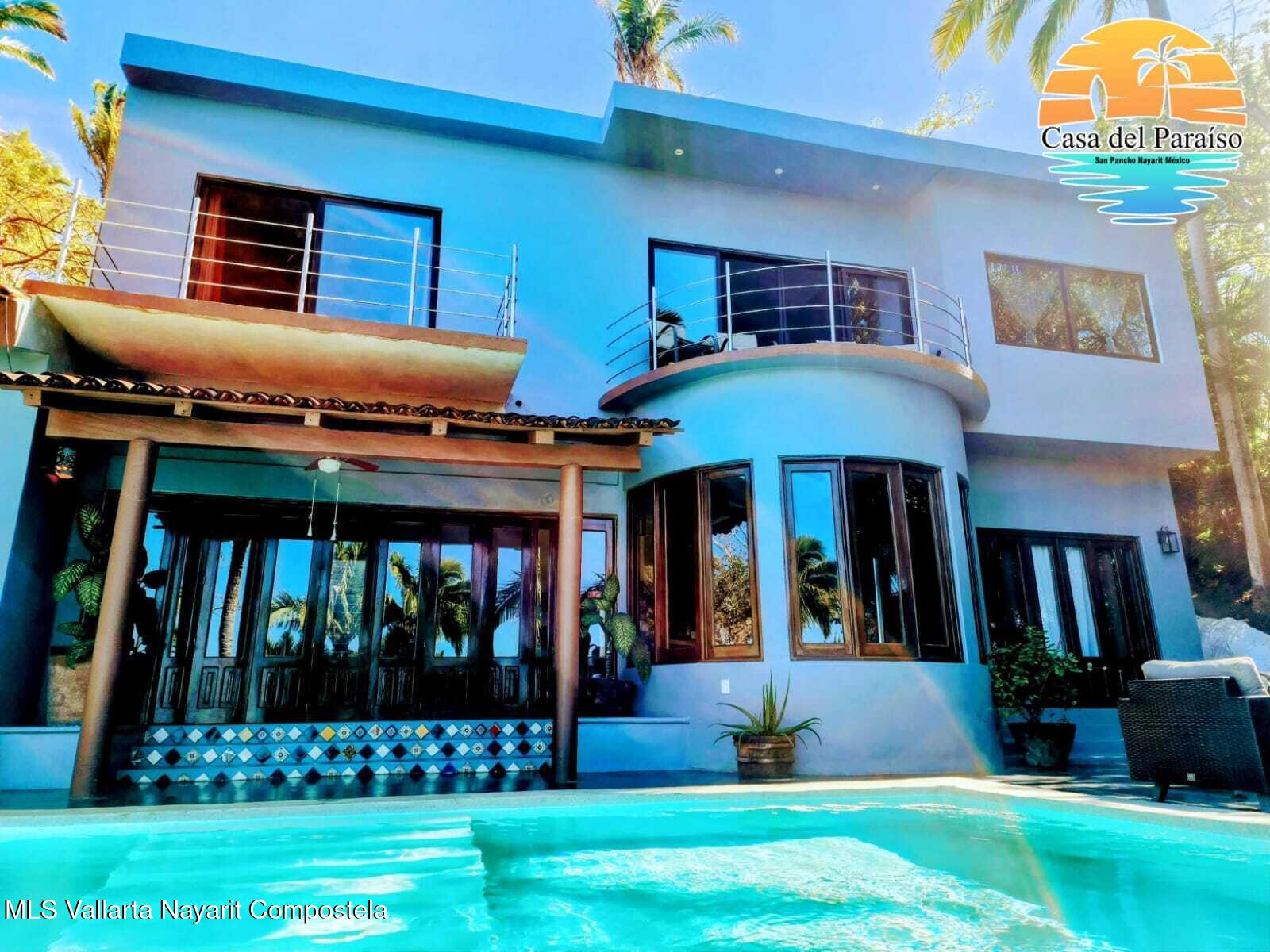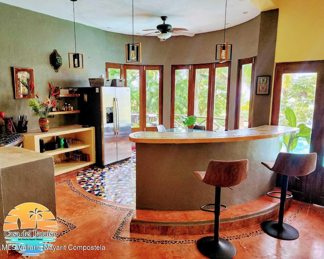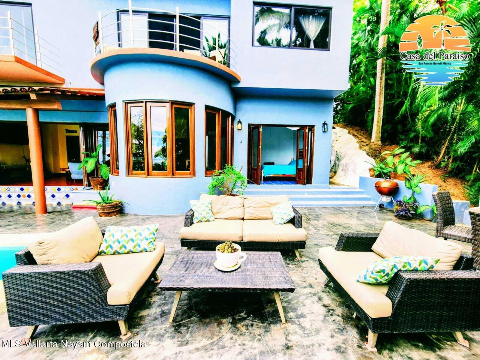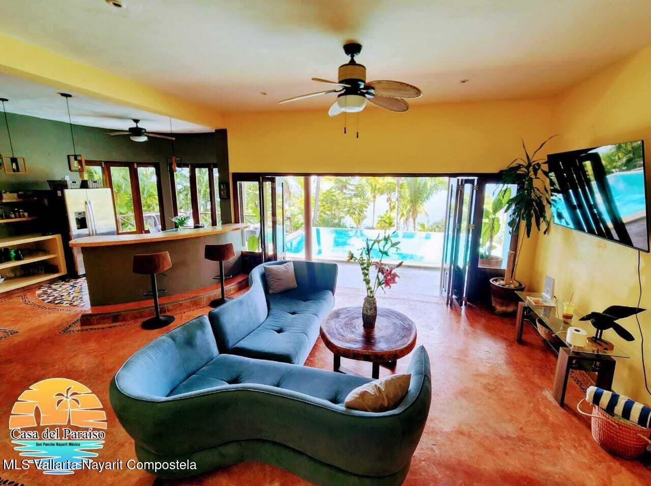 At the highest point of the coveted Costa Azul neighborhood on San Pancho’s North Beach, Casa del Paraiso rises above the community with uninterrupted, exquisite ocean and jungle views from every area of the property. Contemporary, inviting, and walkable to the beach, this home blends authentic Mexican style with custom furniture and abundant natural light. The patio, pool, and outdoor terrace offer generous space for relaxing or entertaining.This turnkey property can function as a single-family home or be easily configured as a duplex, offering flexibility for rental income or multi-family living. Every vantage point showcases the stunning scenery–ocean, jungle, and the surrounding hills–making Casa del Paraiso a truly exceptional opportunity.