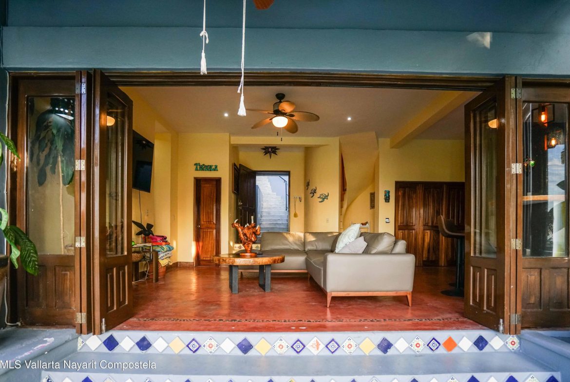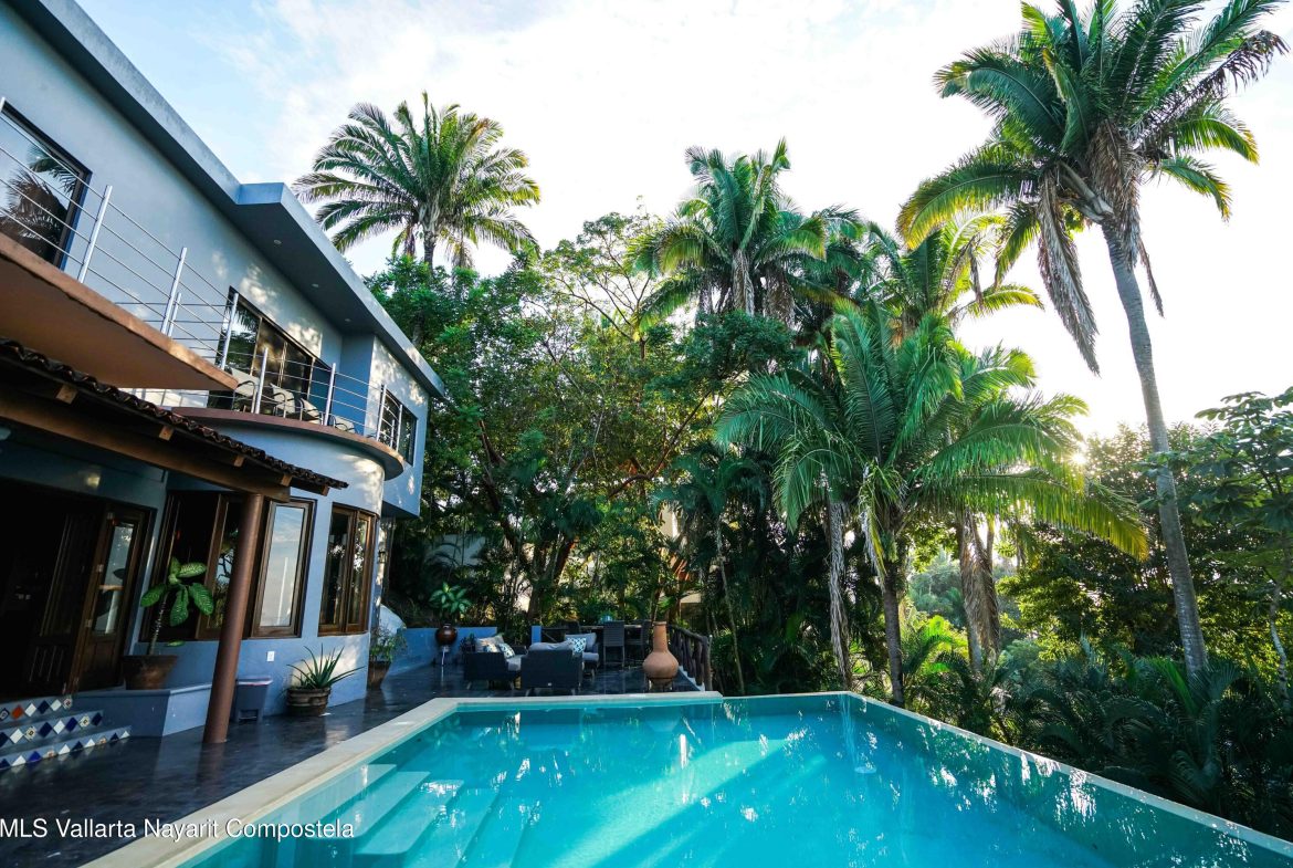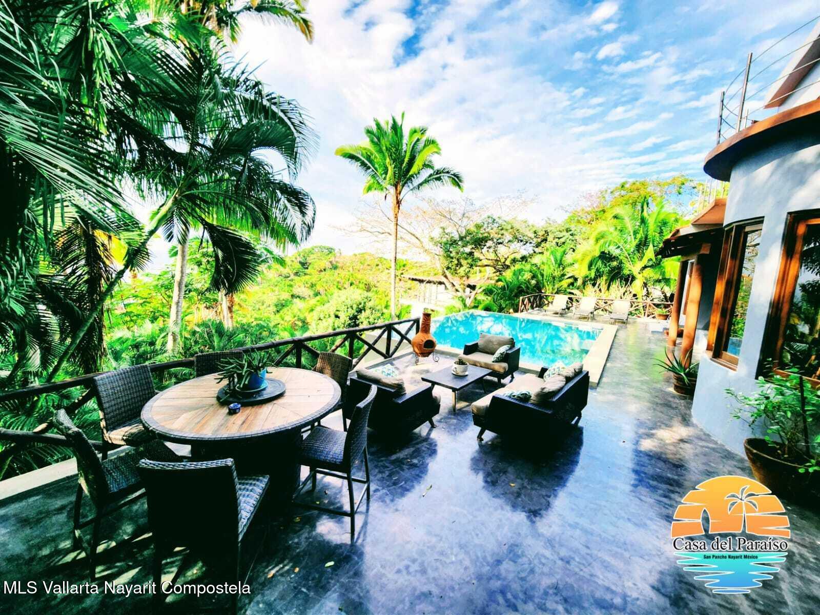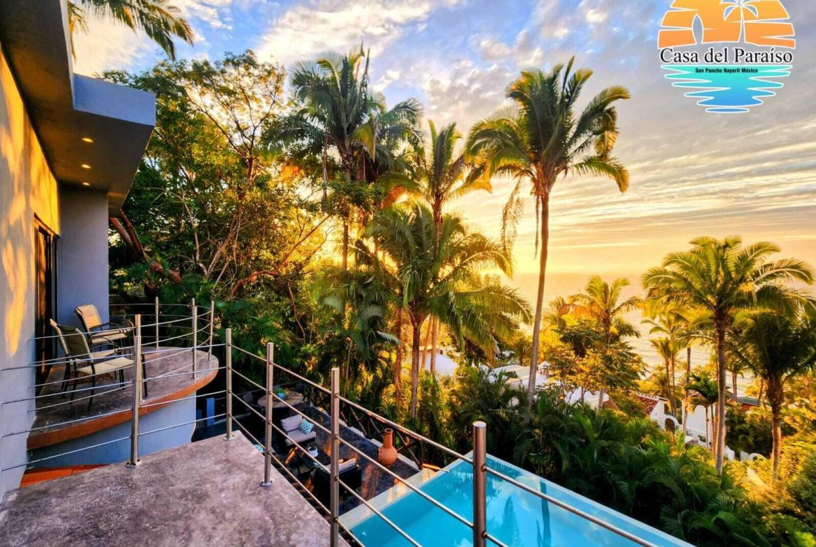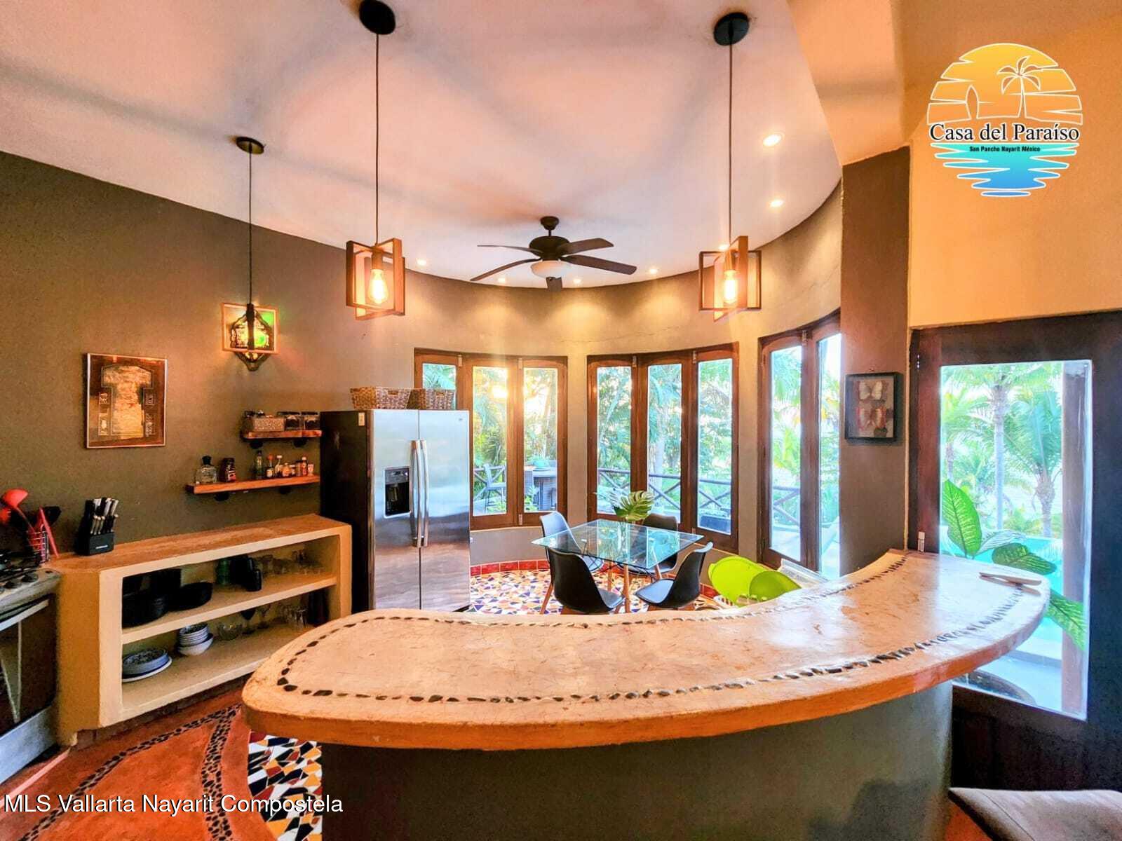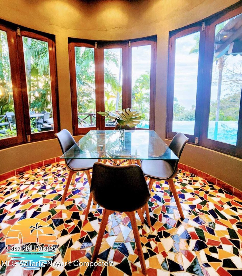 At the highest point of the coveted Costa Azul neighborhood on San Pancho’s North Beach, Casa del Paraiso rises above the community with uninterrupted, exquisite ocean and jungle views from every area of the property. Contemporary, inviting, and walkable to the beach, this home blends authentic Mexican style with custom furniture and abundant natural light. The patio, pool, and outdoor terrace offer generous space for relaxing or entertaining.This turnkey property can function as a single-family home or be easily configured as a duplex, offering flexibility for rental income or multi-family living. Every vantage point showcases the stunning scenery–ocean, jungle, and the surrounding hills–making Casa del Paraiso a truly exceptional opportunity.