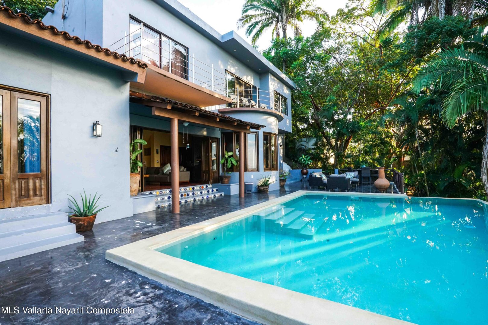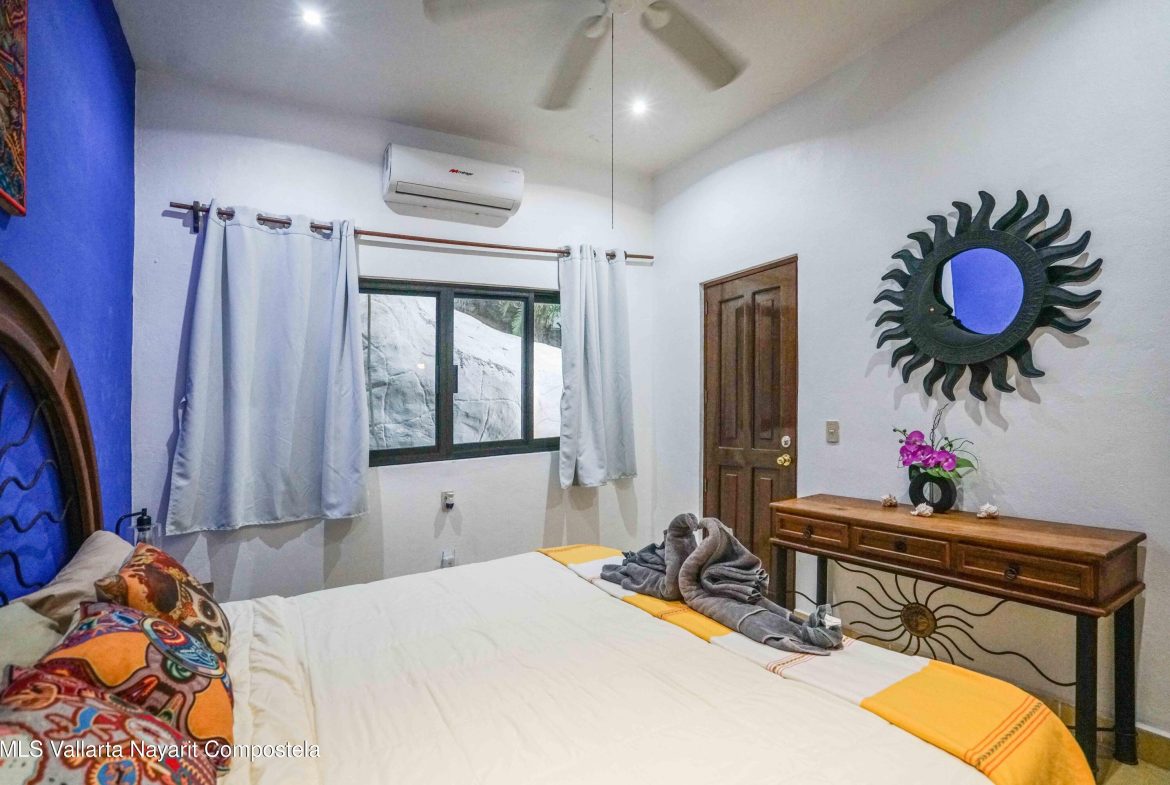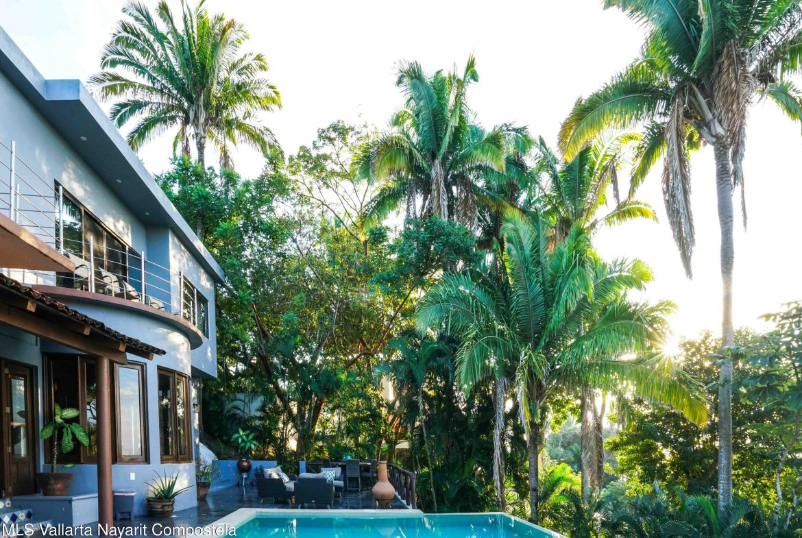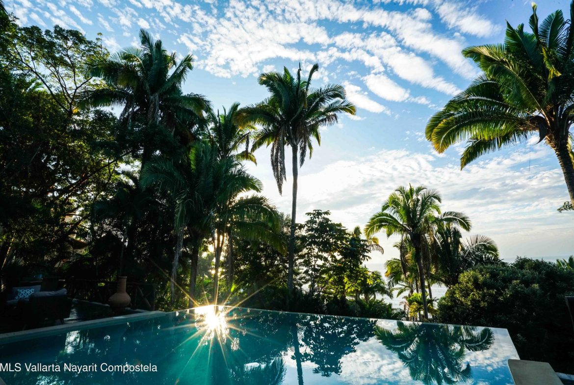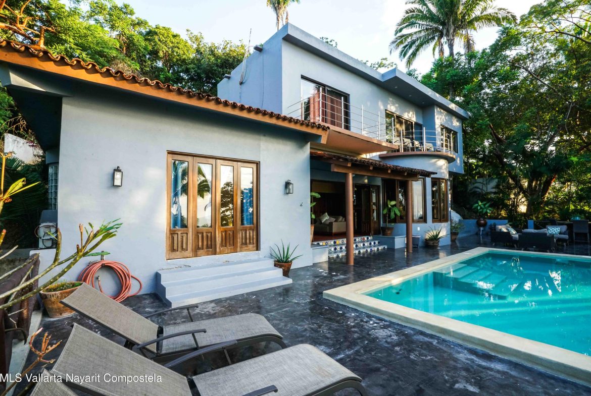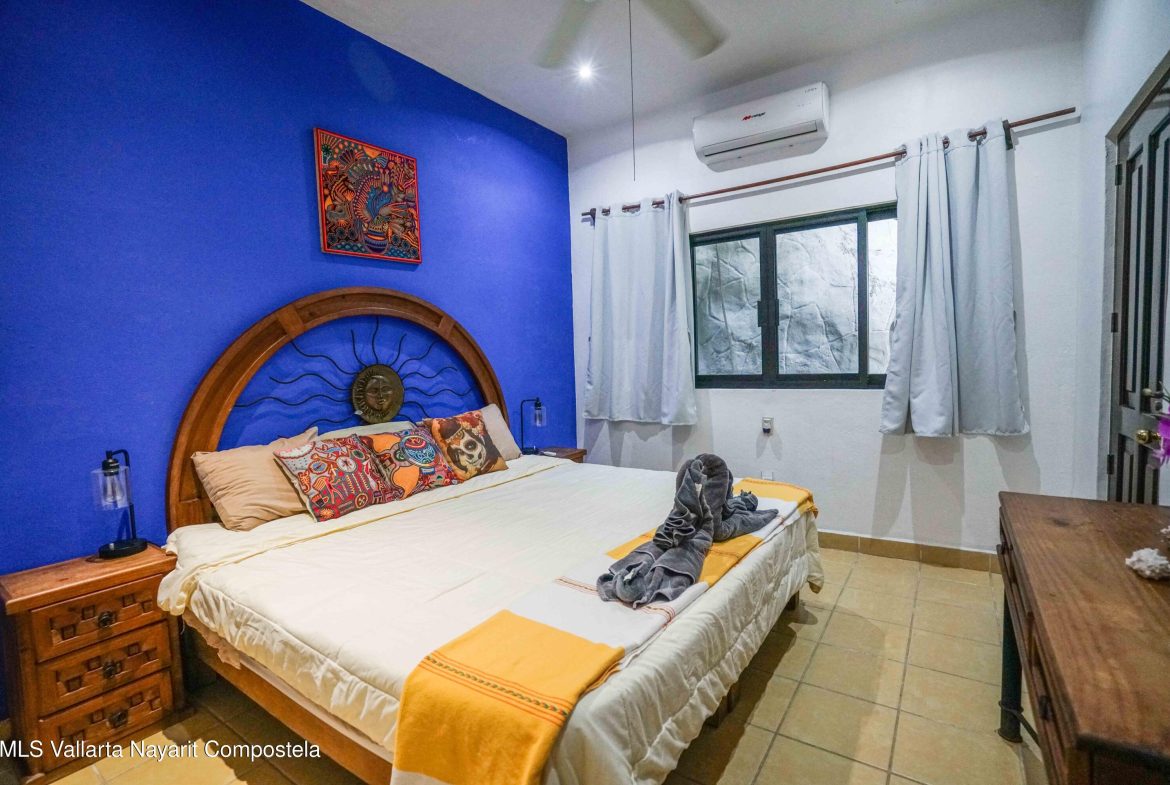 At the highest point of the coveted Costa Azul neighborhood on San Pancho’s North Beach, Casa del Paraiso rises above the community with uninterrupted, exquisite ocean and jungle views from every area of the property. Contemporary, inviting, and walkable to the beach, this home blends authentic Mexican style with custom furniture and abundant natural light. The patio, pool, and outdoor terrace offer generous space for relaxing or entertaining.This turnkey property can function as a single-family home or be easily configured as a duplex, offering flexibility for rental income or multi-family living. Every vantage point showcases the stunning scenery–ocean, jungle, and the surrounding hills–making Casa del Paraiso a truly exceptional opportunity.