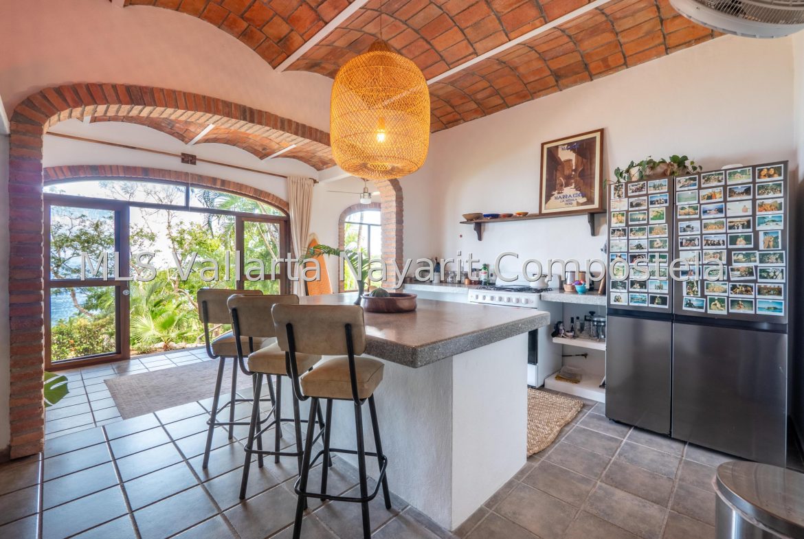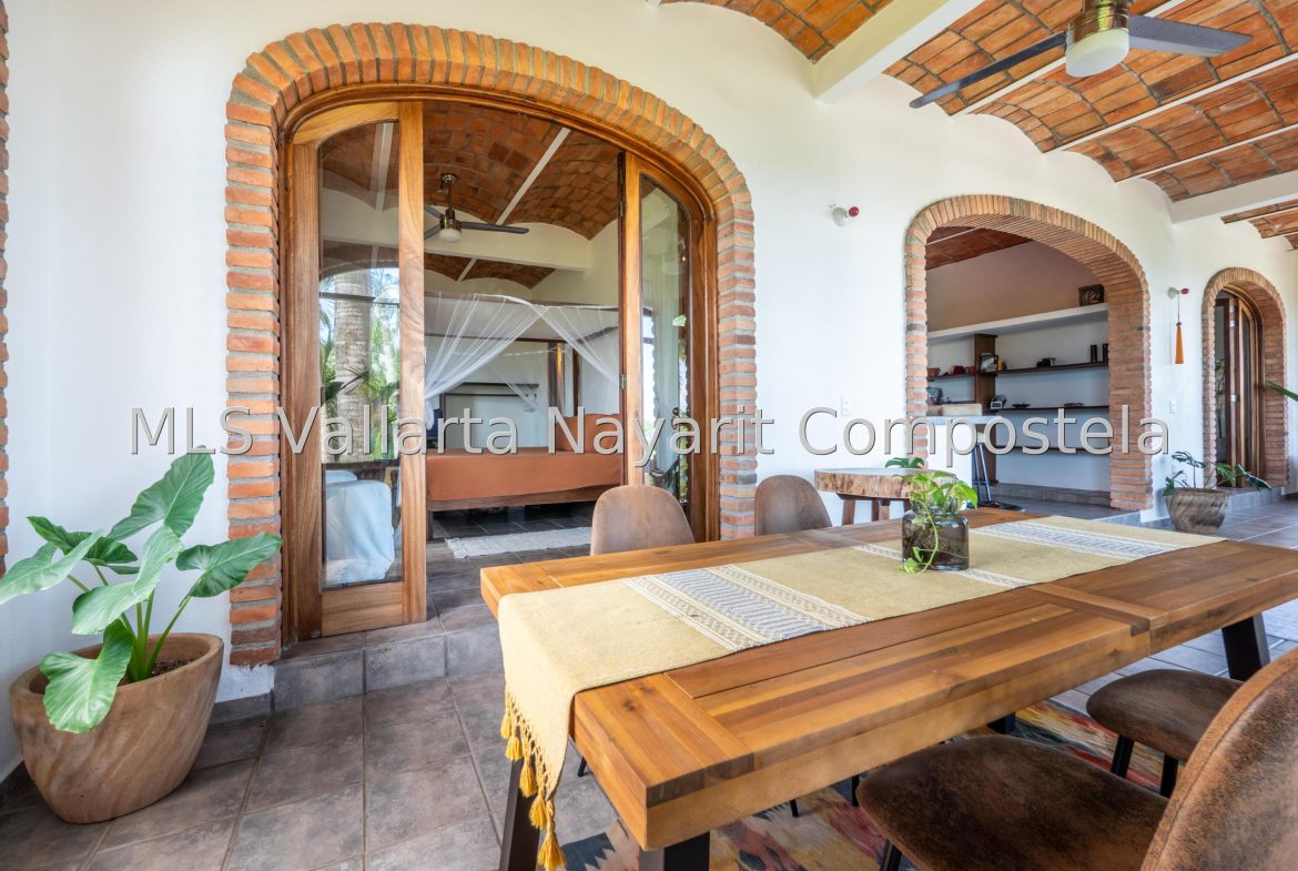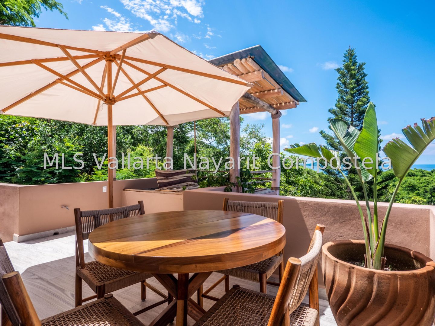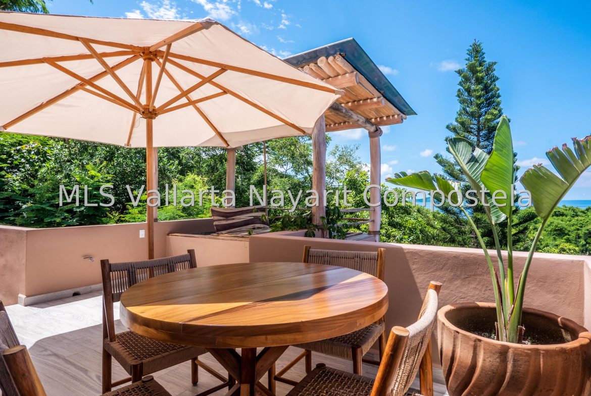 English below:Casa Dolce Vita, una casa de 3 dormitorios y 4 banos con impresionantesVistas panoramicas al mar desde todos los niveles. Esta casa se encuentra en un lote grande en la ladera con unahermoso jardin en terrazas y multiples espacios para descansar conhamacas. Es el lugar perfecto para desconectar y disfrutar de la naturaleza.belleza de Playa Patzcuaro. La piscina infinita con salon frente al mar.sillas que ofrecen una experiencia impresionante, especialmente durante el atardecer. casaDolce Vita esta dividida en tres unidades separadas con una palapa en la azotea queFunciona como un cuarto dormitorio abierto con cocina exterior.Situado a solo 15 minutos en coche del centro de Sayulita, los huespedes puedenacceda facilmente a la vibrante atmosfera de la