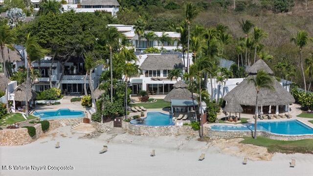 OCEANFRONT ESTATE on DESTILADERAS BEACH60 Linear Feet of Beachfront – 9,500 square feet of total construction.6 bedrooms with 8 custom designed bathroomsIt is extremely rare to find such a spacious & private home located on a premier beach in La Playa Destiladeras. This one-of-a-kind solid construction oceanfront home sits overlooking the entire Bahia de Banderas and has been meticulously cared for to the finest detail. 24-hour security, public areas that include tennis & pickleball courts, fitness center, & private Casa Club. Designed as the model home by one of Mexico’s most famous architect, Jaime Barba & Gerardo Ramirez. It is the prime lot, literally lot #1 of only 7 beachfront homes in the community and situated on a rare level plane with the beachfront.