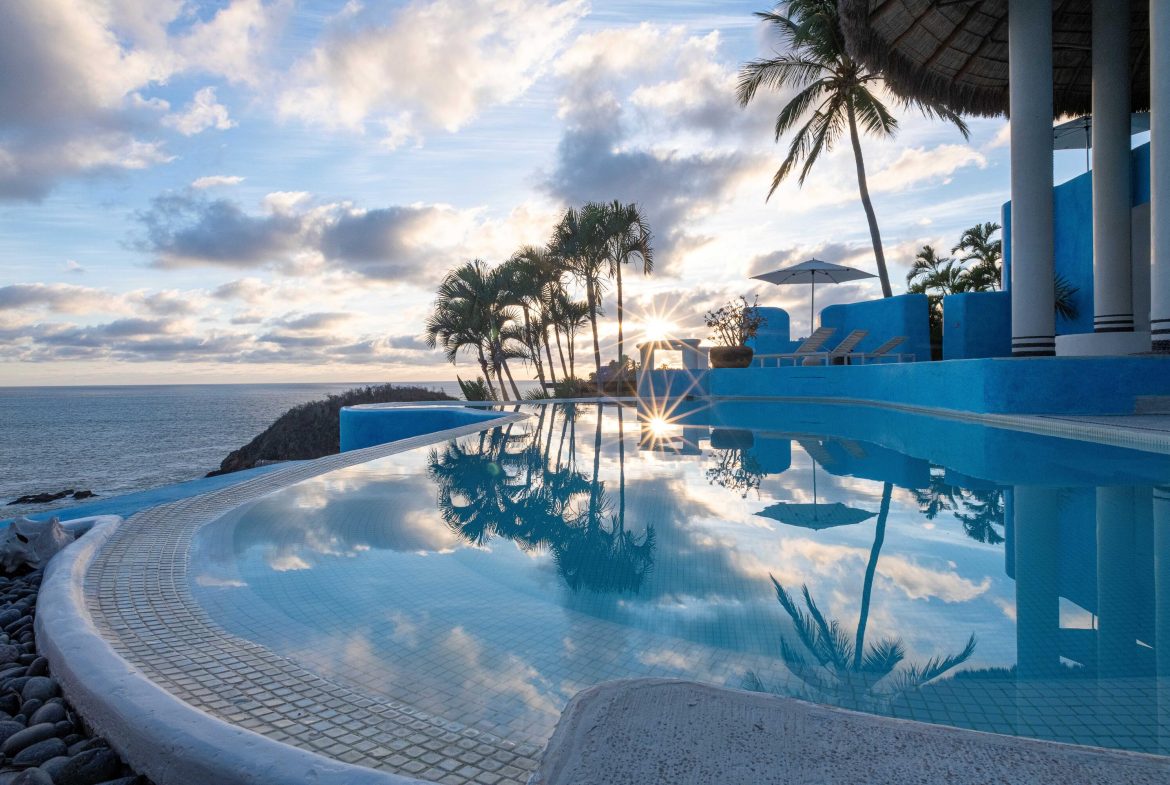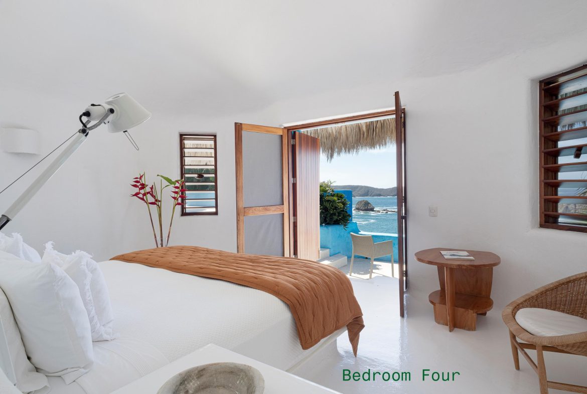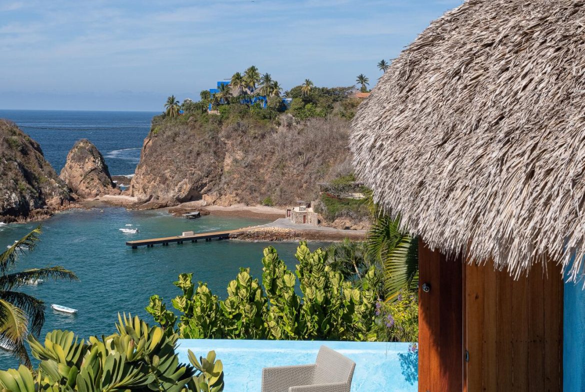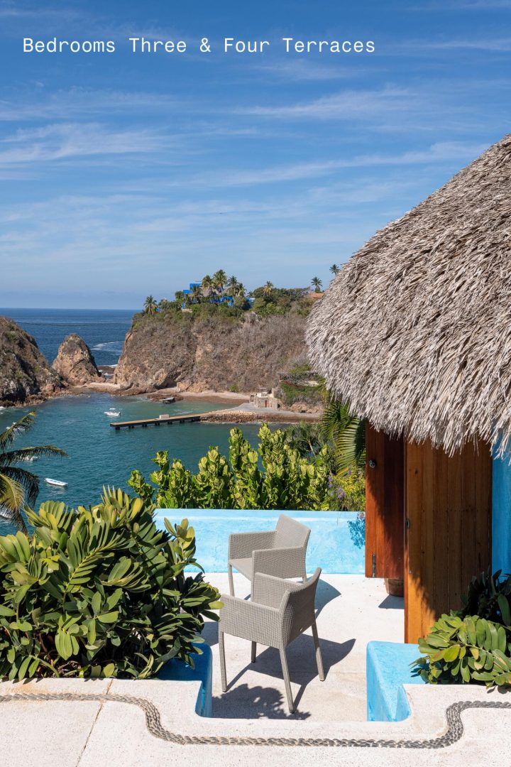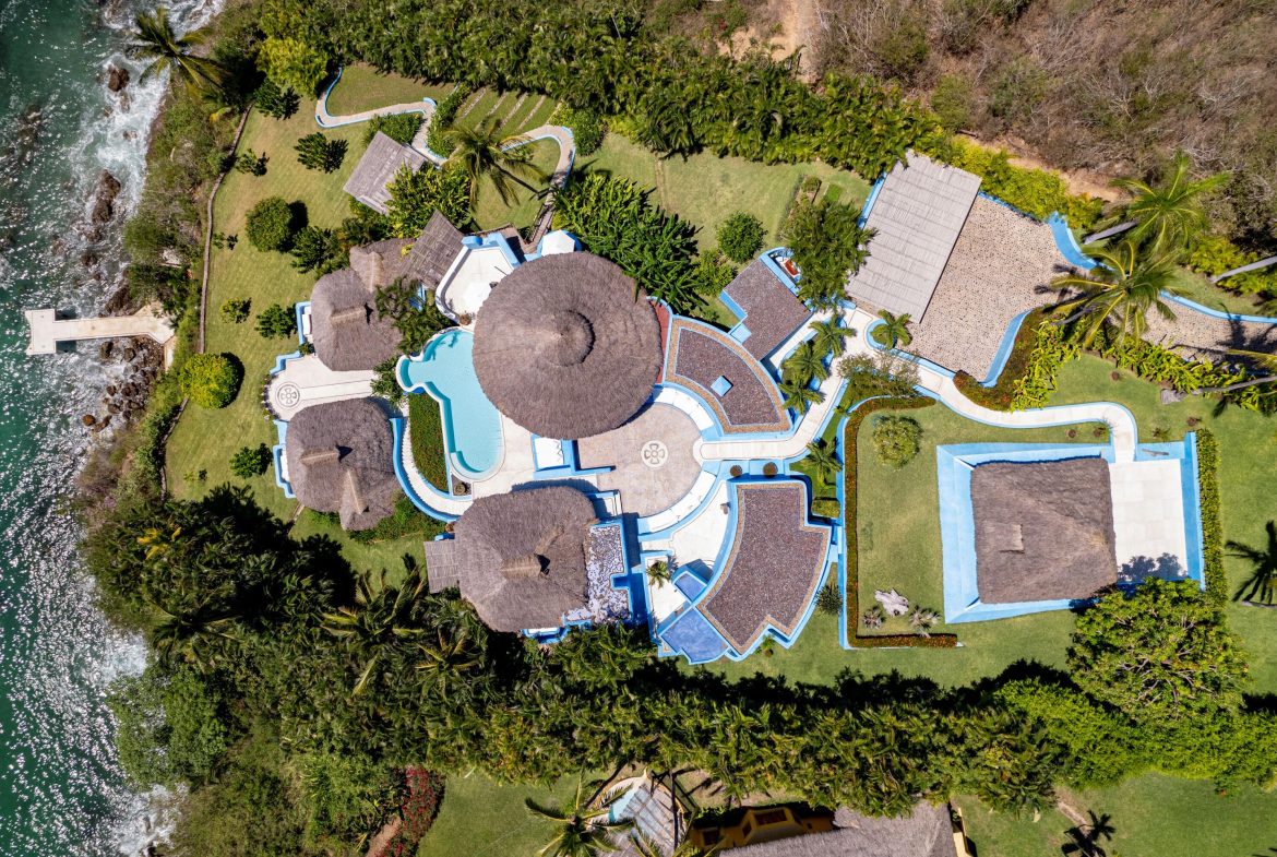 Casa Encantada is designed by renowned architect Diego Villasenor to offer both high drama and warm family memories. This estate is located on one of the most desirable locations in all of Costa Careyes – between the spectacular Playa Blanca Estate and the beach and restaurant at Playa Rosa – the center of Careyes social life. Playa Rosa is a 10-minute walk or a refreshing 12-minute swim from your private pier.Casa Encantada has 226 feet of oceanfront and owns one of only two boat / swimming piers on the bay. This estate has 6 bedrooms, 8 baths, media room / office + a separate 3-bedroom, 2 bath home for staff. Each casita has a private sun deck. Privacy is secured as its northern boundary remains undeveloped, surrounded by nature.