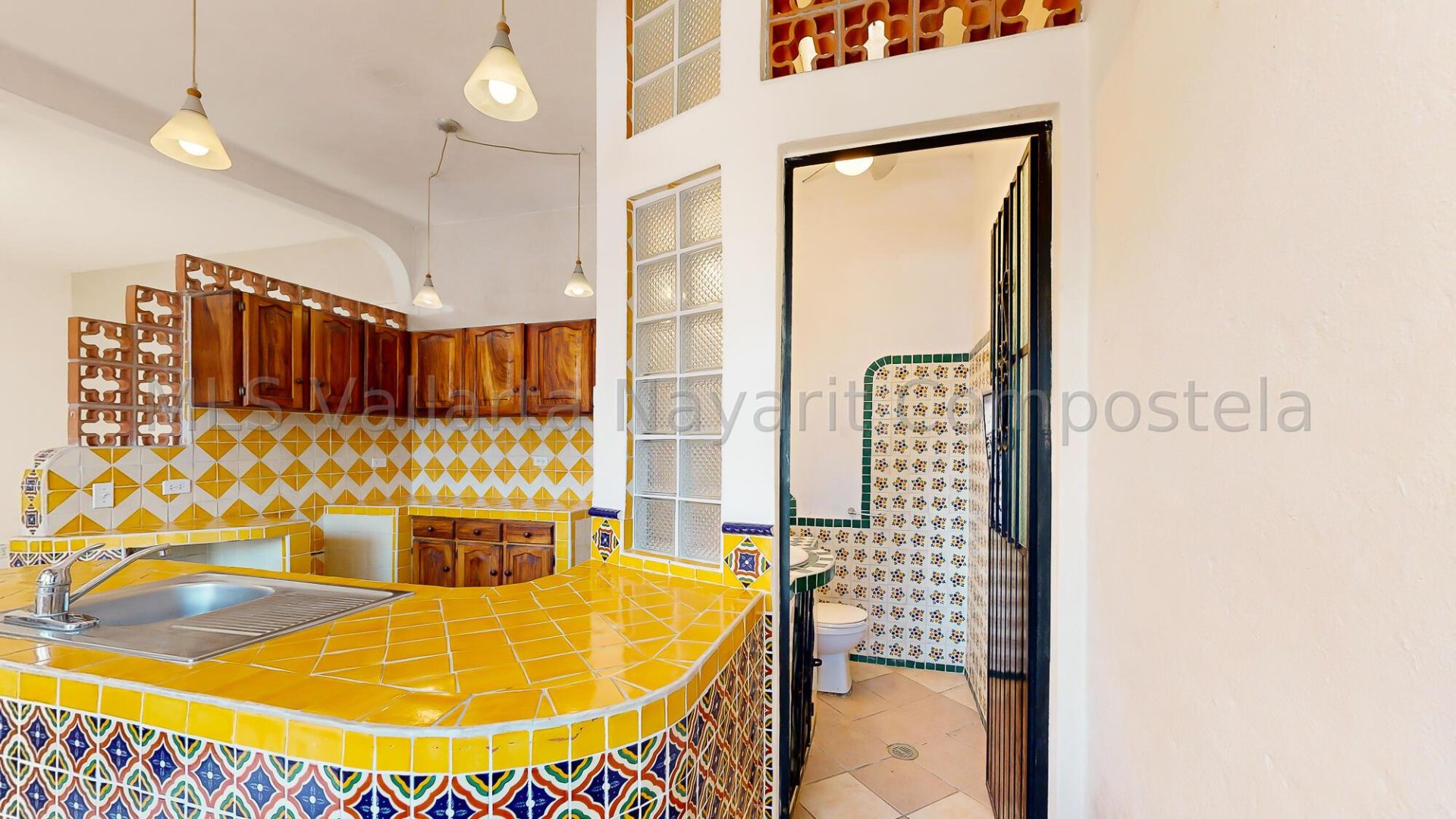 Welcome to your new oasis in the heart of Bucerias! This charming 2-bedroom, 2 1/2-bathroom house perfectly blends traditional Mexican flair and modern comfort. Tucked away from the street, the home offers a serene retreat with a welcoming sidewalk entrance that leads you to a picturesque garden.As you approach, you’re greeted by a delightful garden entrance featuring a lovely fountain that provides a soothing ambiance. Several areas for plants allow you to create your own lush, green haven. Step inside to find a combined living room and dining room space adorned with beautiful, colorful Mexican tiles. These tiles add a touch of local artistry and charm, creating a warm and inviting atmosphere.