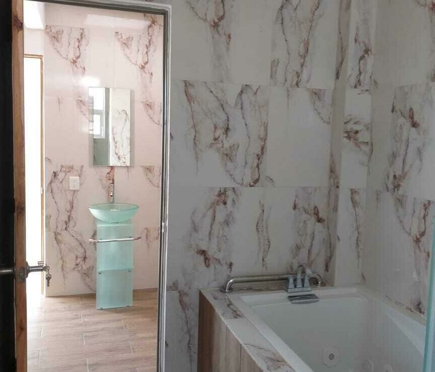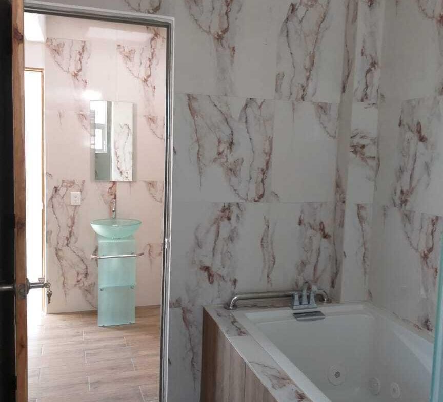 Casa de cuatro recamaras y dos y medio banos, ubicada en colonia Valle Esmeralda, cerca de la Mision, San Vicente Nayarit, a 30 minutos de las playas de Nuevo Vallarta y 40 minutos del Aeropuerto Internacional de Puerto Vallarta, La casa cuenta con estacionamiento para un auto con porton y rooftop con jacuzzi y bano. Four-bedroom, two-and-a-half-baths house located in the Valle Esmeralda neighborhood, near ”La Mision” in San Vicente Nayarit, just a 30 minutes drive to the beaches of Nuevo Vallarta and 40 minutes to Puerto Vallartas International Airport. The house has carport and a rooftop terrace with a Jacuzzi and bathroom.