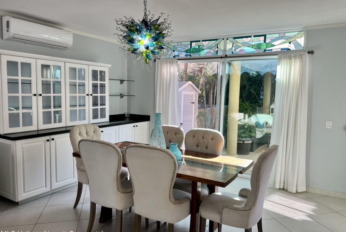 SPANISH below.Discover your tropical retreat in Coto Flamingos, a gated community just steps from the beach! This fully furnished 3BR, 2.5BA home offers energy efficiency with 15 solar panels and an open, airy layout featuring stained-glass accents, a chef’s kitchen with pantry and laundry area, and a serene backyard with lush gardens, water feature, and covered patio. Upstairs includes a second living/media space, three spacious bedrooms, and two beautifully renovated baths. Enjoy resort-style amenities–pool, tennis/pickleball, 24-hr security, and private beach access across the street. The perfect blend of comfort and coastal living!