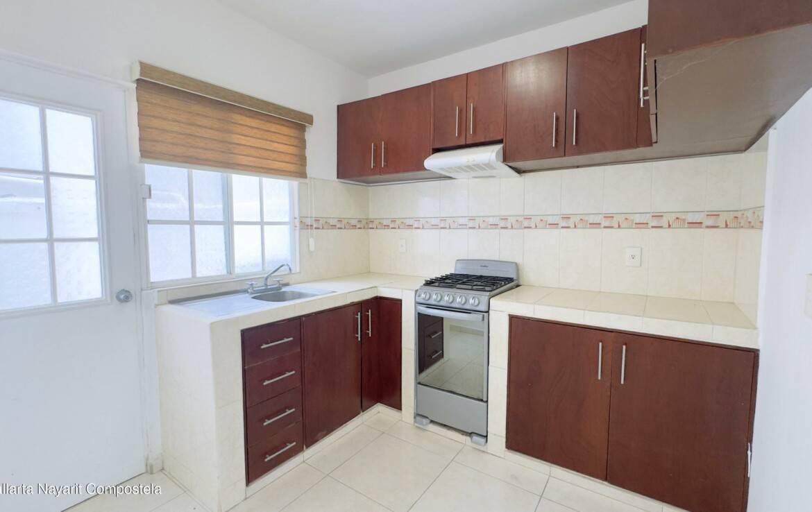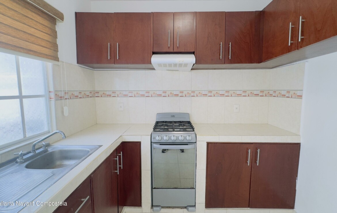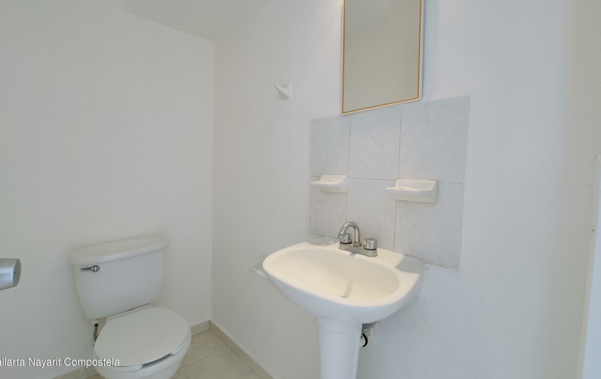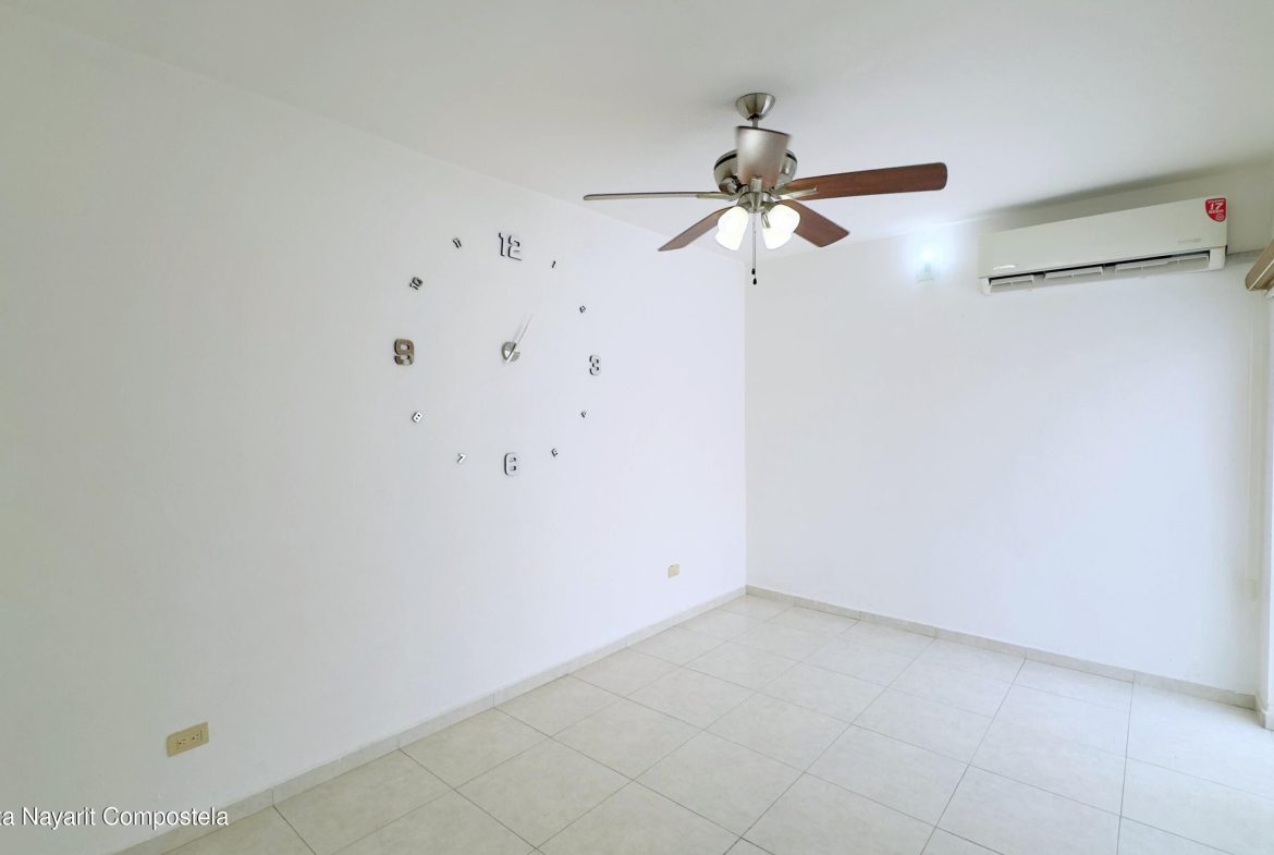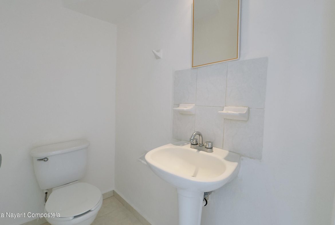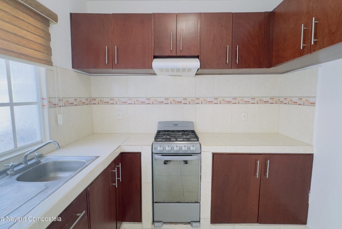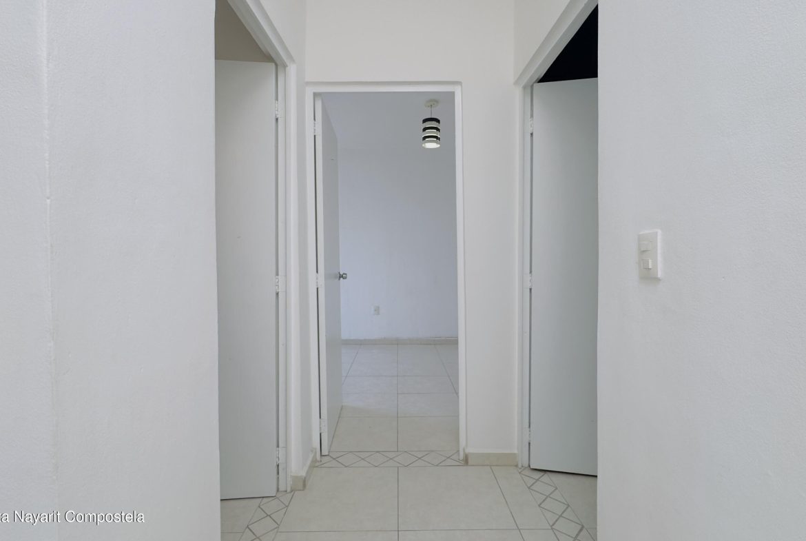 Casa en Las Ceibas, Bahia de Banderas, esta propiedad de dos plantas cuenta en planta baja con sala, comedor, cocina integral, estudio o sala de TV (opcion a tercera recamara), medio bano, patio de servicio y estacionamiento para dos autos. En planta alta se encuentran la recamara principal con bano y walking closet, una recamara secundaria y un bano completo adicional. El coto ofrece seguridad 24/7, areas verdes, juegos infantiles y canchas de usos multiples. Se ubica cerca de centros comerciales, escuelas, hospitales y playas. Precio en pesos: $2,995,000 MXN.