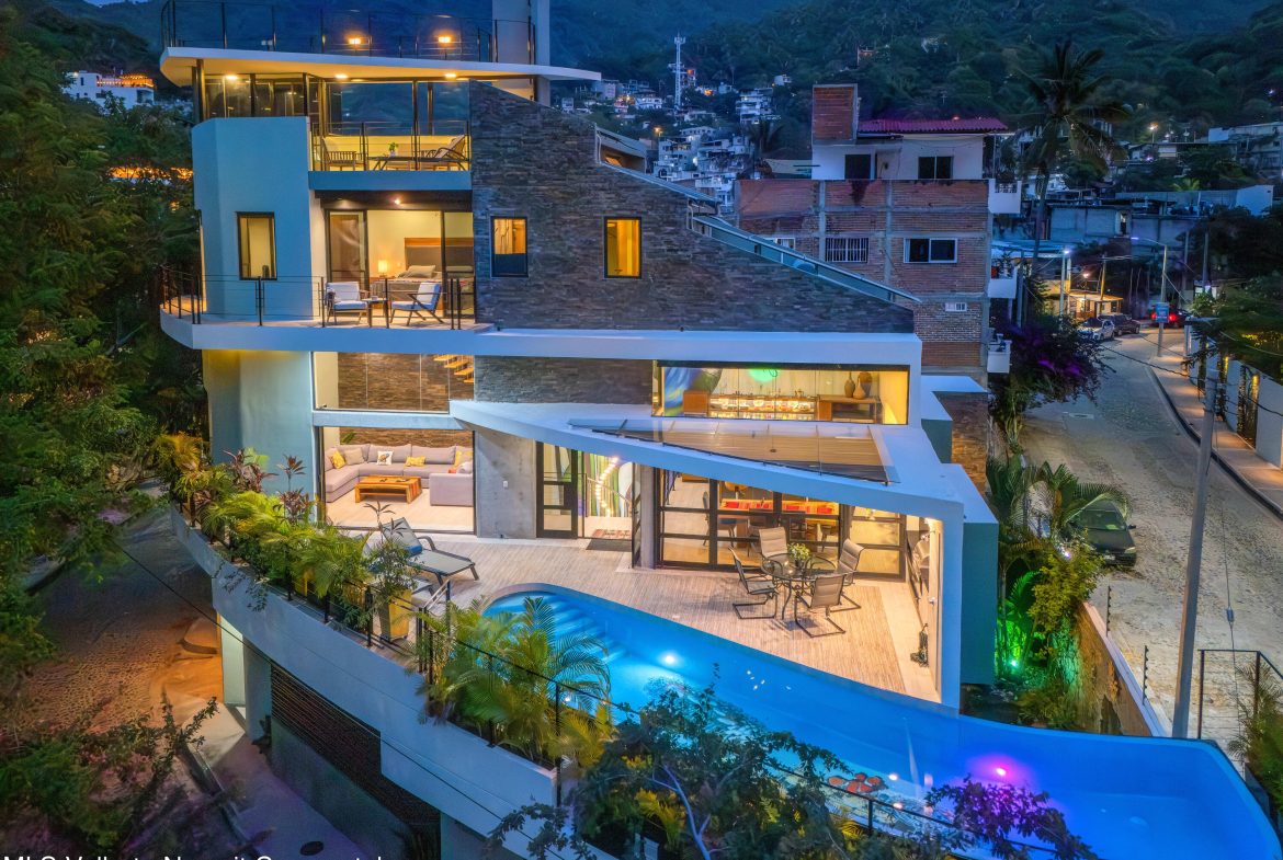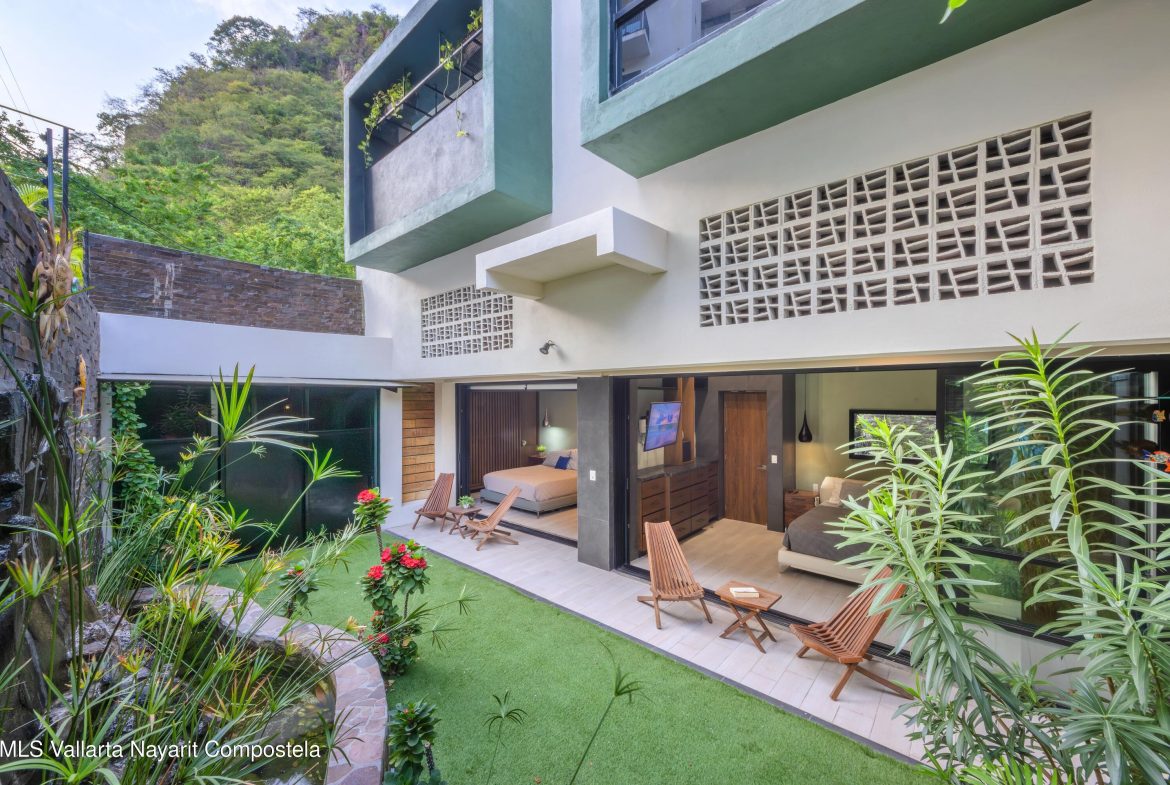 Stunning custom-built home perfectly positioned between the Romantic Zone and Gringo Gulch. This spacious 4-bedroom, 3.5-bath residence is thoughtfully designed to capture abundant natural light while maintaining exceptional privacy, all framed by beautiful mountain views throughout. The entry level includes the garage, three bedrooms, and two full bathrooms, opening onto a generous garden terrace with a tranquil water feature. A separate office or workshop with its own private entrance offers flexibility and convenience for work or creative projects. On the main living level, an open-concept layout unites the living, dining, and kitchen areas, all flowing seamlessly onto a large terrace with an inviting pool�perfect for entertaining and embracing the Vallarta indoor-outdoor lifesty