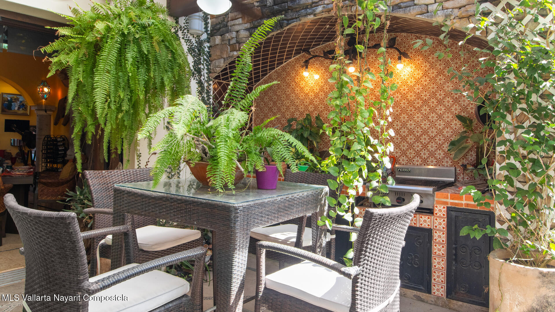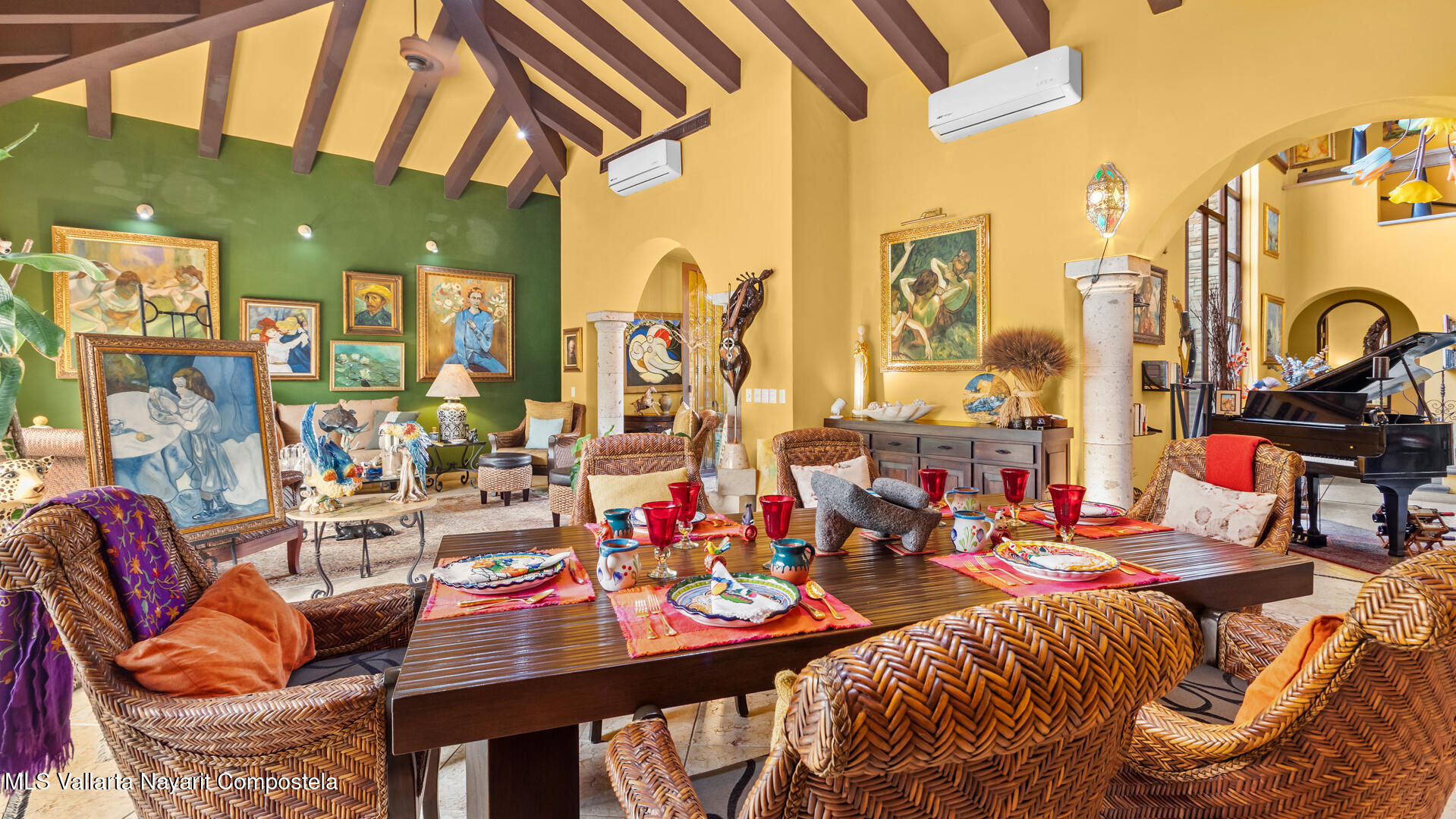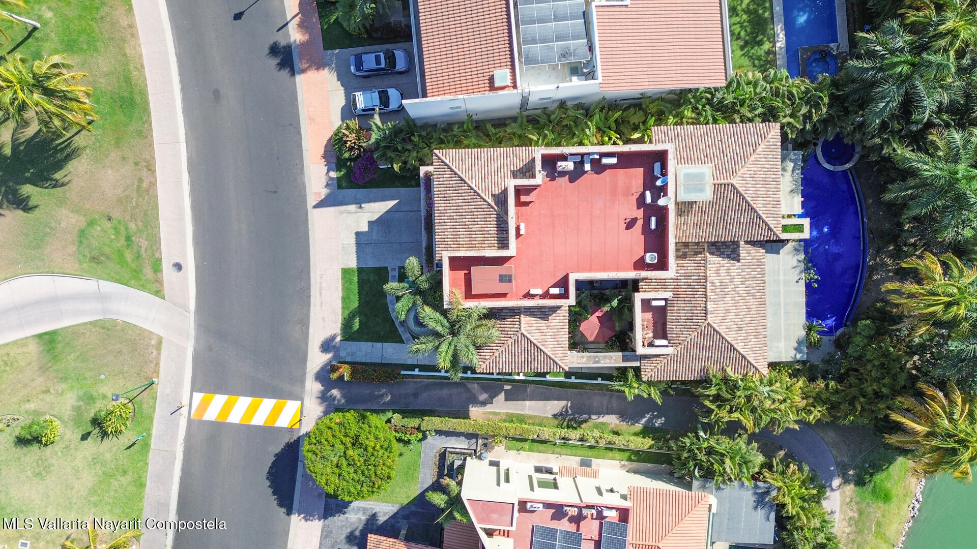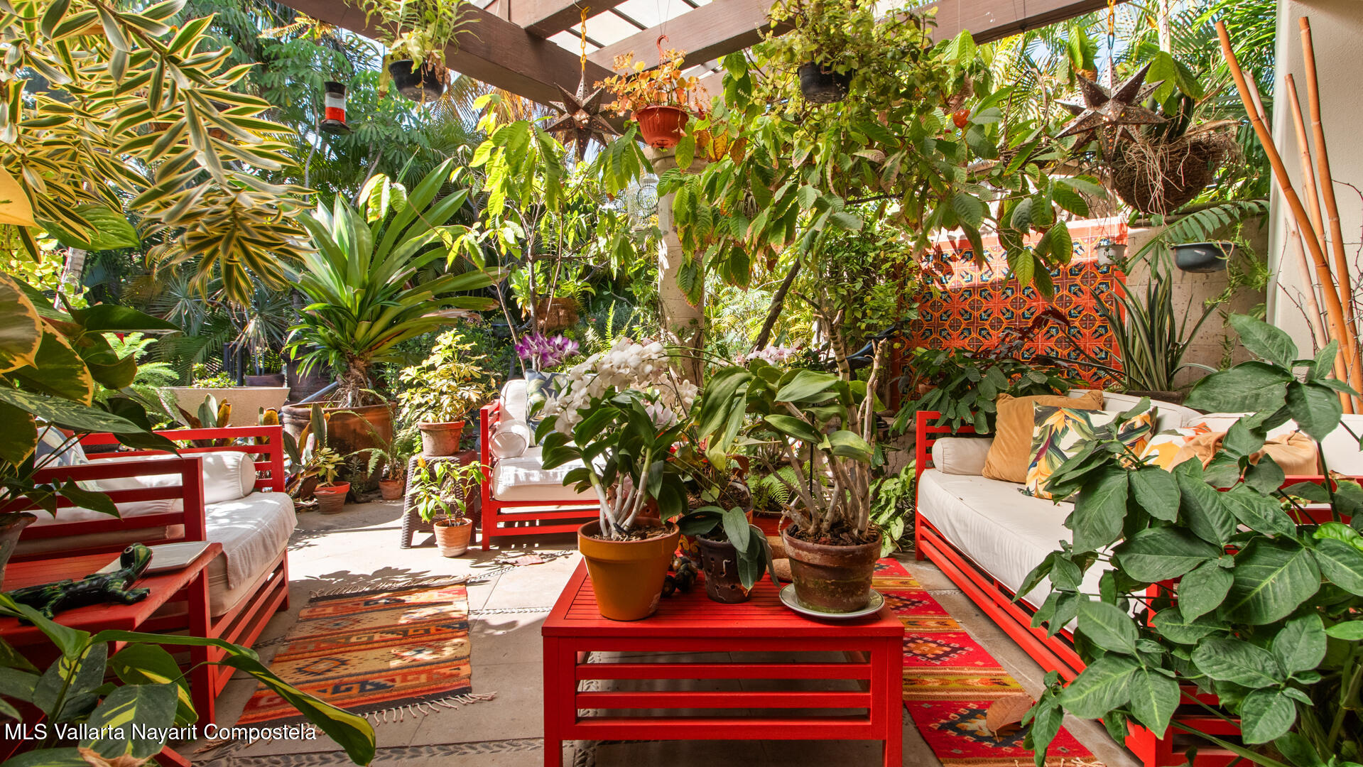 Welcome to this exquisite residence that perfectly blends luxury, comfort, and vibrant character. This beautifully designed home features 4 spacious bedrooms + a office, along with 3 full bathrooms and 2 half baths, offering ample space for both everyday living and entertaining.Step inside to discover soaring ceilings, abundant natural light, and a seamless indoor-outdoor flow. The home is filled with artistic charm, highlighted by colorful accents and warm architectural details throughout.The heart of the home opens to a breathtaking outdoor oasis–featuring a curved pool surrounded by lush tropical landscaping, creating a serene and private retreat ideal for relaxing or hosting guests.