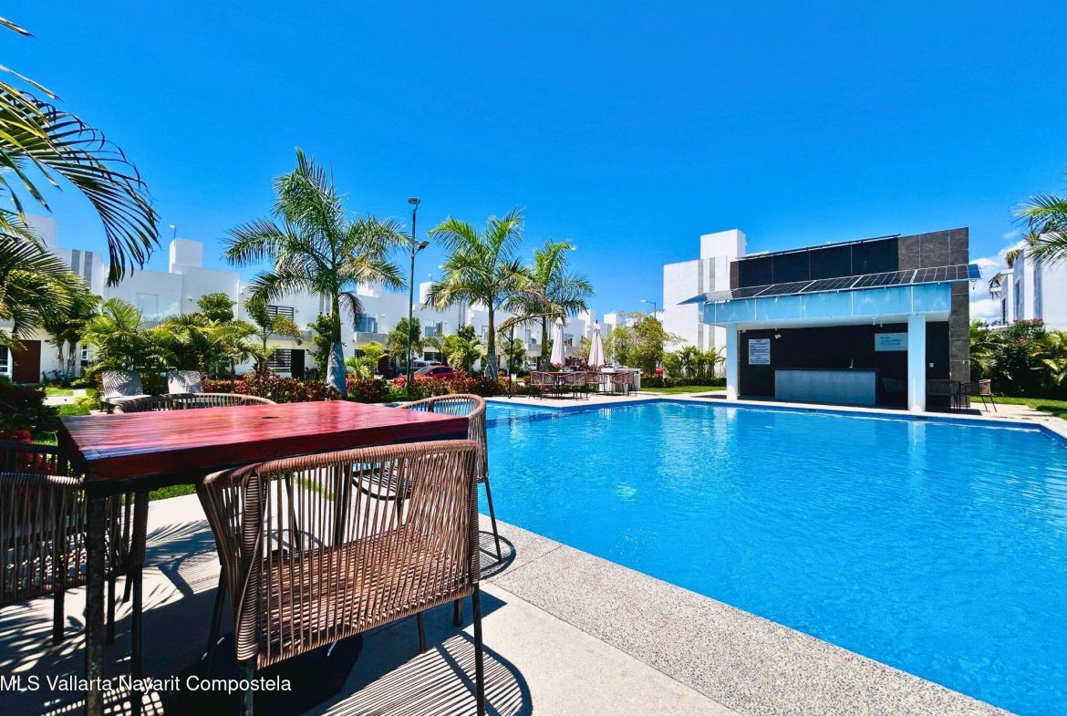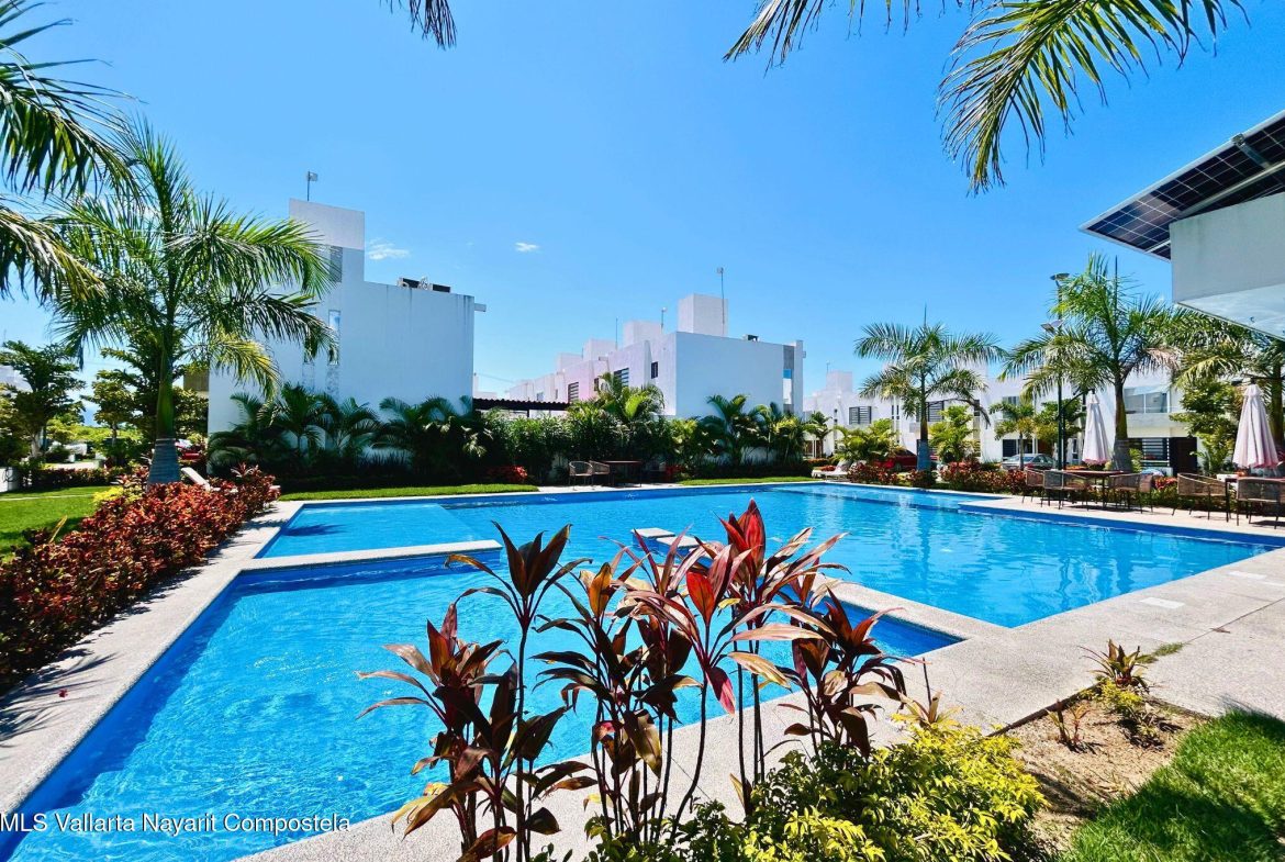 CASA ISLA MENORCA ITS CORNER LOCATION, IN A CLUSTER OF ONLY 54 HOMES IN THE BEST LOCATED AREA OF ALTAVELA II IN BAHIA DE BANDERAS, OFFERS UNBEATABLE CONDITIONS TO MAKE CASA MENORCA YOUR HOME, YOUR WEEKEND GETAWAY OR YOUR RENTAL BUSINESS. CASA MENORCA OFFERS 3 SUPER BRIGHT AND FRESH BEDROOMS, ONE OF THE BEDROOMS ON THE GROUND FLOOR, 3 FULL BATHROOMS, LIVING ROOM, DINING ROOM AND KITCHEN, IN ADDITION TO A PATIO WHERE THE SPACE OF 4 X 6 METERS, ARE ENOUGH TO DESIGN THE IDEAL SPACE, WITH INSTALLATIONS FOR A WASHING MACHINE, BOILER AND LAUNDRY ROOM. THE COMMON AREA ACQUIRES A RELEVANCE IN DAILY PERFORMANCE FOR HAVING PLENTY OF GREEN AREAS, POOL WITH WALKING POOLS, SUN LOUNGE AREA, PALAPA, BATHROOMS AND SHOWERS, THE IDEAL PLACE TO COMPLEMENT YOUR LIFESTYLE.