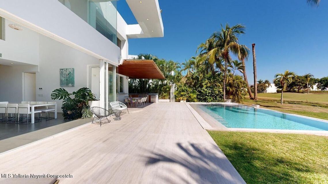 Luxury Residence in the exclusive El Tigre, Nuevo Nayarit – Golf Course Views. This impressive property combines space, comfort, and elegance in a privileged setting.Set on a large 800 m lot with beautifully designed 675 m (7,265 square feet) of construction. This contemporary home features 5 spacious bedrooms and 6.5 bathrooms, each with high-quality finishes and details that ensure comfort for the entire family.The heart of the home is its social area, with open spaces and floor-to-ceiling windows that flood each corner with natural light, while the private pool invites you to relax surrounded by a tropical atmosphere and panoramic golf course views.