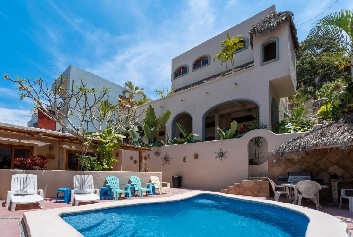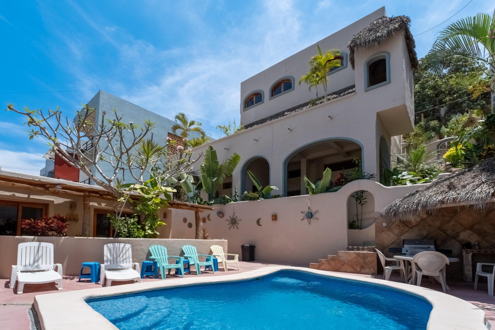 Casa Jacobo: The Crown JewelSpanning a generous lot of 485 M2 with a construction area of 490 M2,Casa Jacobo is a masterpiece of design and functionality. Featuring 8 generously sized bedrooms and 6.5 opulent bathrooms. The walls are adorned with captivating artwork, enhancing the aesthetic appeal of the interior. Outside, the spacious decks and terraces invite you to soak in the mesmerizing views of Sayulita’s natural beauty, while the palapa and refreshing pool offer a serene escape from the warmth of the sun.