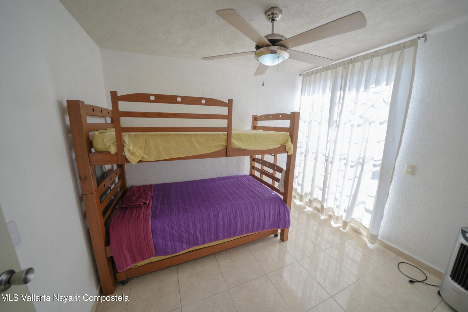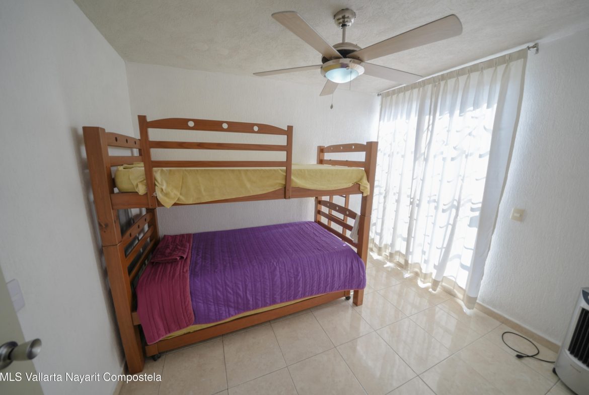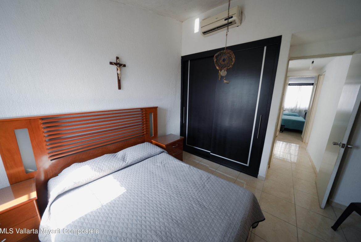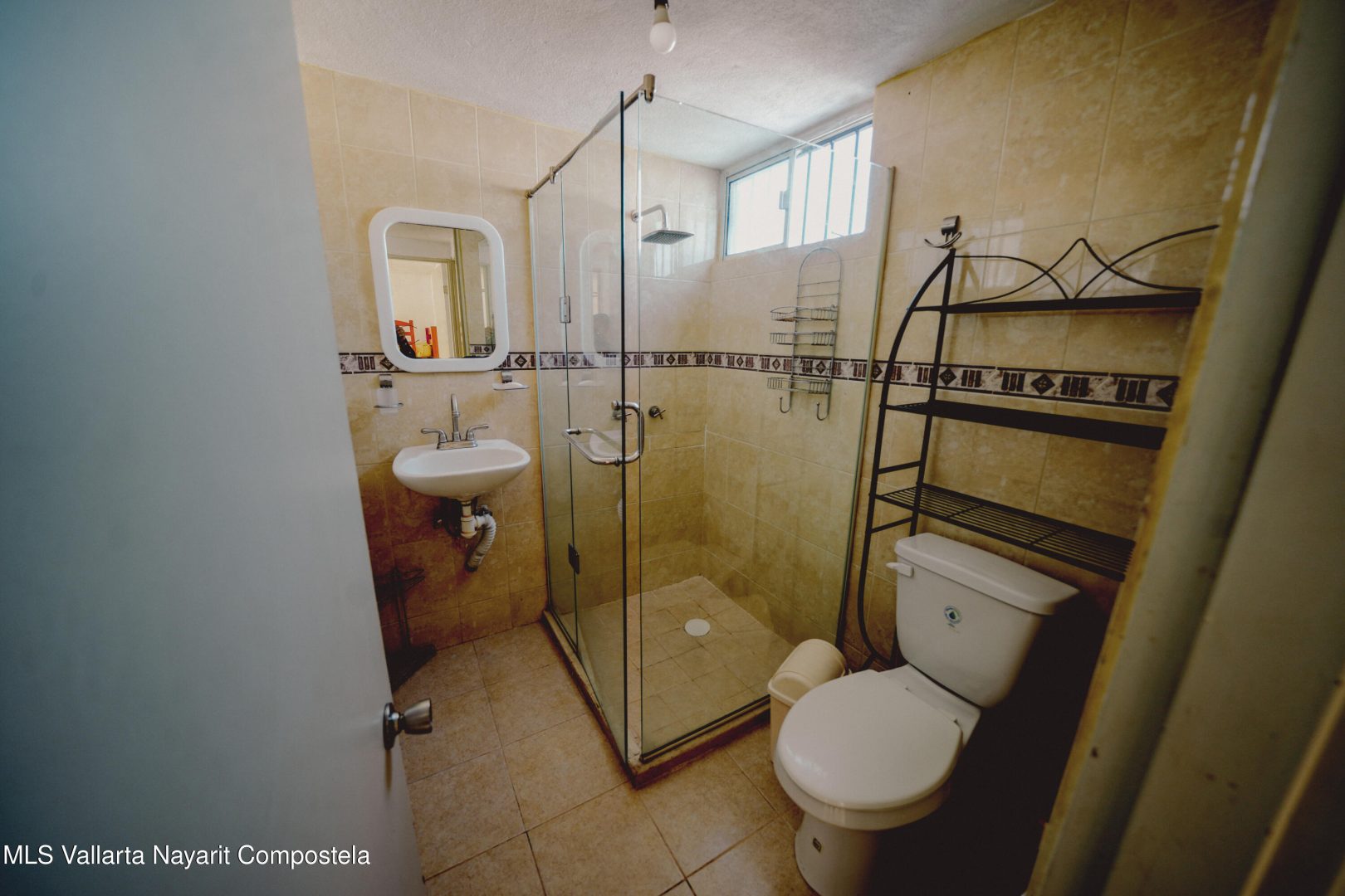 This house is located just 20 meters from the main avenue, Tlaxcala. It is a 5-minute drive to the Lago Real shopping center and 20 minutes to the nearest beach in Nuevo Vallarta. It is situated in one of the most accessible neighborhoods in Bahia de Banderas, featuring alternate routes with three different entry and exit points. The house has two levels, featuring 3 bedrooms and 1.5 bathrooms. The ground floor includes a living-dining area and a spacious backyard. The living room is very spacious, offering enough room to build a fourth bedroom in the future if desired. The kitchen is fully equipped, and there is one parking space. It is worth noting that the house is sold fully furnished. It also comes equipped with a water heater, 3 air conditioning units, ceiling fans, solar panels