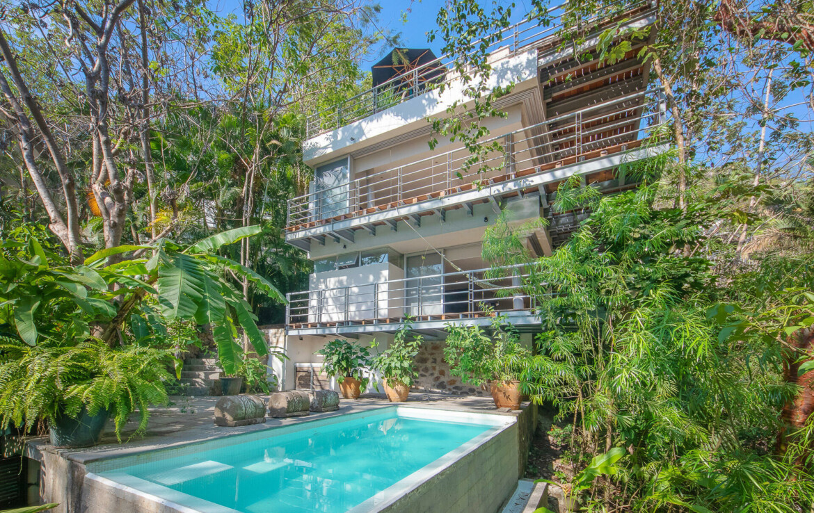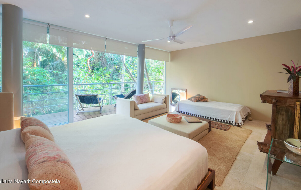 English: Tucked away in the lush hills of Las Amapas, this exclusive residence is part of a gated community of only 18 luxury homes, where privacy and nature come together in perfect harmony.Designed across three spacious levels, the home offers 3 bedrooms, 3.5 bathrooms, fully furnished, blending comfort with contemporary elegance. Expansive terraces open to the surrounding jungle, creating a seamless indoor-outdoor lifestyle.