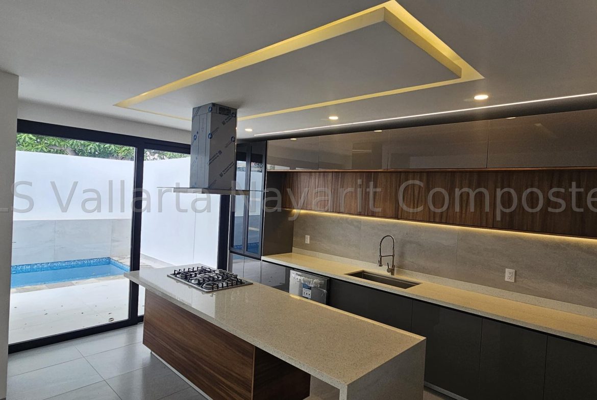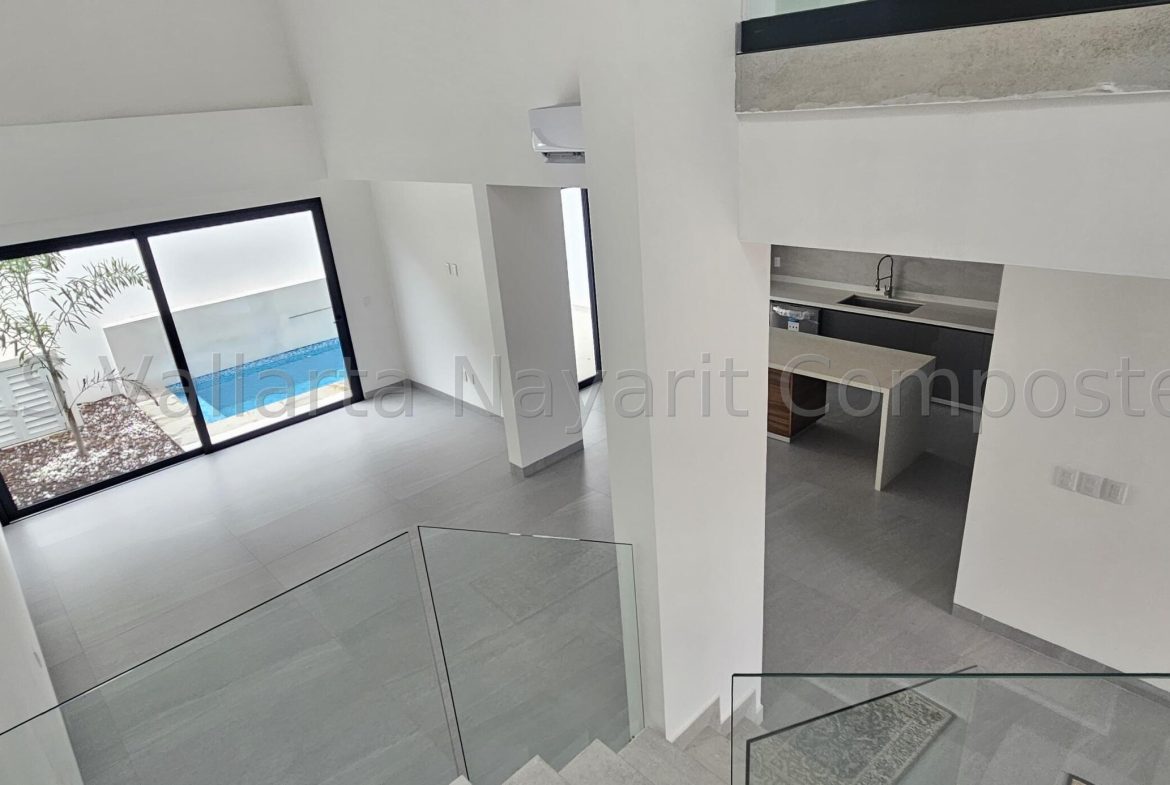 Estrena esta recien construida casa lista para habitarse en el fraccionamiento mas solicitado en Puerto Vallarta Fluvial Vallarta, muy cerca de costco y parques. casa de dos niveles con recamara y bano completo en planta baja, cocina integral con cubierta de Cuarzo blanco, sala comedor con techo doble altura y una alberca en patio trasero, en segunda planta cuenta con dos amplias recamaras con su bano completo cada una. El mejor precio de casa nueva en el vecindario. $9,950,000 MXN