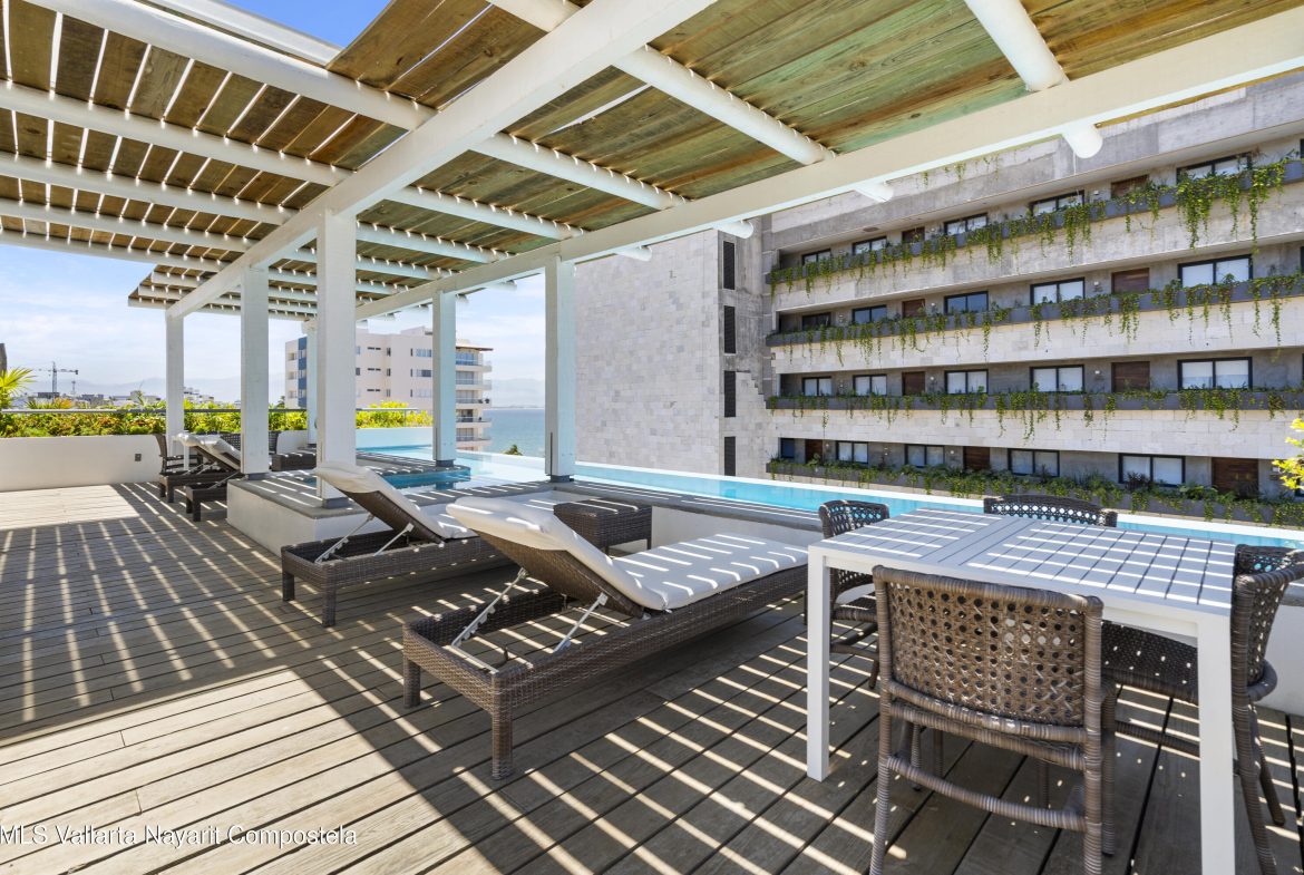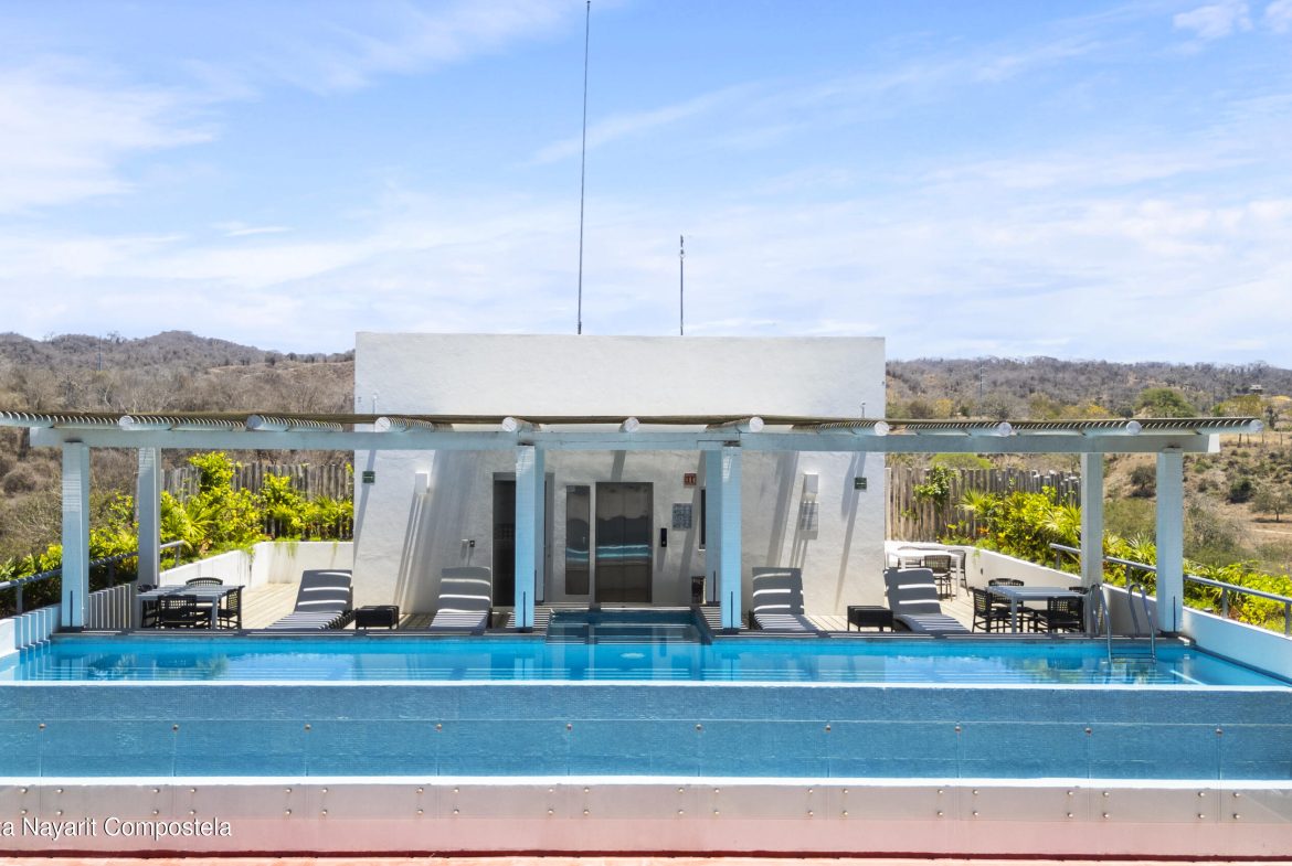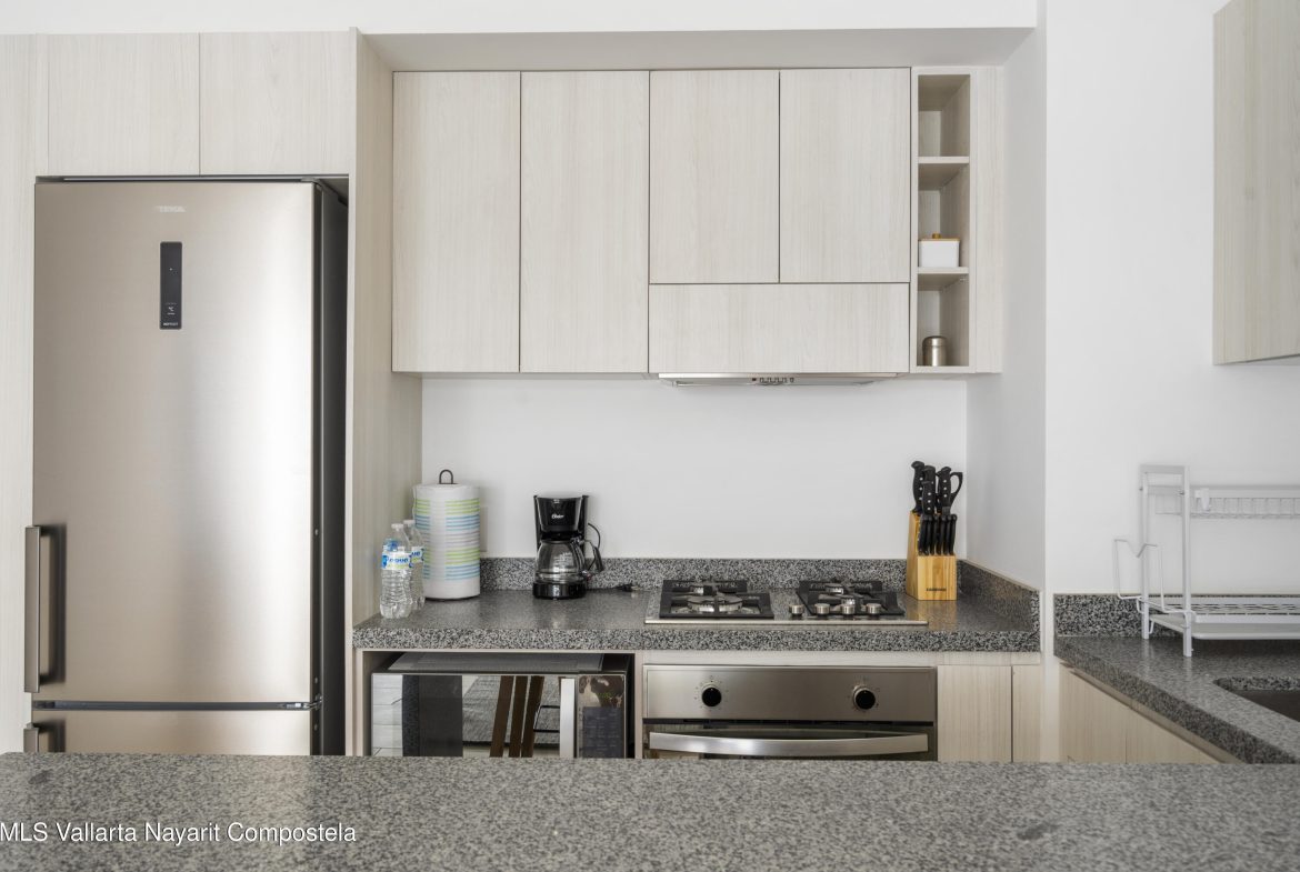 ENGLISH BELOWAtencion!! Increible rebaja en este lindo condo a pasos de la playa!! Casa Las Palmas es un refugio de relajacion y serenidad.Ubicada a solo unos pasos de la hermosa playa de Bucerias, este rincon de paraiso te espera. Enamorate de sus espacios abiertos y llenos de luz natural, disfruta del aire libre en su amplia terraza, refrescate en la alberca o relajate en el roof. La cocina, equipada con cubiertas de granito y electrodomesticos de acero inoxidable, ofrece un espacio practico y funcional para cocinar. La recamara tiene vista a la terraza y conecta con un bano elegante y espacioso. Esta unidad se vende completamente amueblada y lista para generar excelentes ingresos por rentas. Ven a conocerla y descubre por que Casa Las Palmas es tu mejor inversion.