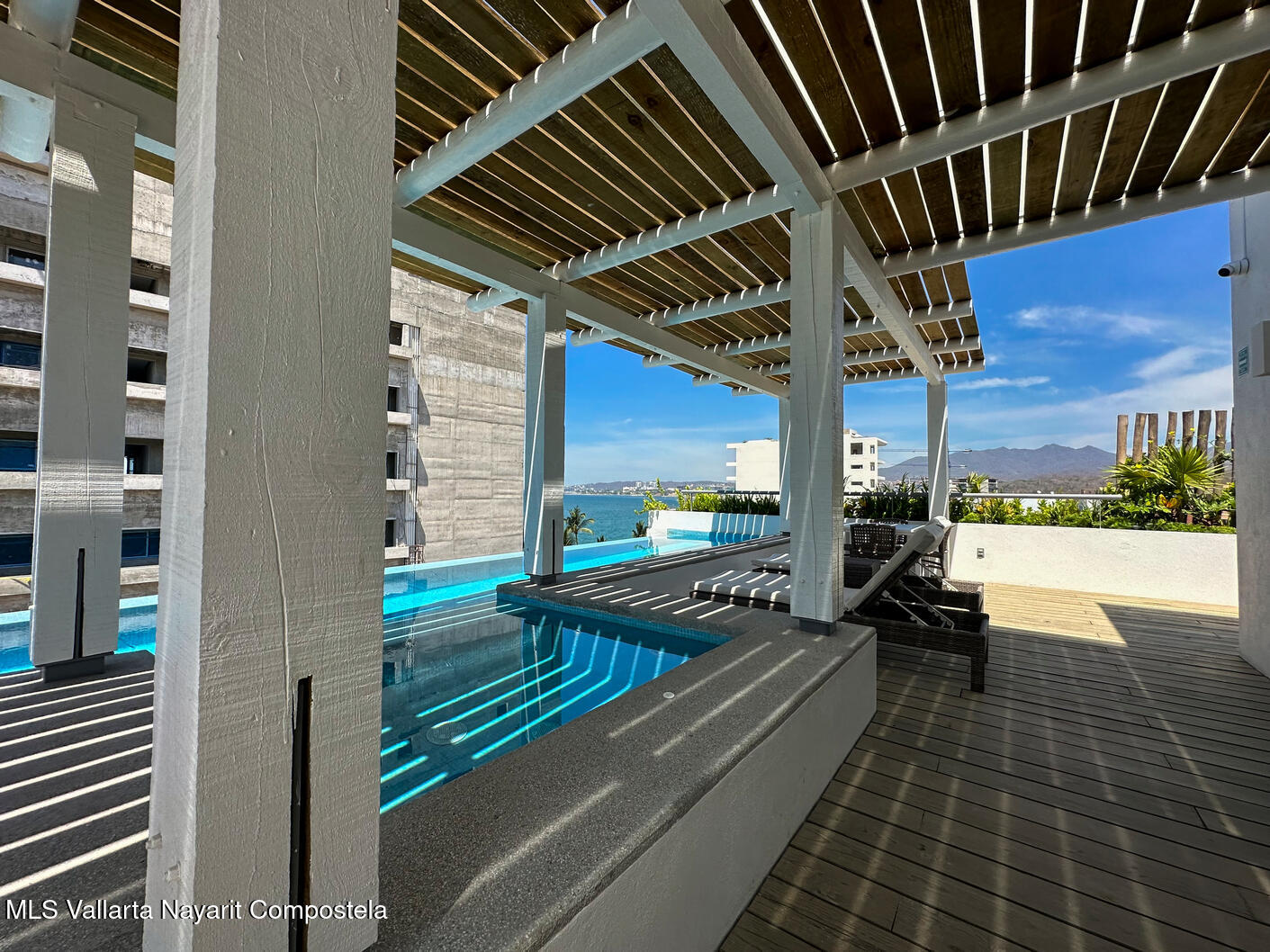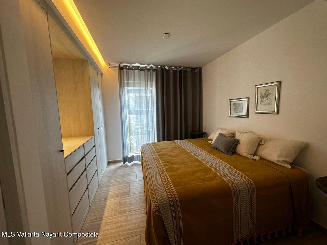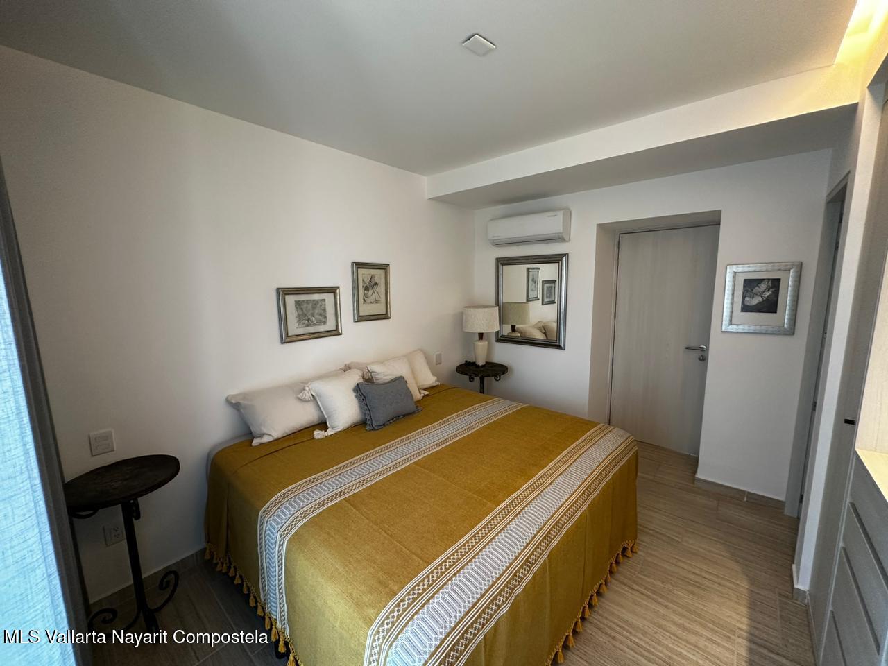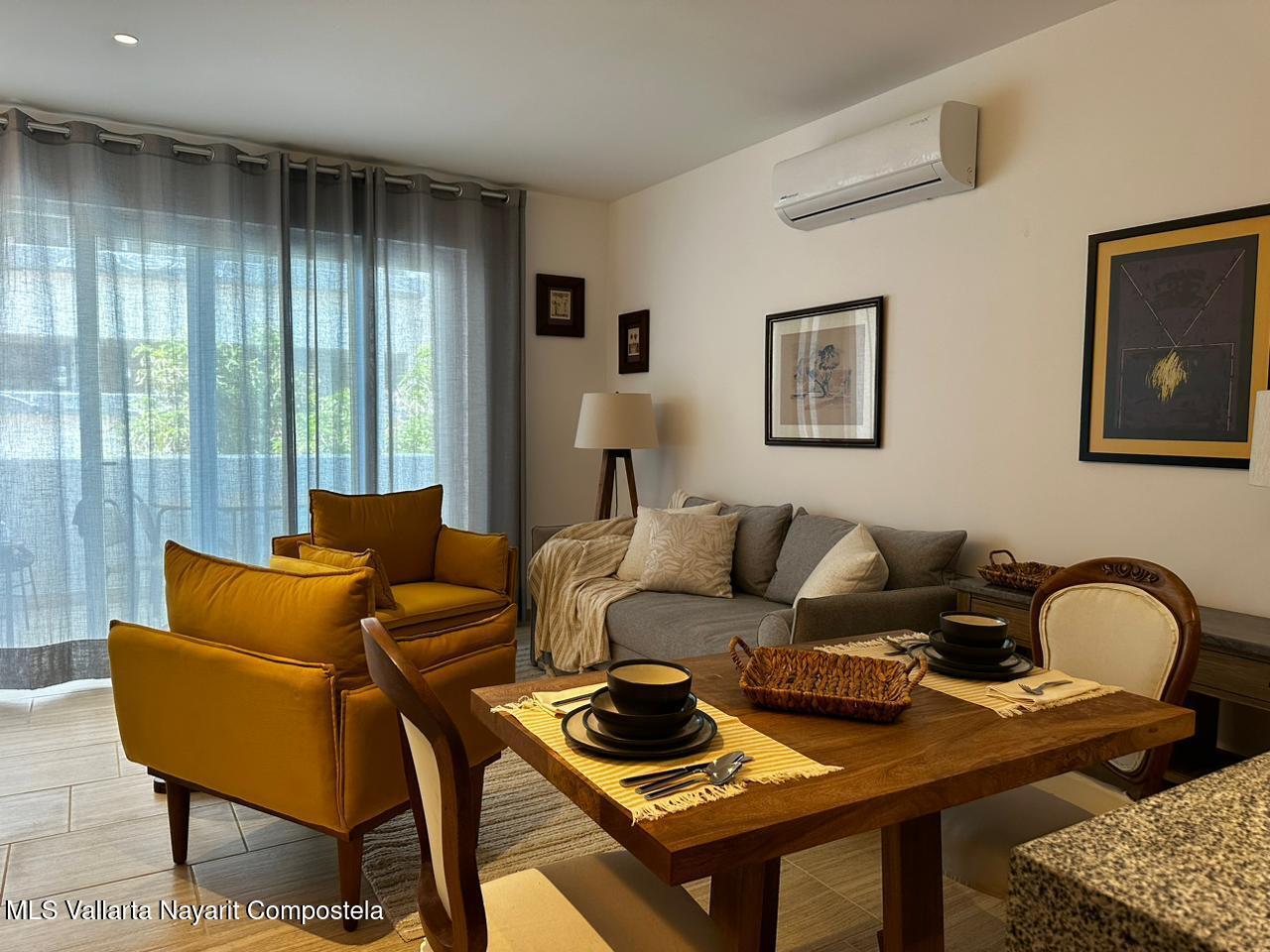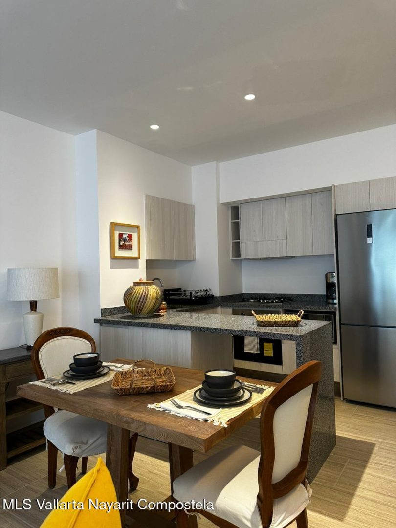 Modern apartment in Casa Las Palmas 203, gated community in Bucerias. 65.52 m featuring 1 bedroom, 1 full bath, fully-equipped kitchen with appliances, private balcony and AC. Amenities include rooftop garden, swimming pool, jacuzzi and 24/7 security. Prime location just steps from the beach, restaurants and local shops.