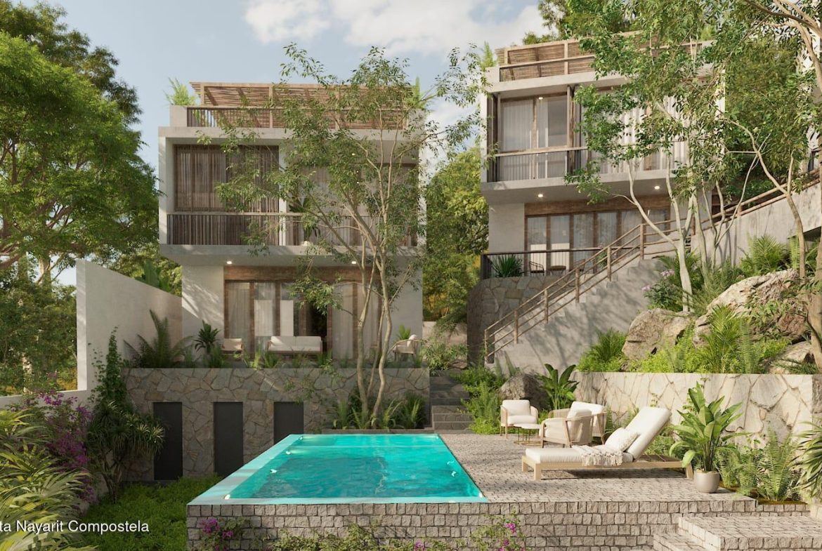Casa Loma is an exclusive boutique development nestled on a peaceful jungle hillside in Sayulita. This elegant 3-bedroom + flex room, 3.5-bath villa combines contemporary design with natural materials, lush landscaping, and a warm, modern aesthetic.The home features bright interiors with floor-to-ceiling windows, private outdoor living spaces, and seamless indoor/outdoor flow. Residents enjoy access to a serene central pool with sun loungers, stone terraces, and beautifully landscaped tropical gardens.A rare low-density retreat offering privacy, comfort, and elevated coastal living–just minutes from the heart of town.