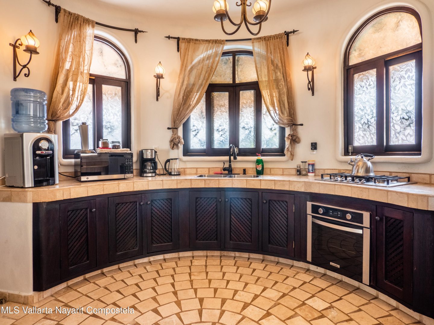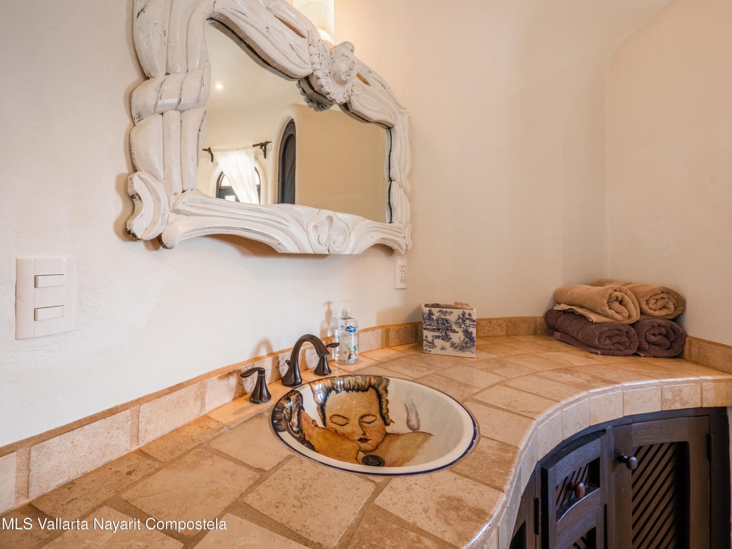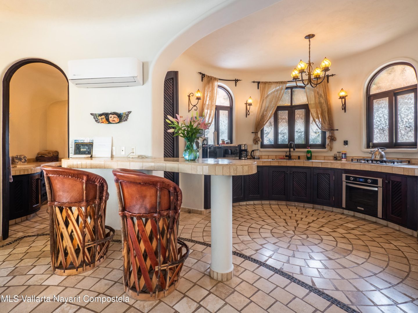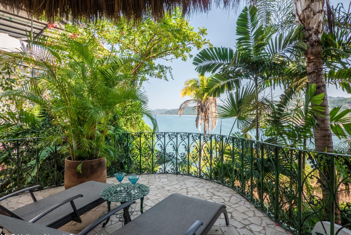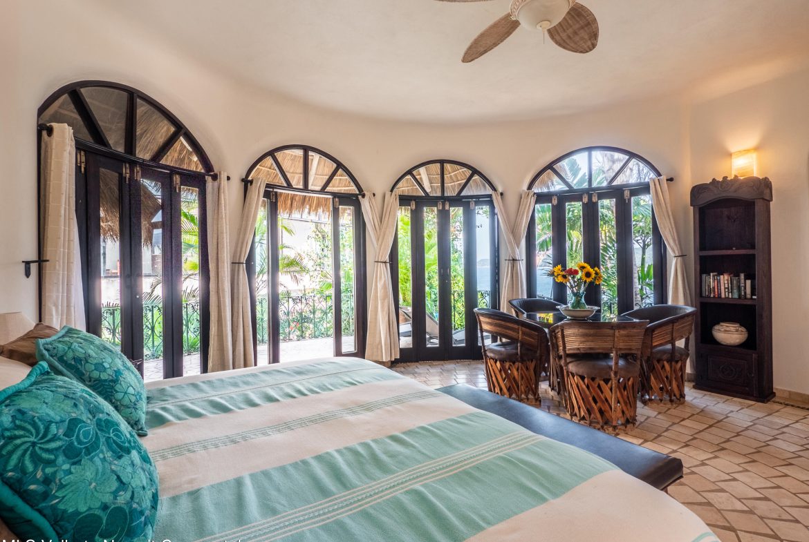 Casa Lorca/Hafiz is a spacious ground-floor unit with 2 bedrooms and 2 bathrooms, offering flexibility to be used as a single large residence or divided into two separate rentals. Each unit has a private entrance, one with a full kitchen and the other with a kitchenette. The property features a large private terrace and was designed by Mexican architect Miguel Valverde, with unique details such as arched windows, curved walls, and handcrafted furniture. Residents enjoy access to a saltwater infinity pool, lush gardens, and exclusive golf cart parking. Located at the southern tip of Sayulita Bay, it’s close to the beach, local shops, and vibrant restaurants.
