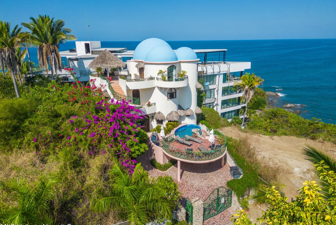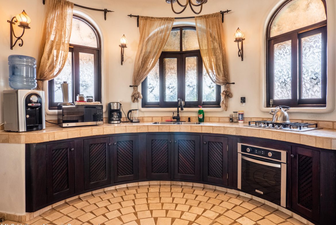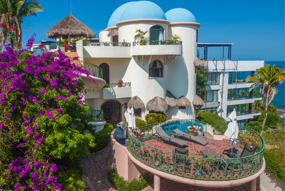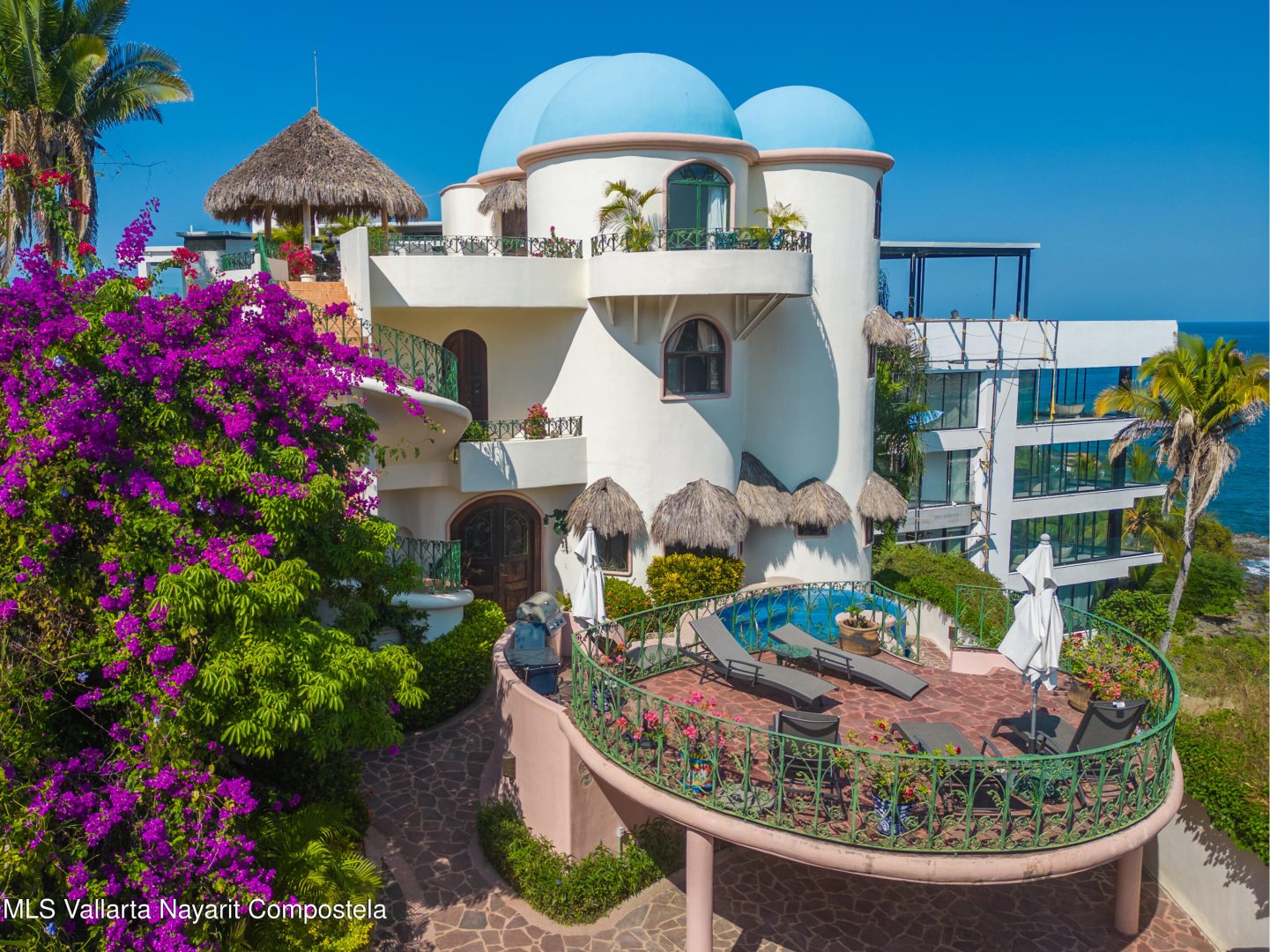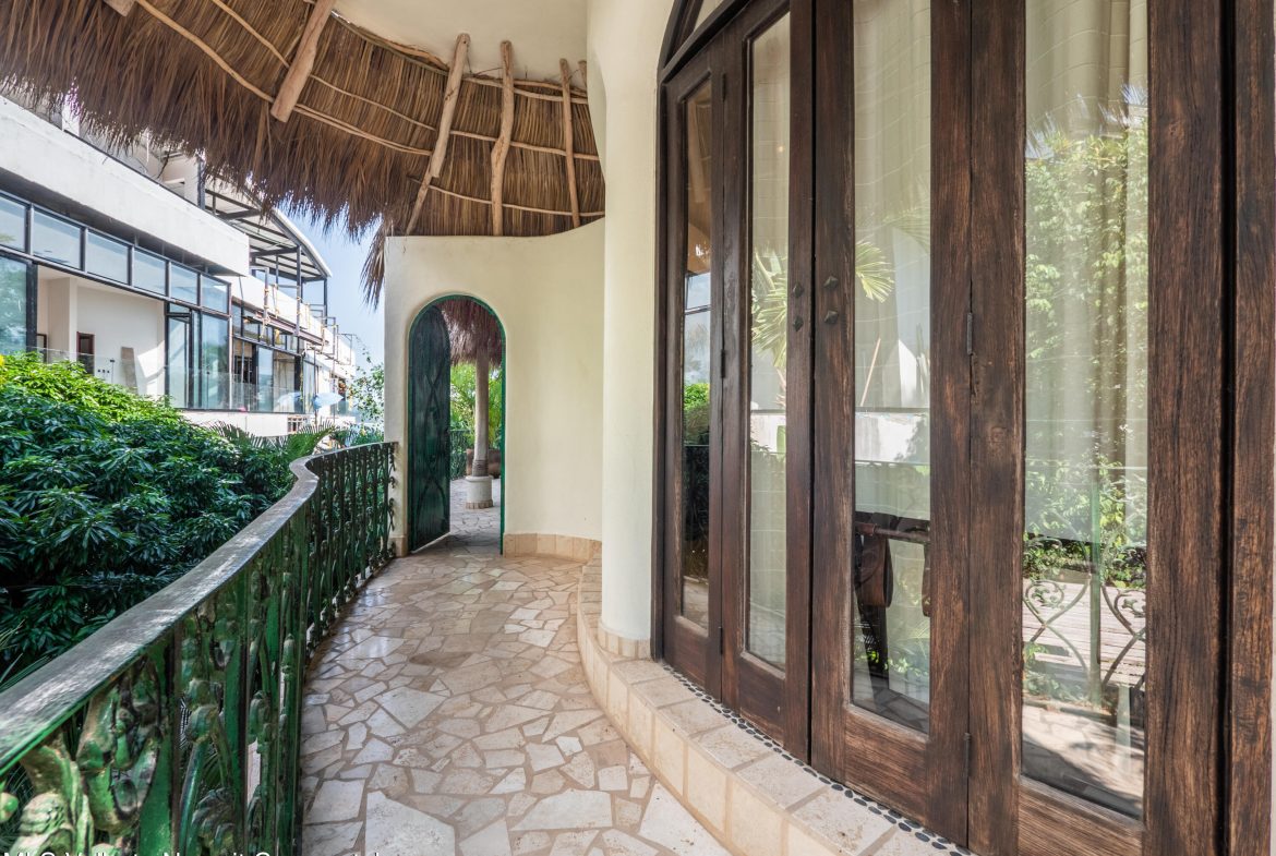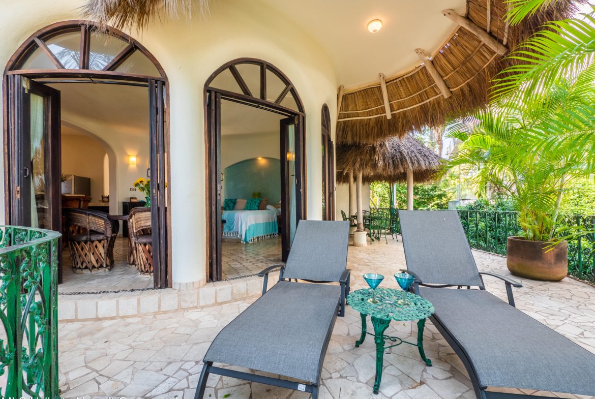 Casa Lorca/Hafiz is a spacious ground-floor unit with 2 bedrooms and 2 bathrooms, offering flexibility to be used as a single large residence or divided into two separate rentals. Each unit has a private entrance, one with a full kitchen and the other with a kitchenette. The property features a large private terrace and was designed by Mexican architect Miguel Valverde, with unique details such as arched windows, curved walls, and handcrafted furniture. Residents enjoy access to a saltwater infinity pool, lush gardens, and exclusive golf cart parking. Located at the southern tip of Sayulita Bay, it’s close to the beach, local shops, and vibrant restaurants.
