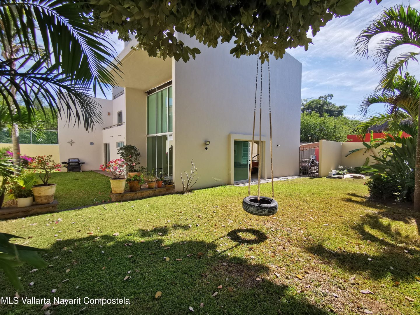 Stunning property in Bucerias with expansive rooftop and gardenThis exceptional property located in the interior of Los Arboles, a quiet gated community, offers a contemporary 3 bedroom, 2 full bath and 2 half bathroom layout, complemented by high ceilings that enhance its elegance and openness.A standout feature is the spacious rooftop offering breathtaking views and beautifully landscaped garden-a unique result of combining 2 plots which offers ample space and presenting the perfect opportunity to build a large pool.Residents enjoy a 24/7 security, access to the common pool/green areas, also offering 2 dedicated parking spaces in front.Located just moments from the beach and supermarkets, this home perfectly balances luxury, comfort and convenience.