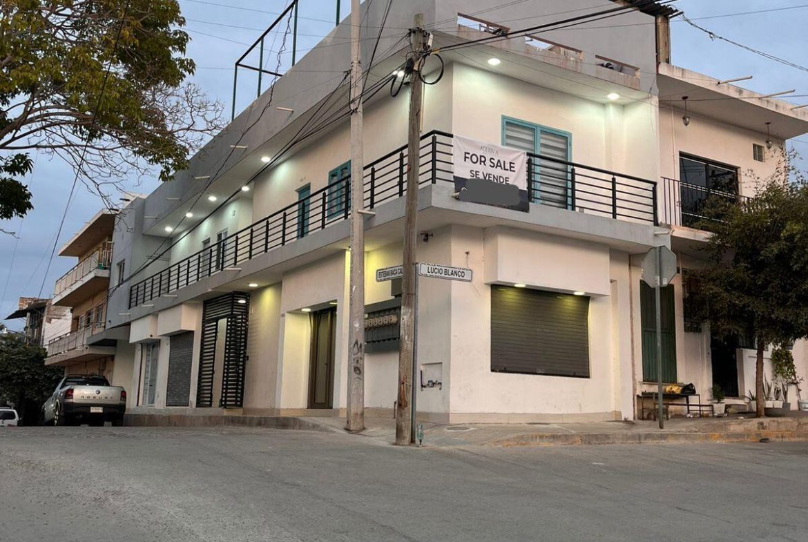 Two-Story House with Residential and Commercial PotentialDiscover a property with exceptional strategic value and unmatched versatility!Located on a prime corner lot right in the heart of Bucerias, Nayarit, an area of increasing value and high demand for both tourism and commercial activity.This two-level property stands out for its multi-functional design and strong income-generating potential:Second floor:*3 independent apartments, each featuring: Equipped kitchen, living area, 1 bedroom, 1 full bathroom, private entrance (ideal for short or long-term rentals).Ground Floor:4 spacious rooms, each with a private bathroom, perfectly suited to be converted into commercial spaces, studios, or offices, a solid investment opportunity with flexible usage options.