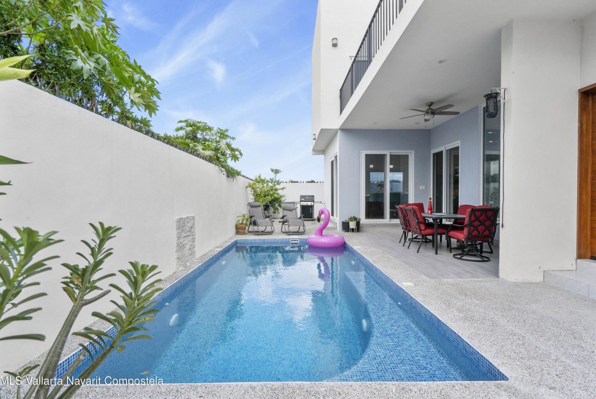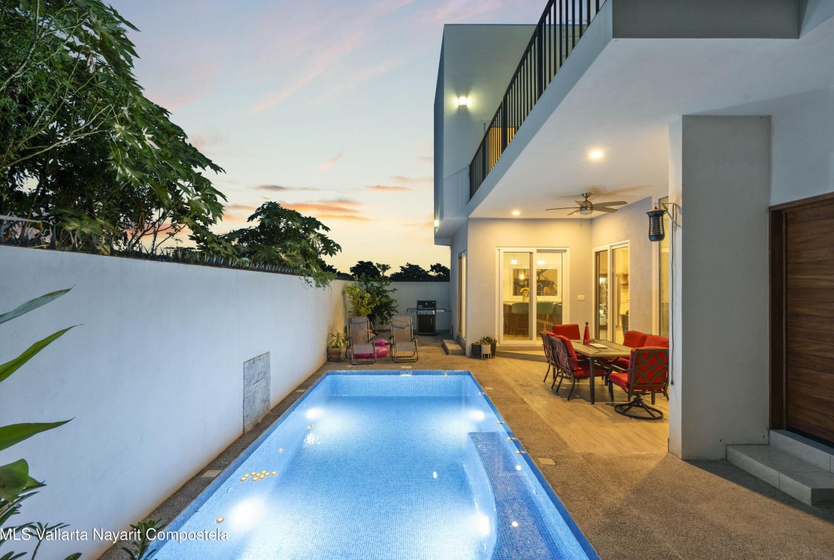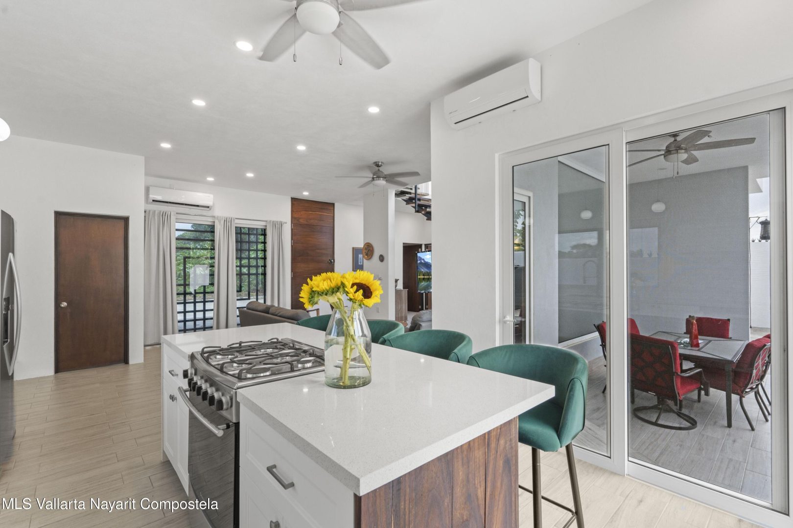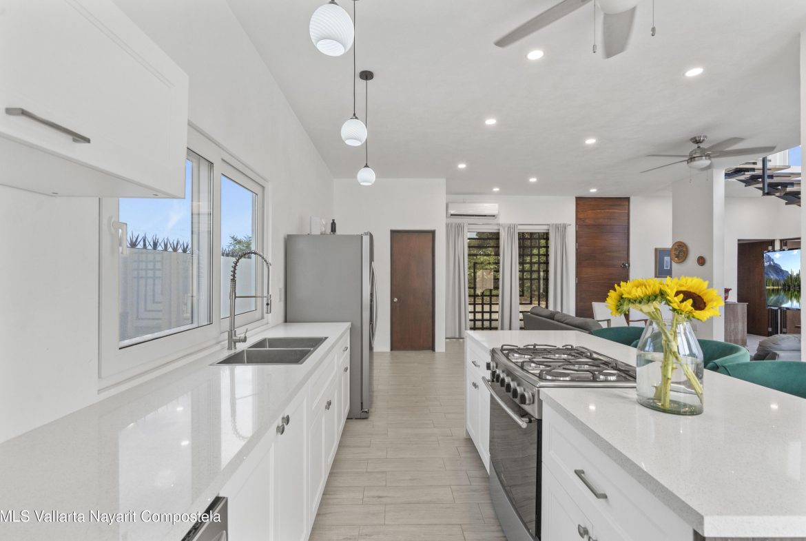Now offered at $10,900,000 pesos (aprrox.$$598,000 USD), this elegant Bucerias home delivers luxury, space, and lifestyle in one irresistible package. Featuring five bedrooms plus a dedicated office, including two main-floor suites for easy, everyday living, the thoughtful layout flows seamlessly into an entertainer’s kitchen with a built-in coffee and cocktail station. Outdoors, your private saltwater pool is paired with shaded dining and a grill station, while the upper terrace serves up mountain views made for sunset dinners and memorable evenings. Offered furnished, this turnkey home is set within an exclusive community just minutes from Bucerias’ beaches, shops, and restaurants. Peaceful, polished, and perfectly positioned–this is coastal living. Full home water filtration.