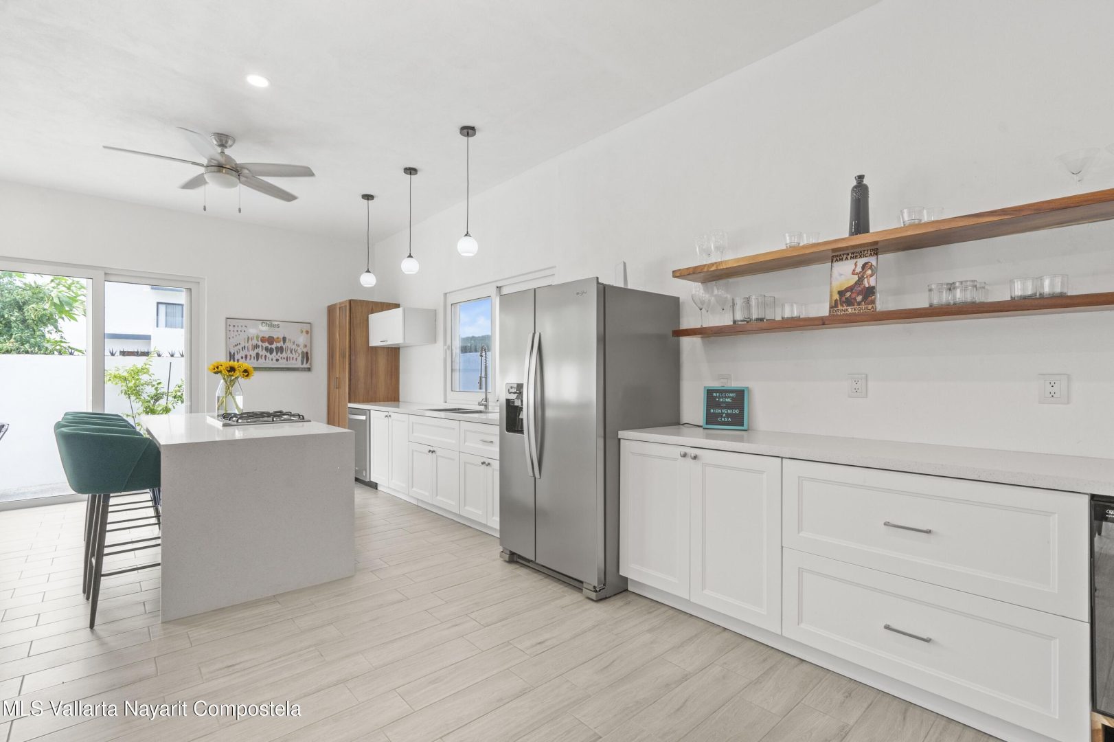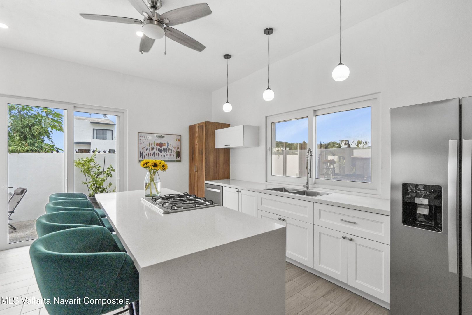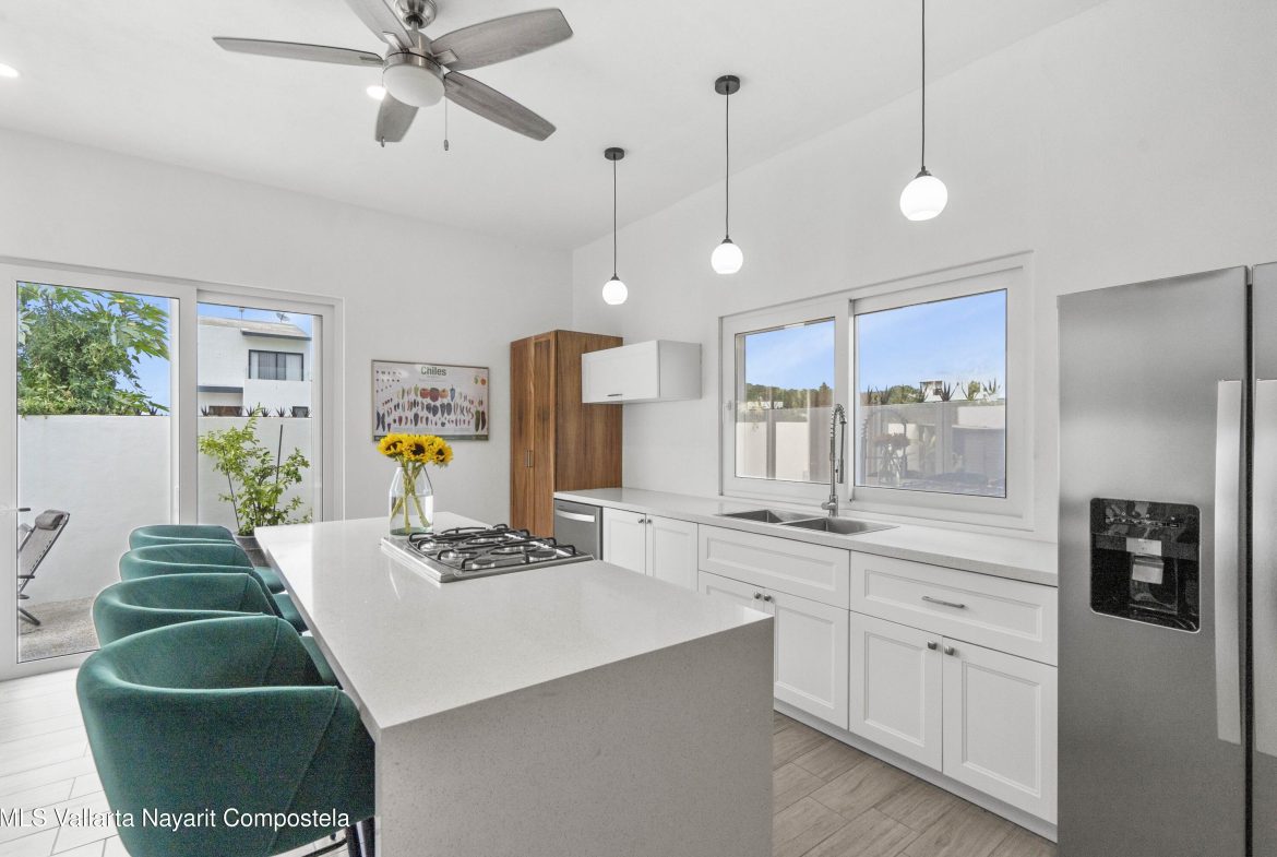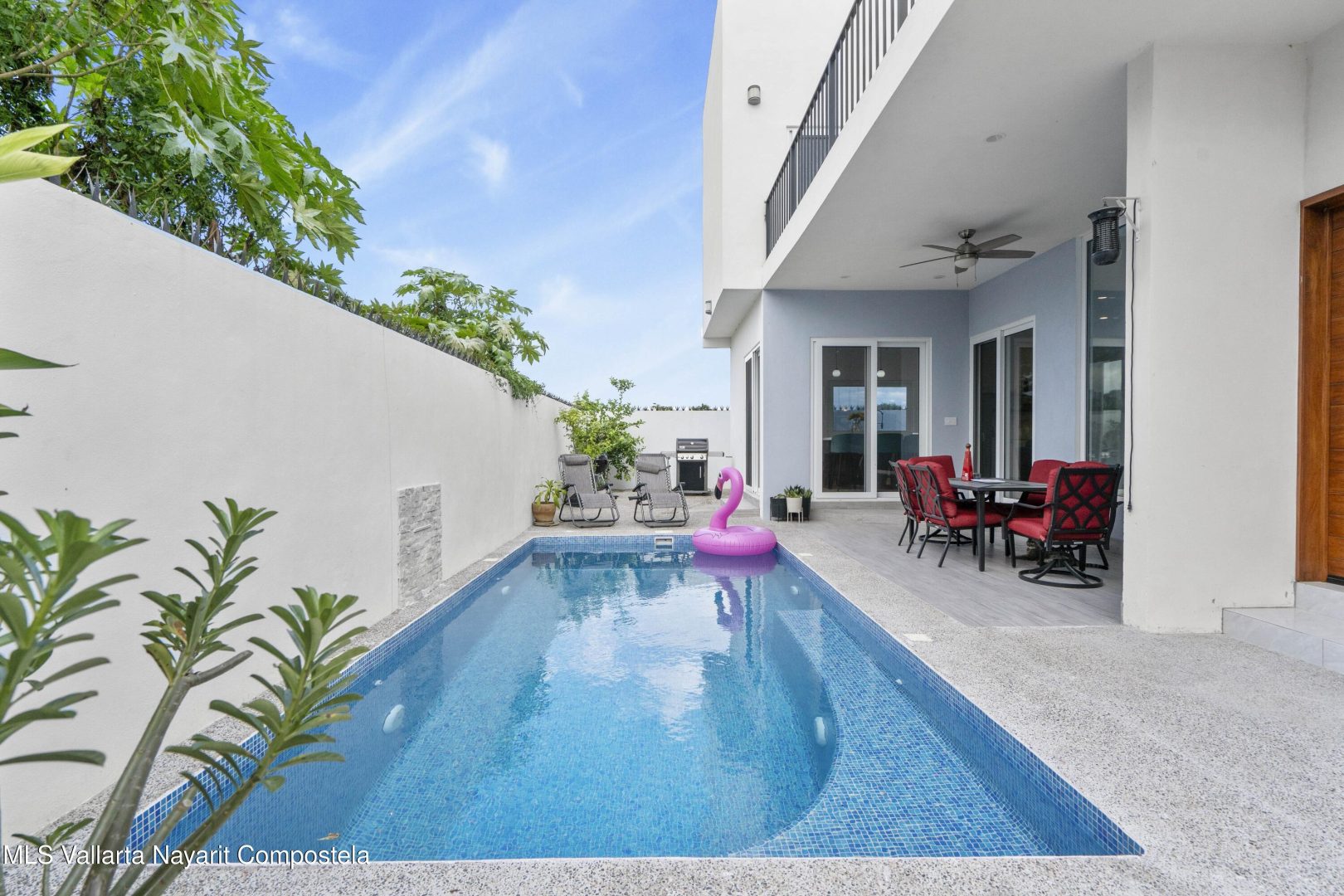Now offered at $10,900,000 pesos (aprrox.$$598,000 USD), this elegant Bucerias home delivers luxury, space, and lifestyle in one irresistible package. Featuring five bedrooms plus a dedicated office, including two main-floor suites for easy, everyday living, the thoughtful layout flows seamlessly into an entertainer’s kitchen with a built-in coffee and cocktail station. Outdoors, your private saltwater pool is paired with shaded dining and a grill station, while the upper terrace serves up mountain views made for sunset dinners and memorable evenings. Offered furnished, this turnkey home is set within an exclusive community just minutes from Bucerias’ beaches, shops, and restaurants. Peaceful, polished, and perfectly positioned–this is coastal living. Full home water filtration.