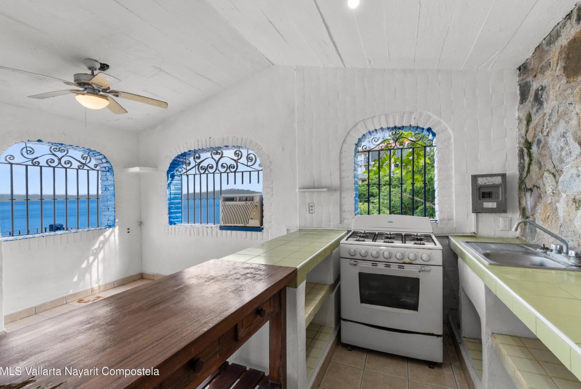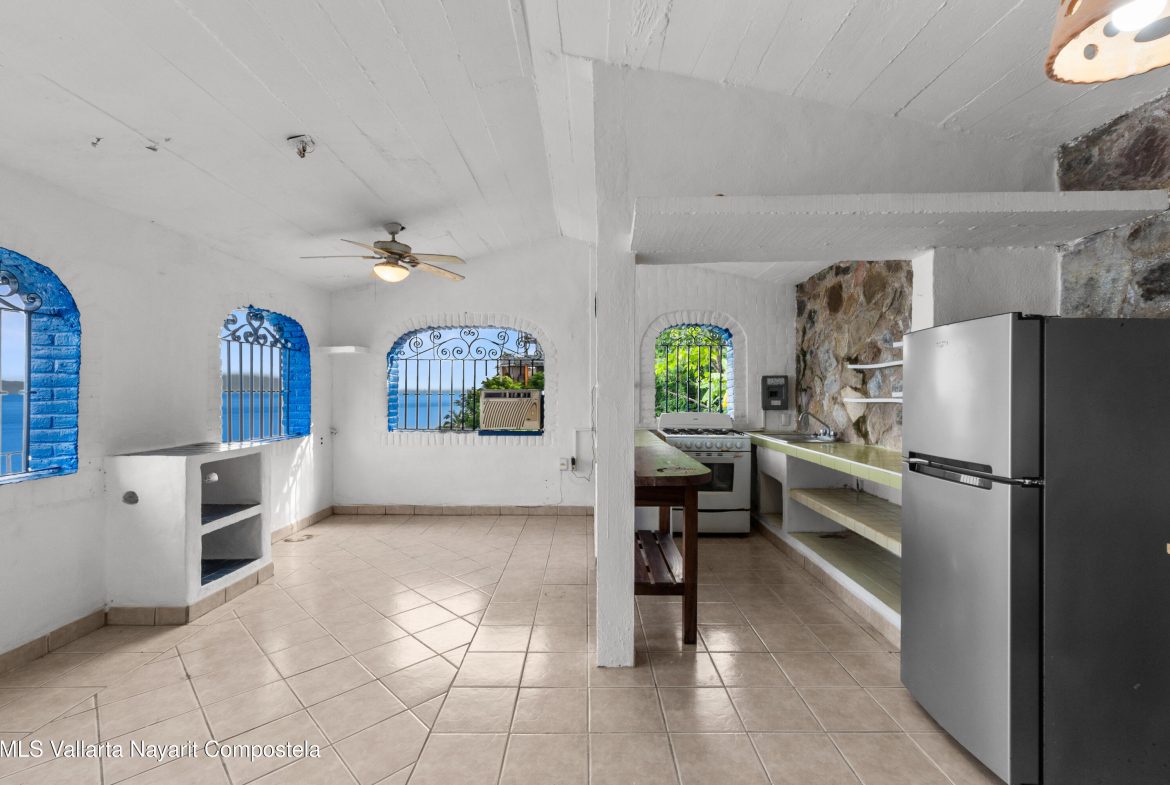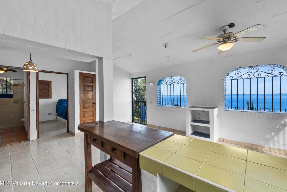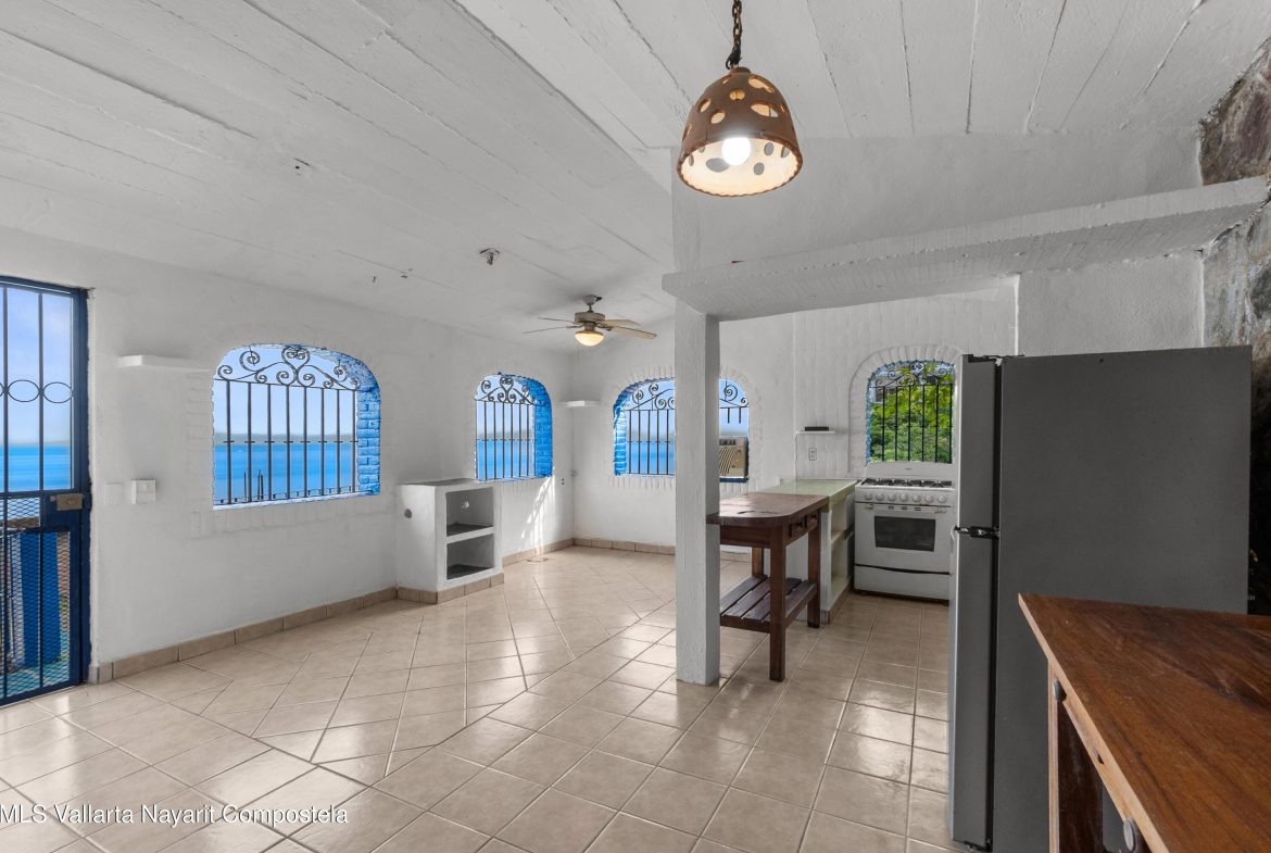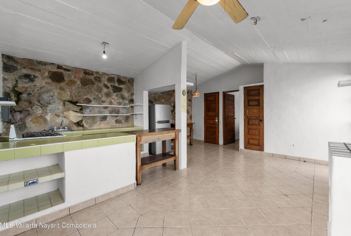 Straight out of ”Mama Mia” this cliff side , whitewashed charming home is nestled in nature and open wide to spectacular views of the ocean . Hear the waves and watch the sunsets from the large terrace .This one bedroom and bath home has ample room for expansion .This truly special property requires a walk down a mountain stairway contributing to its uniqueness …The Seller is open to receive pesos as payment for the property . Closing to be through Attorney Reidesser coordinating through Notary 2 or 29 in Nayarit Directamente desde ”Mama Mia”, esta encantadora casa encalada junto al acantilado se encuentra enclavada en la naturaleza y ofrece espectaculares vistas al oc�ano. Escuche las olas y contemple los atardeceres desde