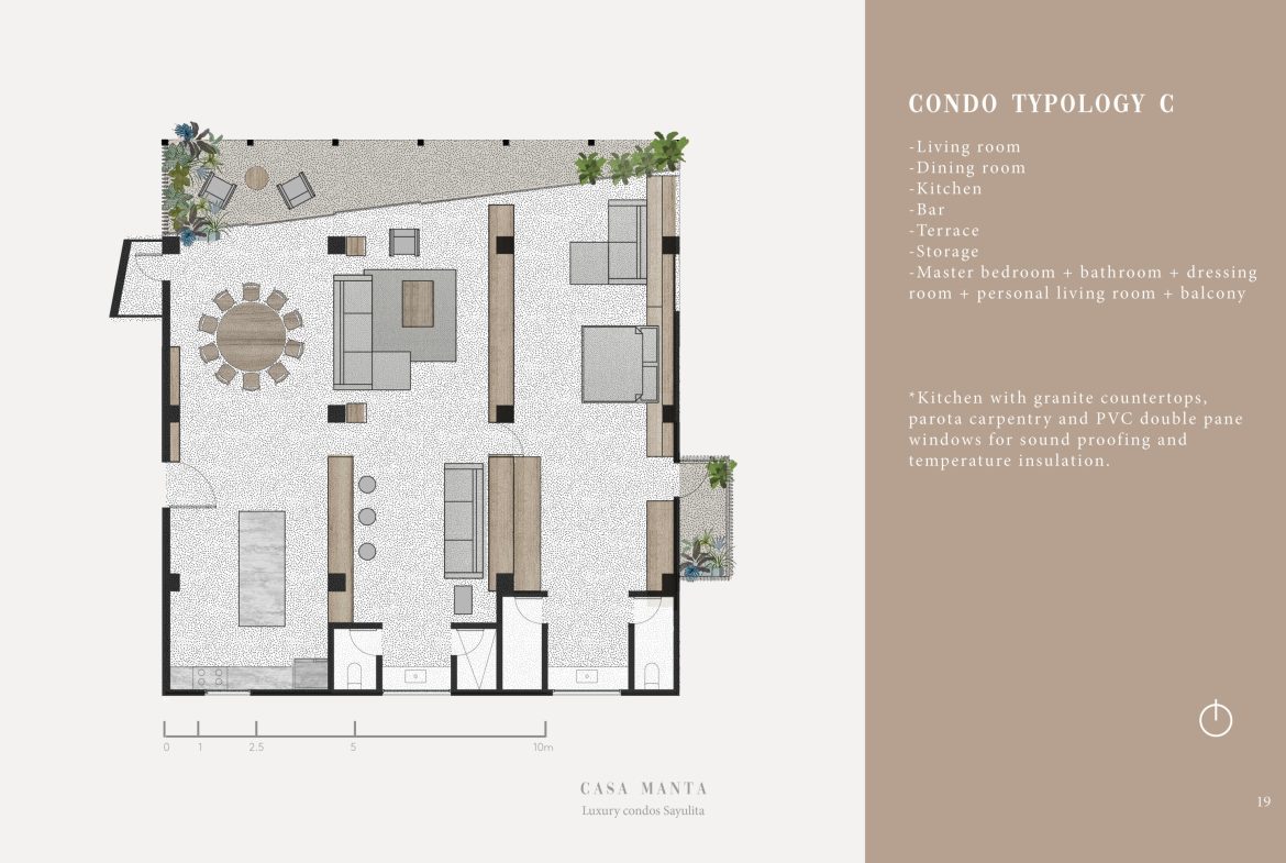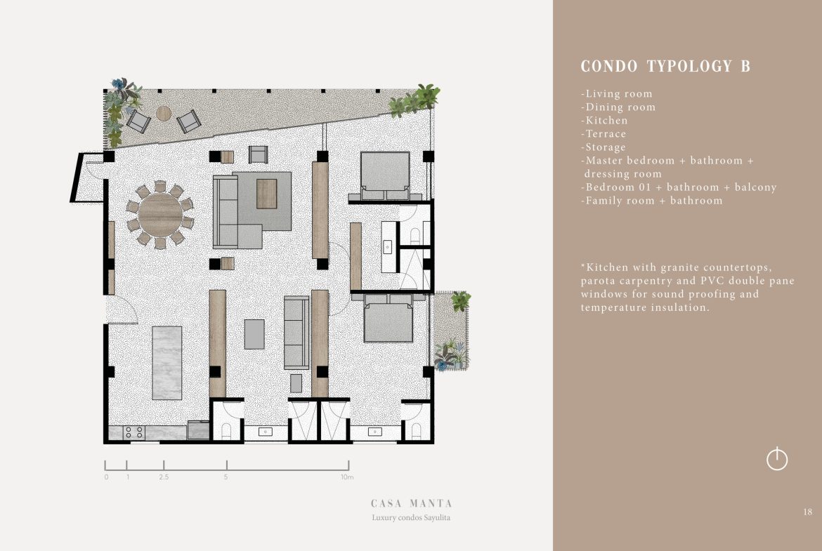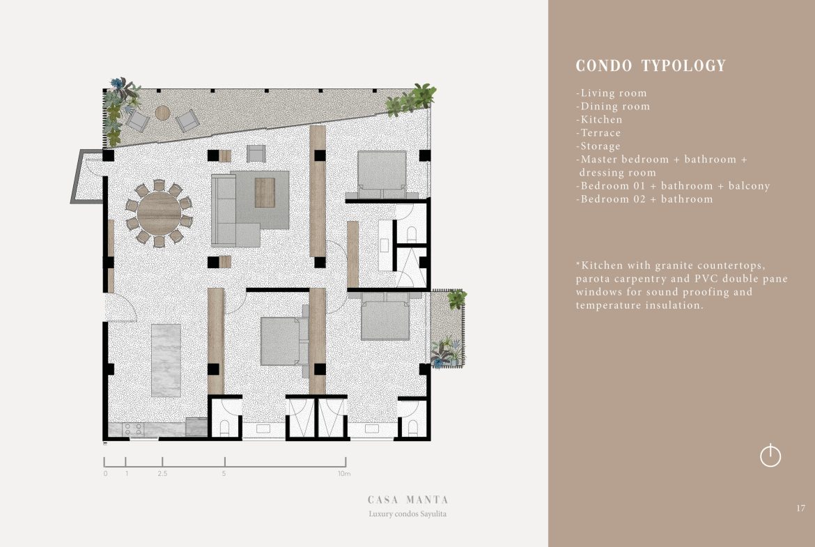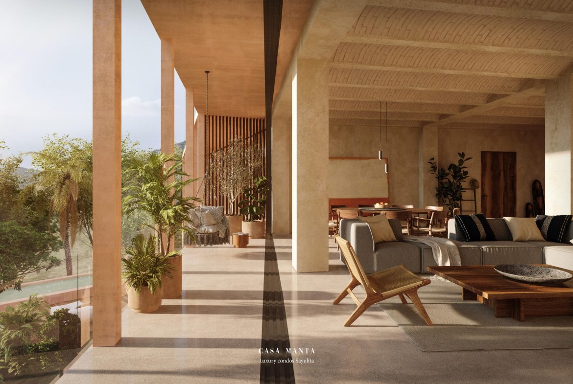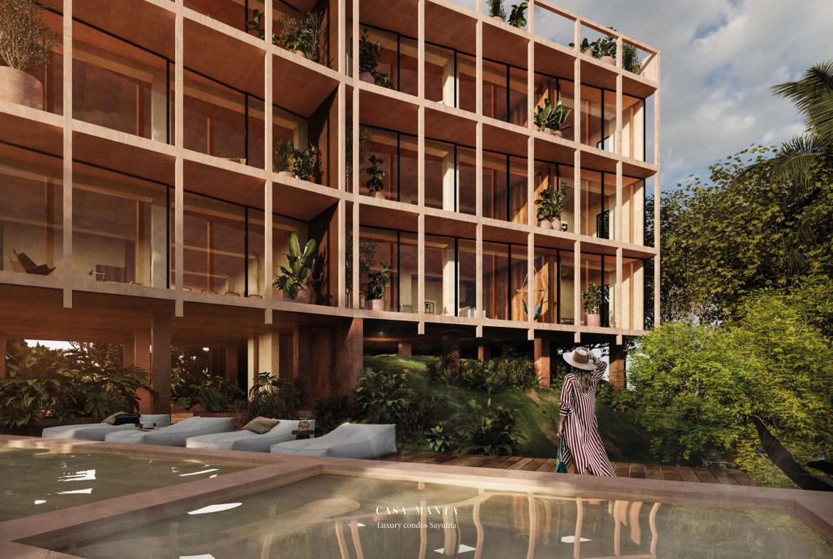 The Luxury Casa Manta development is an architectural gem born from nature. It is located on an oceanview parcel in the heart of the exciting beach town of Sayulita – a quick 7-minute walk to the beach and a 5-minute walk to the town plaza of exciting restaurants, bars, and shopping. Each of the six luxury condominiums offer a pool, jacuzzi, sundeck, garden, lobby, lounge, oceanview fitness center, elevator, assigned parking, and storage. All residences feature soothing pink concrete construction, vaulted ceilings, double pane windows for soundproofing and temperature insulation. Each residence features the ecological use of eucalyptus wood surfaces, 3 bedrooms, 3 bathrooms (the Penthouses have 3.5 baths), kitchen with granite countertop, living room, dining room, laundry room and…