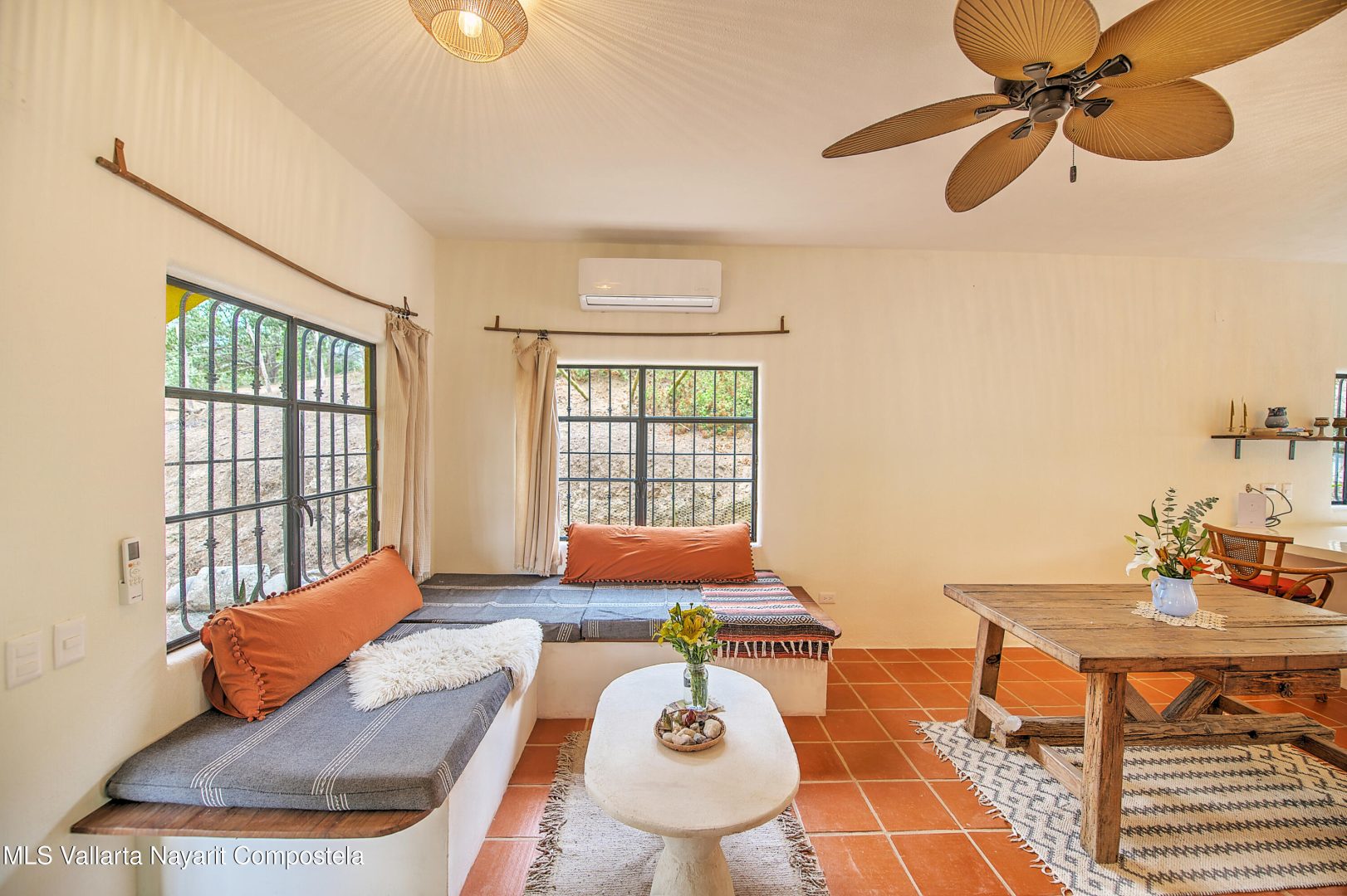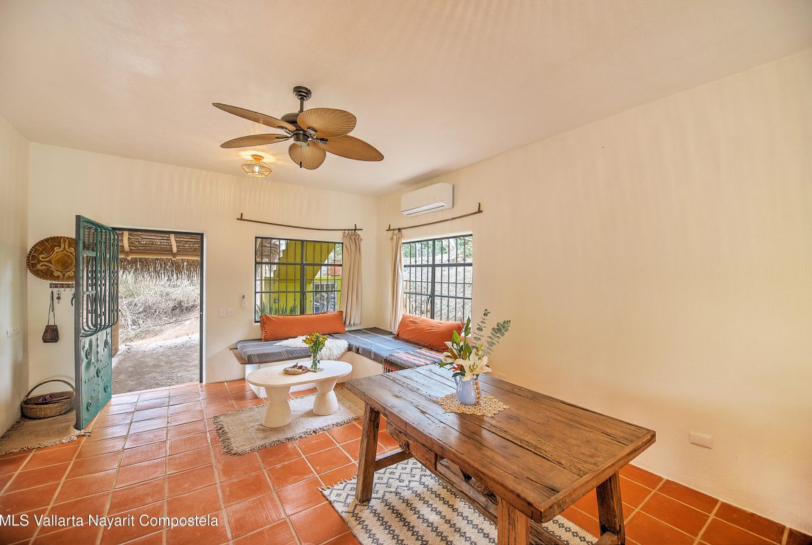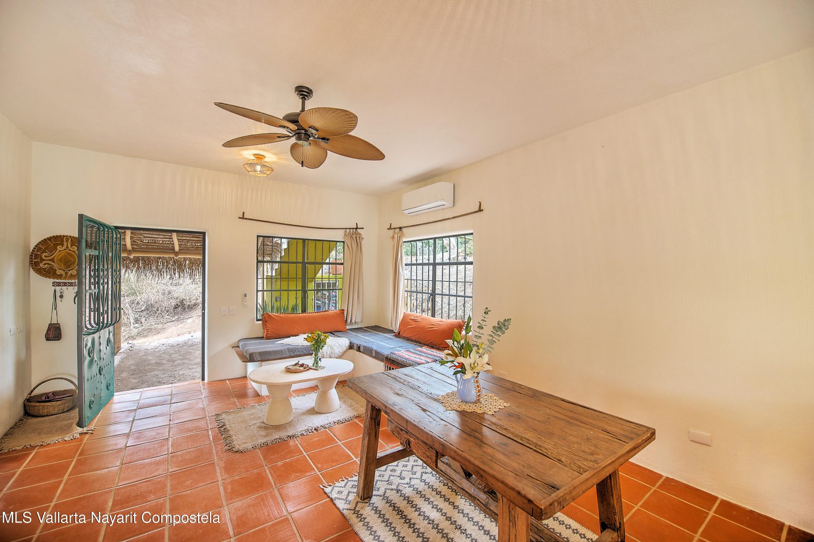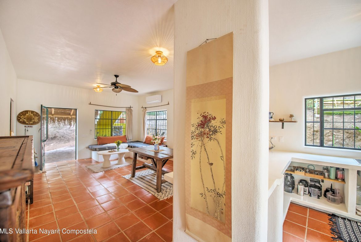 Casa Maracuya se ubica en el tranquilo pueblo de Las Lomas, a solo 30 minutos al norte de Bucerias y a 5.5 kilometros del vibrante pueblo de San Pancho. Esta encantadora propiedad ha sido remodelada con detalles acogedores. Cuenta con 2 recamaras, 1 bano completo y una distribucion abierta que integra sala, comedor y cocina, creando un espacio ideal tanto para relajarse como para convivir. Disfruta de la mayor comodidad de vivir en un solo piso, incluyendo el estacionamiento techado con palapa al frente y un amplio jardin tropical en la parte trasera, perfecto para los amantes de la naturaleza. Uno de los grandes atractivos de Casa Maracuya es que incluye el terreno adjunto, ideal para expandir el jardin, crear una zona exterior aun mas amplia o incluso construir unidades