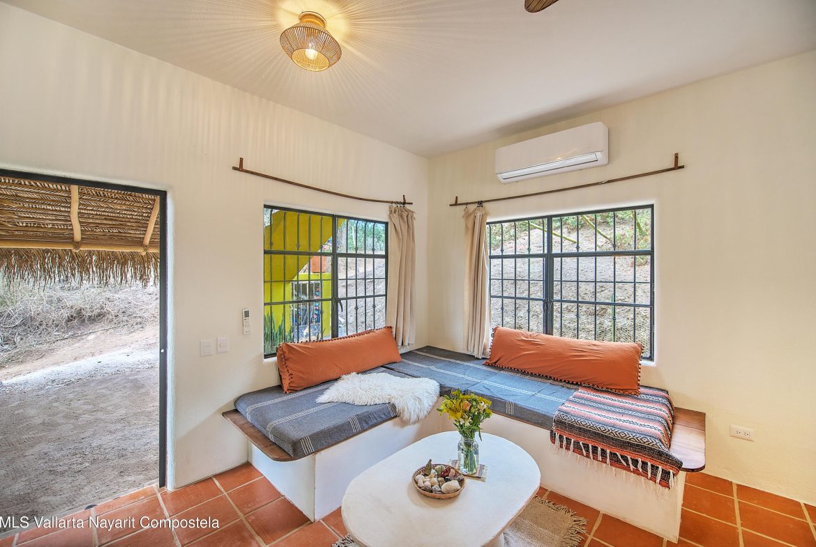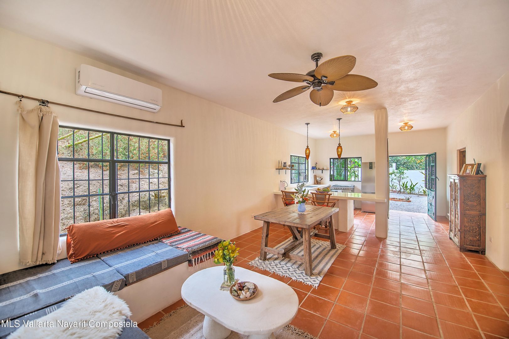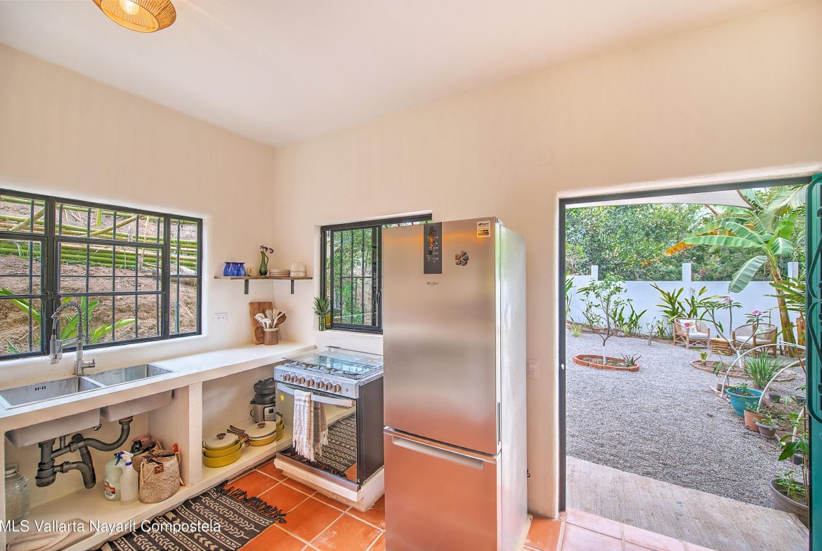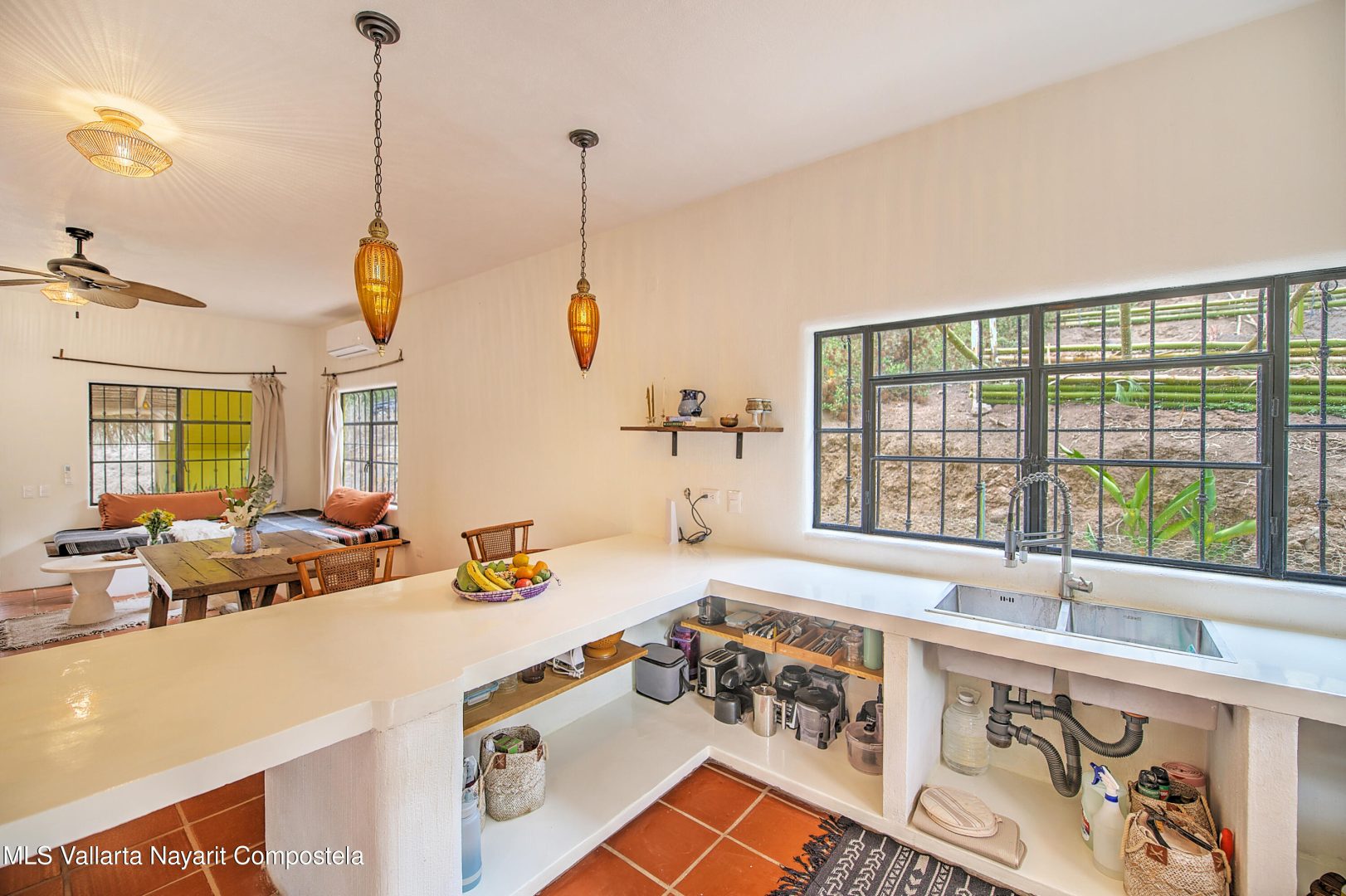 Casa Maracuya se ubica en el tranquilo pueblo de Las Lomas, a solo 30 minutos al norte de Bucerias y a 5.5 kilometros del vibrante pueblo de San Pancho. Esta encantadora propiedad ha sido remodelada con detalles acogedores. Cuenta con 2 recamaras, 1 bano completo y una distribucion abierta que integra sala, comedor y cocina, creando un espacio ideal tanto para relajarse como para convivir. Disfruta de la mayor comodidad de vivir en un solo piso, incluyendo el estacionamiento techado con palapa al frente y un amplio jardin tropical en la parte trasera, perfecto para los amantes de la naturaleza. Uno de los grandes atractivos de Casa Maracuya es que incluye el terreno adjunto, ideal para expandir el jardin, crear una zona exterior aun mas amplia o incluso construir unidades