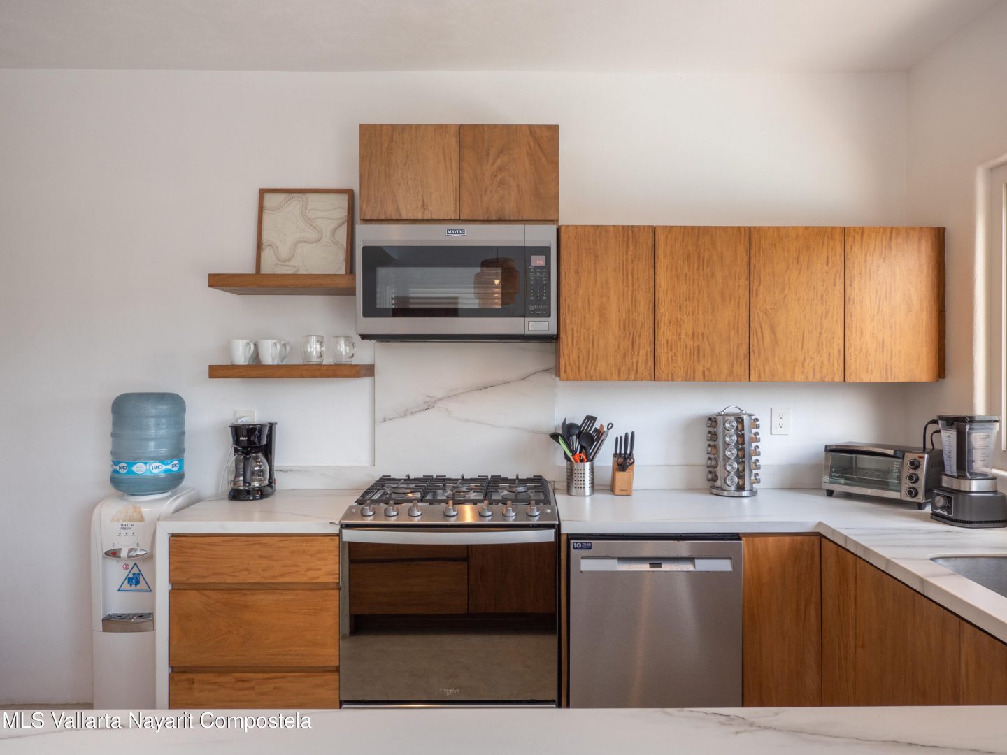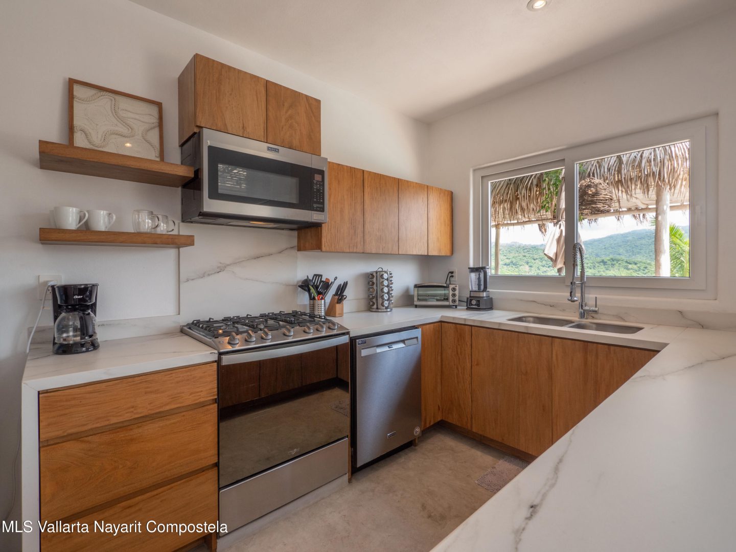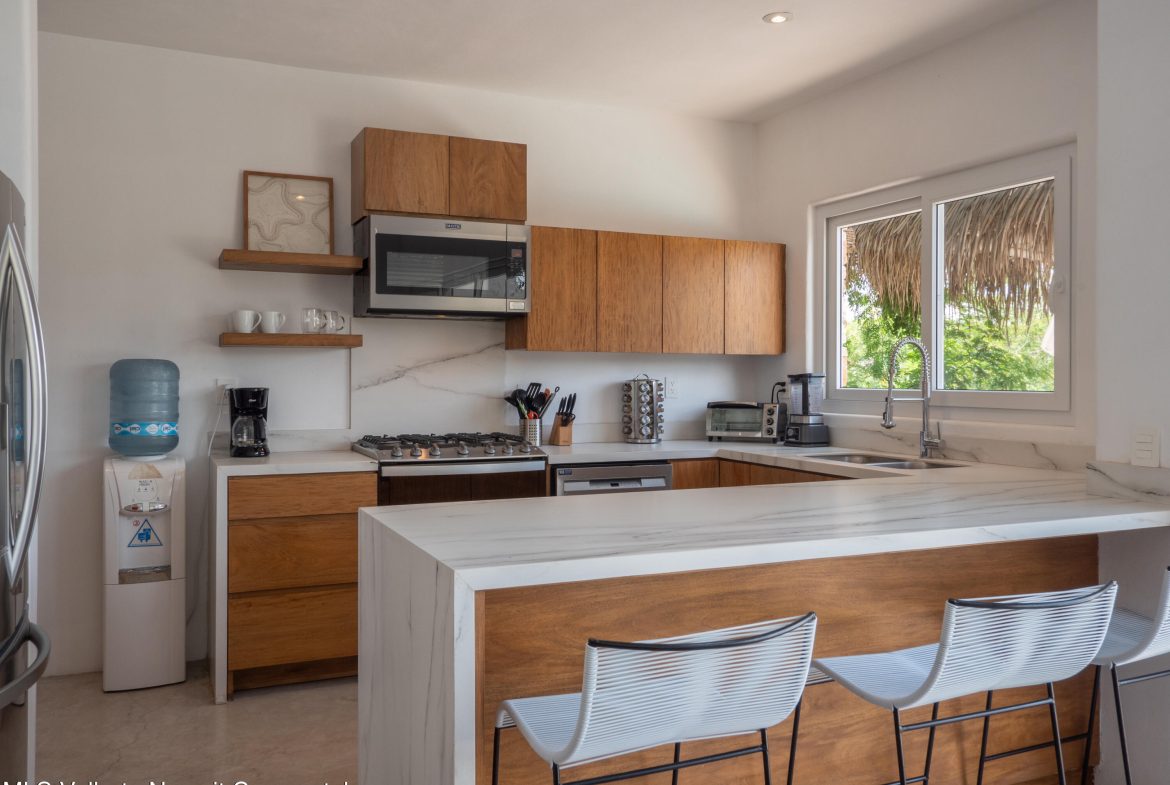 Welcome to Casa Marea, a modern and luxurious villa nestled in the peaceful neighborhood of Gringo Hill. The four-bedroom, four-and-a-half-bathroom villa features chic decor, a sparkling saltwater pool overlooking the lush jungle, and spacious outdoor living areas, including a rooftop lounge. Casa Marea also has a charming and efficient casita with a solid rental history and excellent reviews,making it perfect for hosting guests, generating income, or creating a private workspace. A secure garage provides additional space for vehicles, surfboards and extra gear. Inside, the open-concept design flows seamlessly from the fully equipped gourmet kitchen to the airy living spaces and well appointed bedrooms.