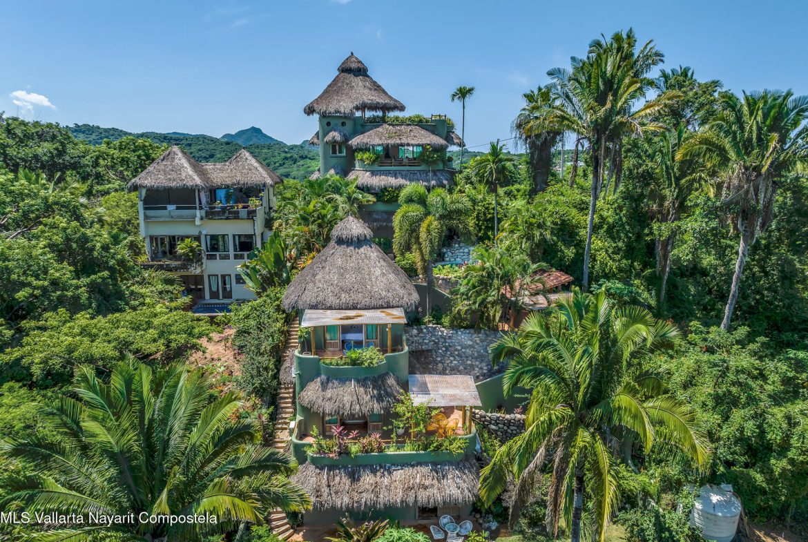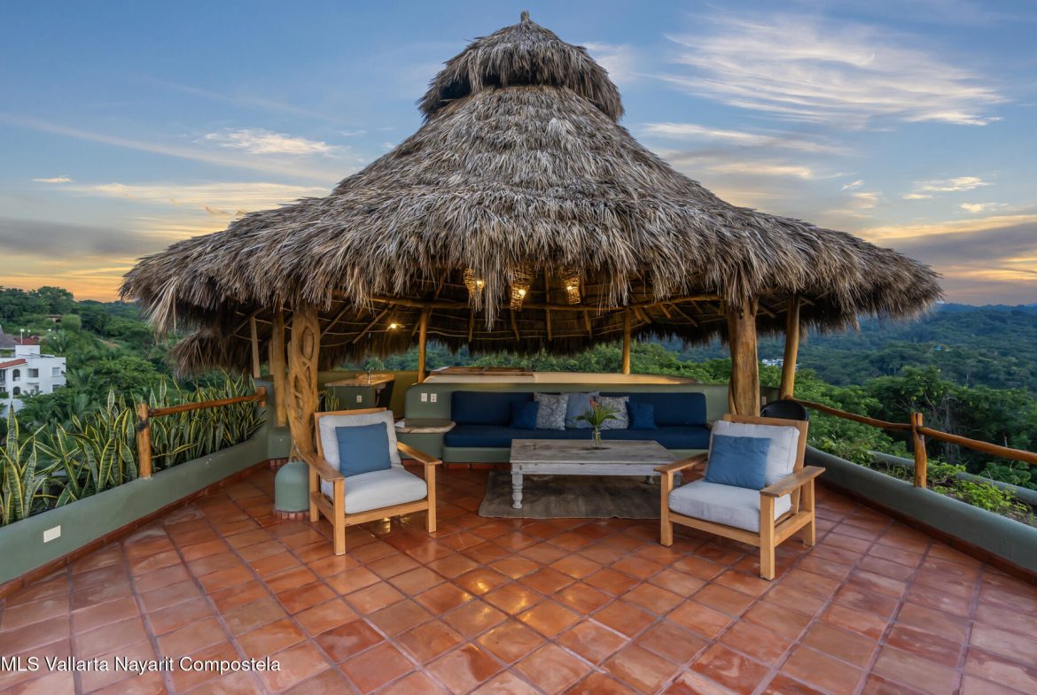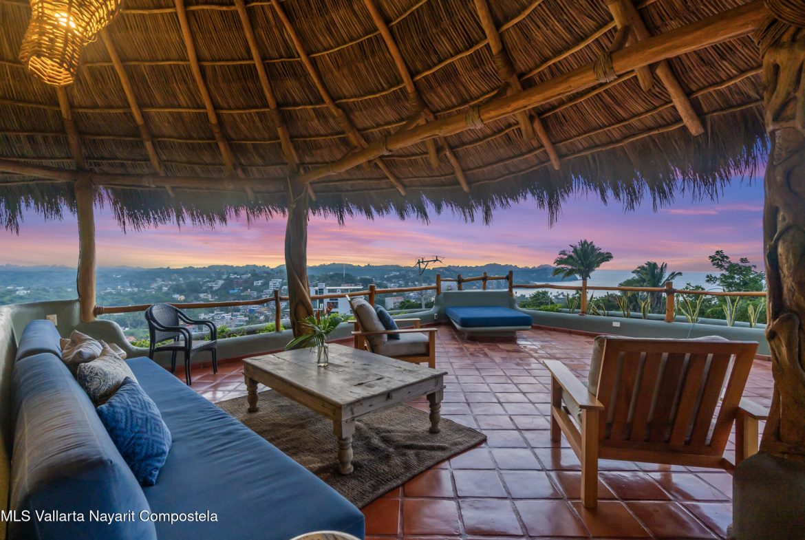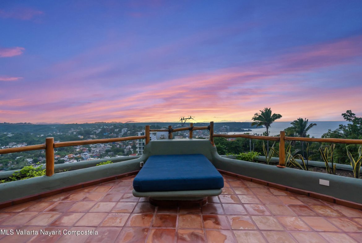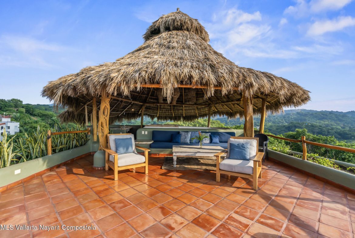 Unique opportunity to own a revenue generating property with 5 private suites. This residence is well suited for a large family who treasures privacy, or an investor looking to run a five-star rental business. This turnkey vacation rental investment is one of the few places to enjoy sunrise and sunset. Casa Margarita del Cielo is a meticulously maintained five bedroom custom built home, a true trophy property. Local talavera marble and parota hardwood can be seen throughout. Surrounded by lush landscaping that terraces down the land, it is a place to restore, relax and enjoy an exquisite living experience. Perched on the hill in the coveted North side community, you are minutes from all the charm of Sayulita.